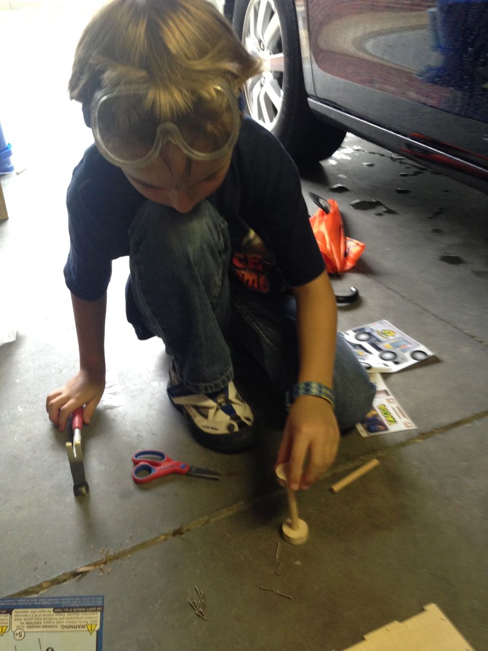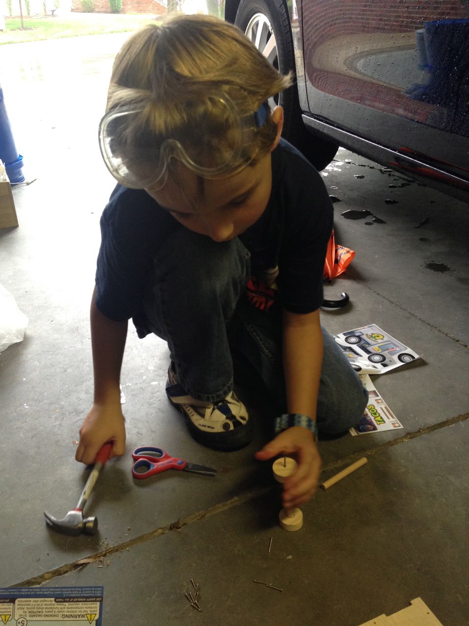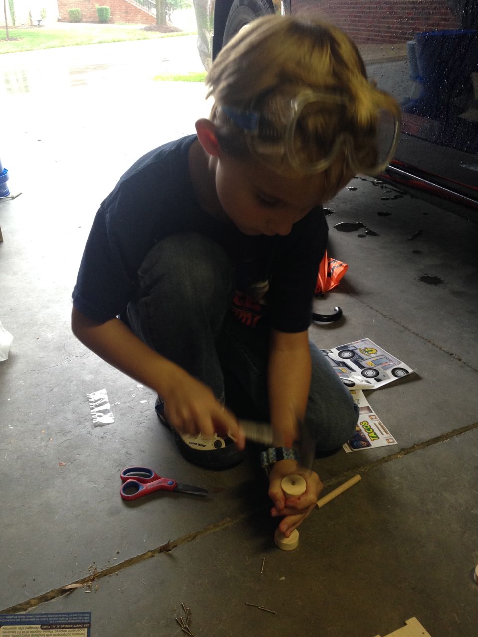 Brian caught up on his Turbo-themed Lowes Build and Grow projects today after his Mad Science: Eureka! camp. He now has both a cool pull-back Turbo he made previously (the super-fast snail from the movie which bears his name) and the really cute Taco Truck he made today, which belonged to the main human characters from the Turbo movie.