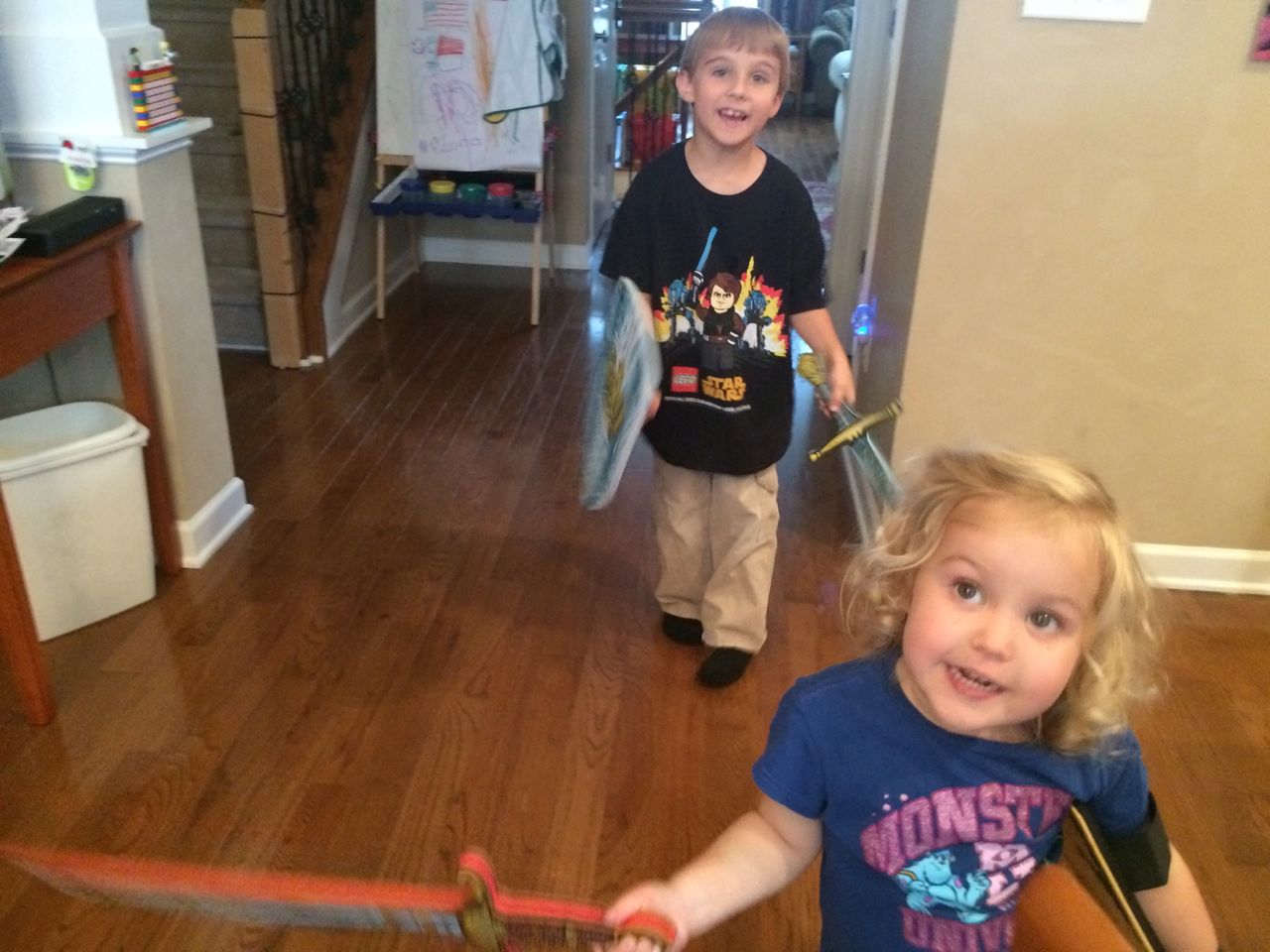 Today was a day of Lego and foam sword fun! We made some pretty involved creations together. Later, when Nana was here, the kids showed off their foam swords! They sure love those things.