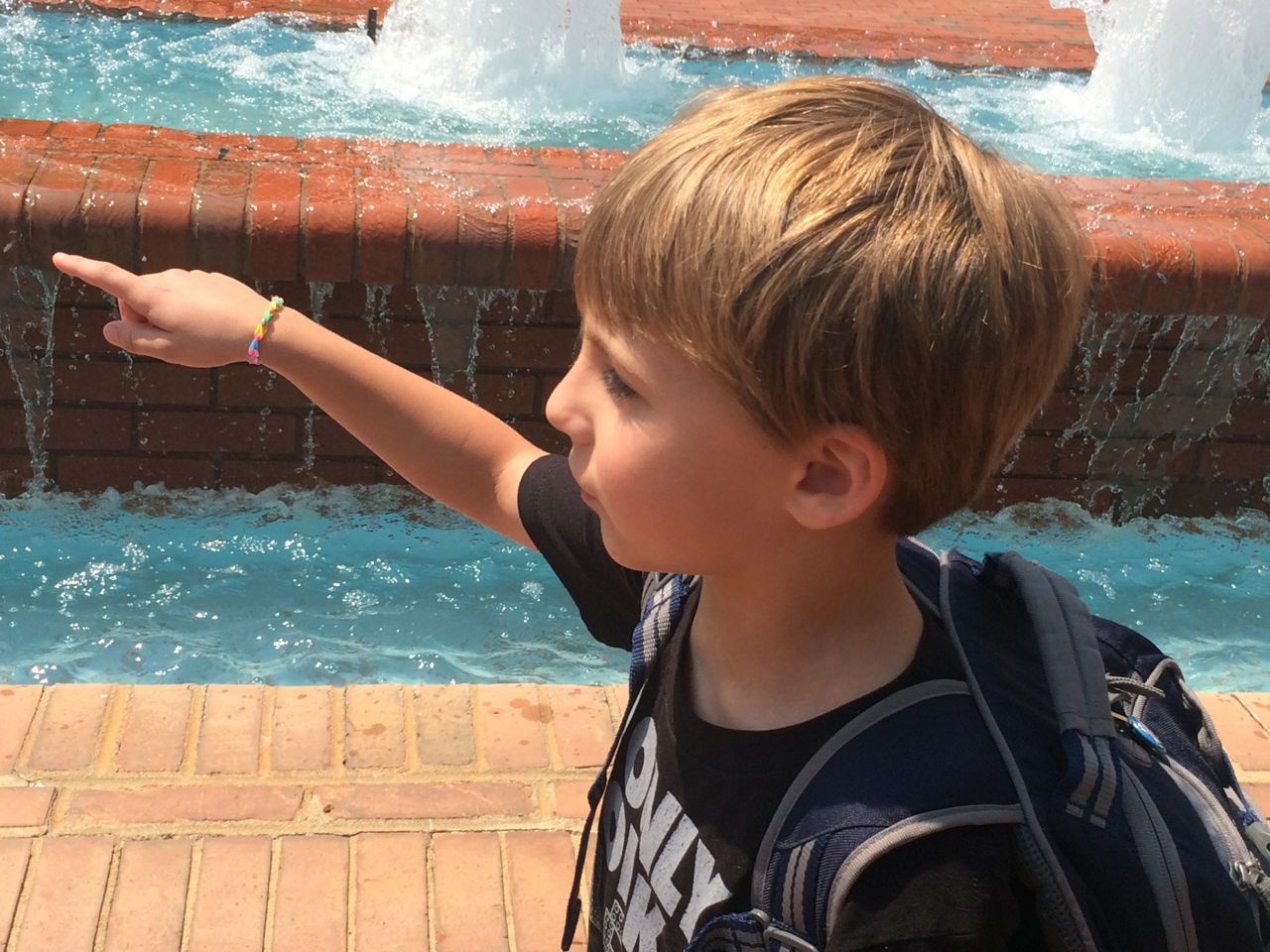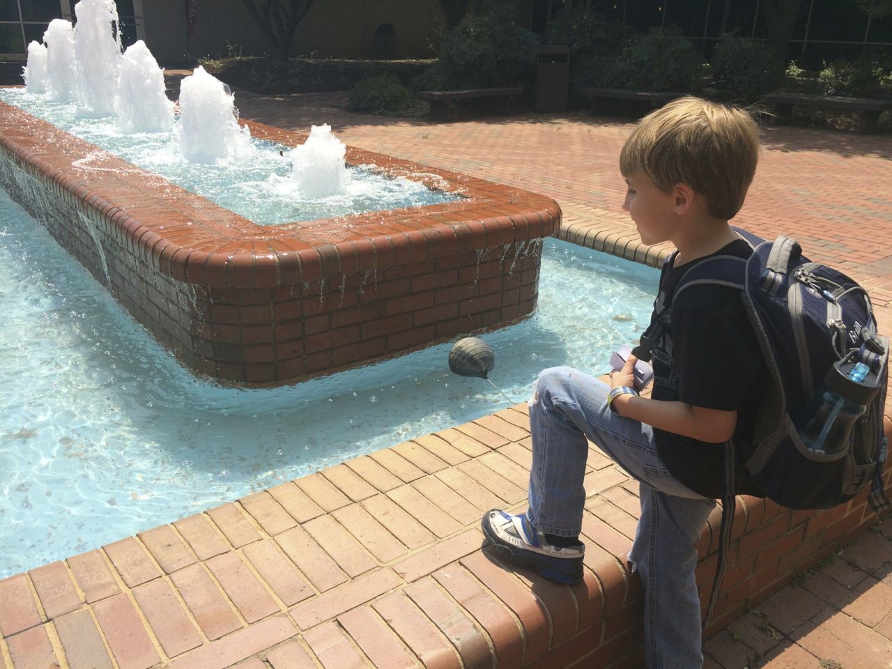 That is a nice photo of Brian standing by the fountain. Wonderful Brian can take a reading class during the summer.