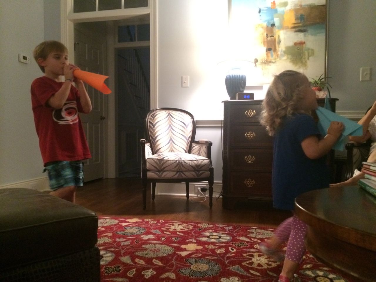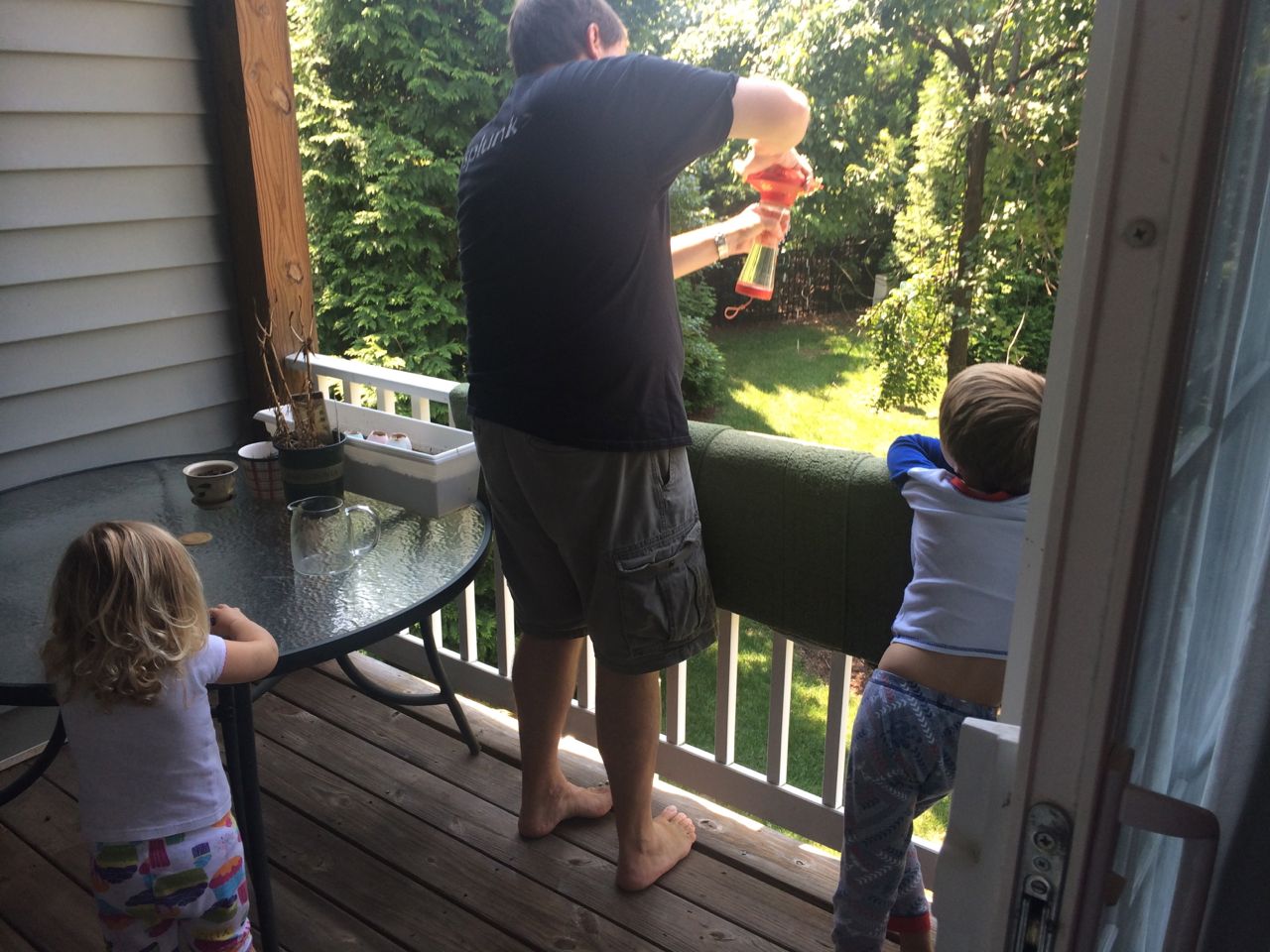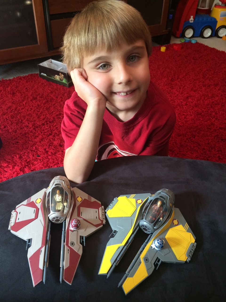 Today we had grand plans to visit Steve and Sue around midday, but the kids were, let’s just say, unsuitable for public consumption in the afternoon. Naps were an absolute must. Not sure what was up with them, it was a pretty calm morning as things go, just breakfast, some crafts, feeding the hummingbirds, finishing up the Jedi Starfighter models.. Brandon was hard at work on glass shard abatement in the van until around 5pm. But, we did make it out to have a nice pizza dinner with Steve and Sue. The kids loved playing with Grandma’s toys and of course the contents of the special art supplies drawer! Video follows below, Kendall playing her “Happy Birthday / Open Your Present” game after breakfast this morning, and a still-sleepy post-nap Kendall who is excited to see Grandma Steve–ah, she means to say Grandpa Steve! (She was chanting their names and getting a bit mixed up!)