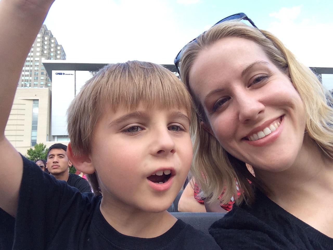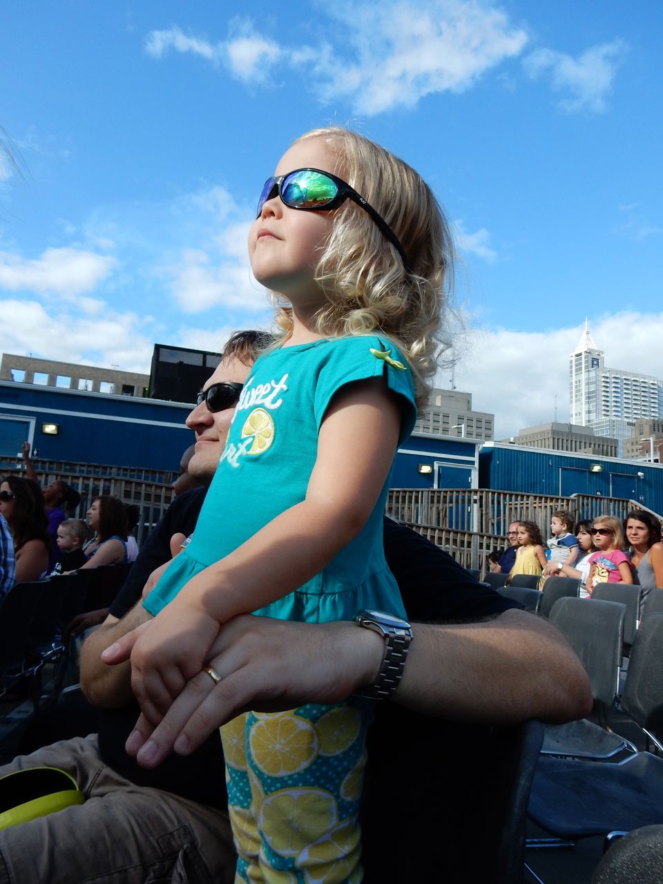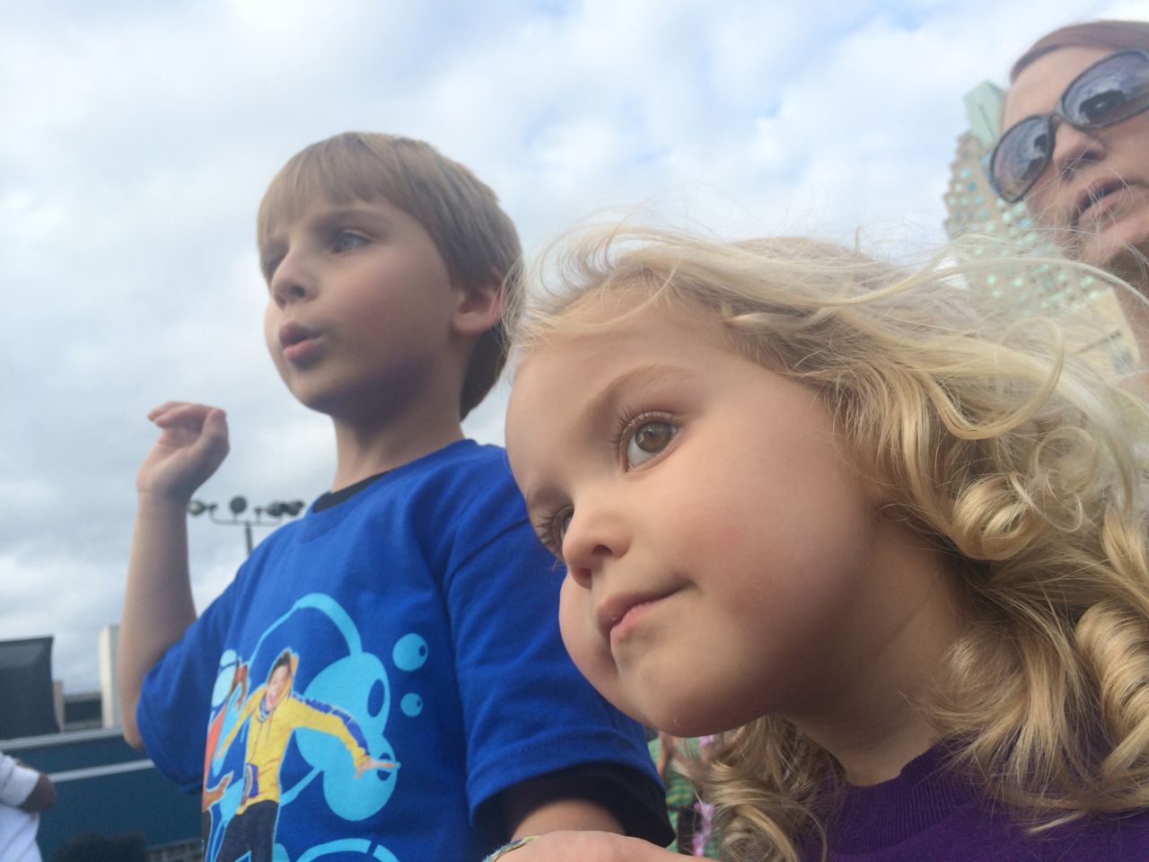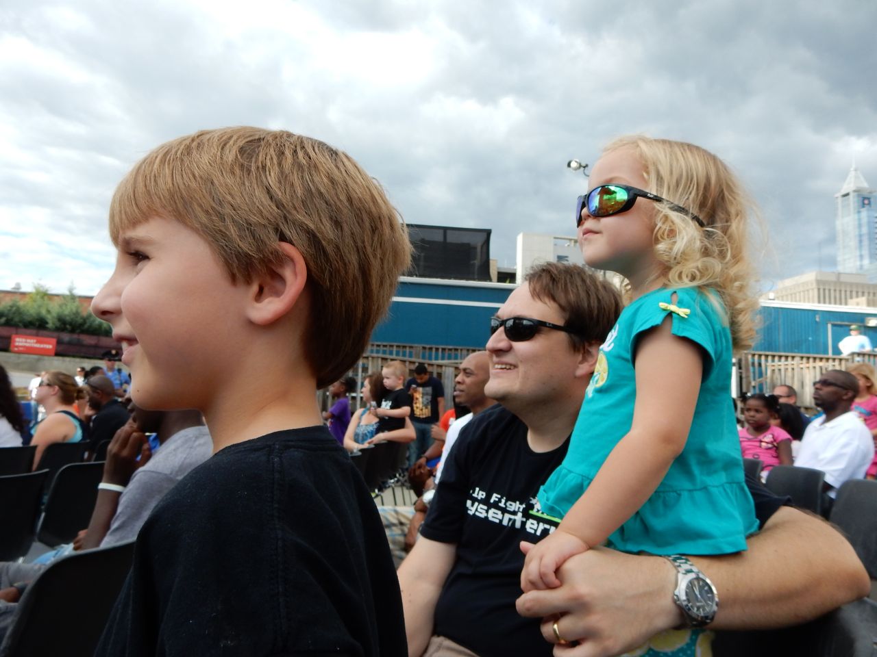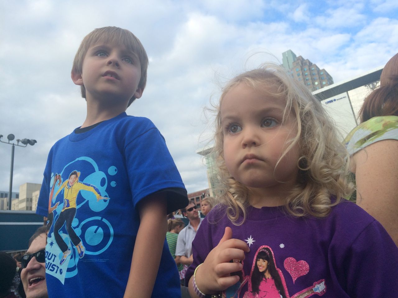Brian knows these songs forwards and backwards and easily gets into the mood and fully engaged. Kendall was exhibiting her typical Kendall self. When in public or a new situation, she has an almost shy or reserved expression. Alison describes it as similar to herself in that she is feeling out the situation and scanning for information. So, more inquisitive than excited. However, by intermission and getting her new Fresh Beat Band girls shirt, she was really into it. We also kept the equality in the universe and got Brian a new Fresh Beat Band boys shirt.