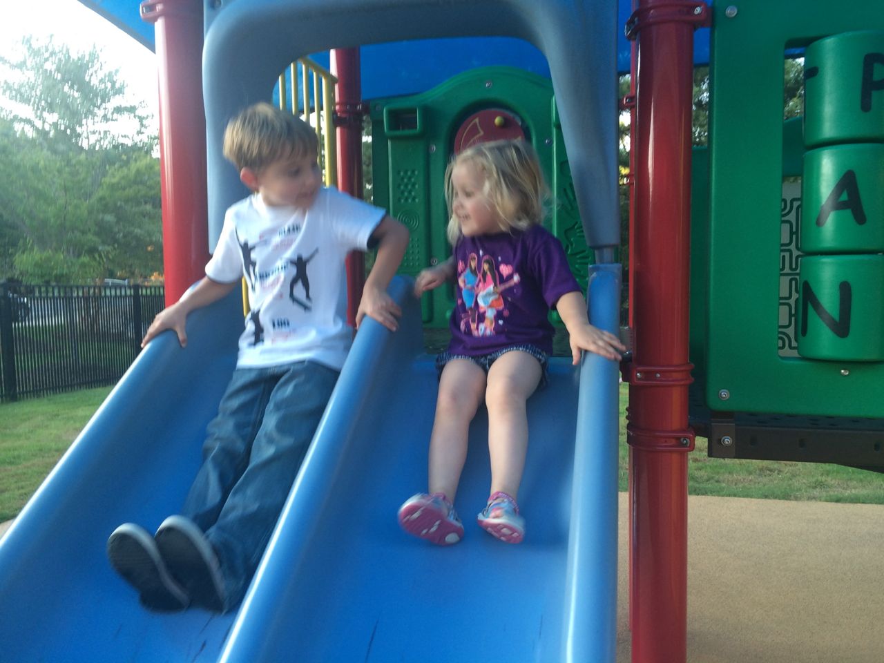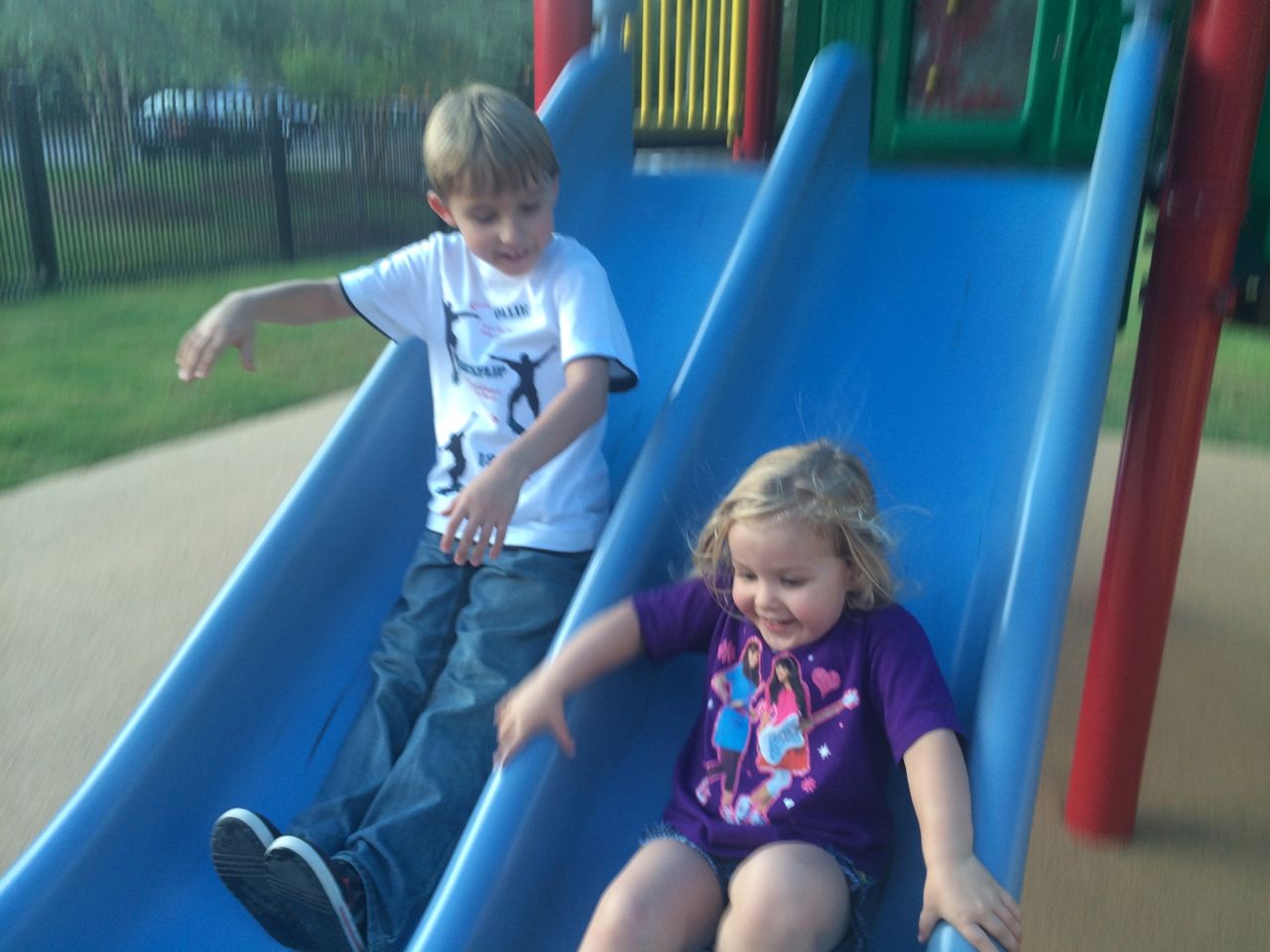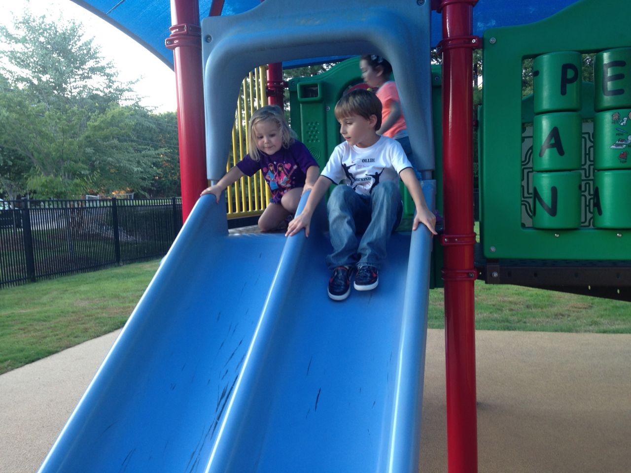 Today the giant foam blocks were out on the playground at Goddard school, and Brian was excited to sneak in a little playtime as we picked up Kendall! He always wants to come in when we pick her up, and usually we don’t have time, but today he got his wish!