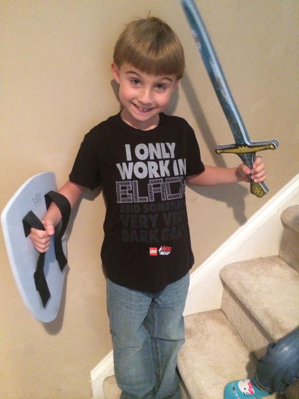 Today we noticed some really cool looking caterpillars on the oak tree we usually park near at the Goddard School. Brian was really interested in them, so we got out of the car to take a closer look. I took a couple pictures and videos this morning (it was overcast), and another this afternoon, when it was much sunnier. Also included, pics of the kids with some new funny t-shirts. Kendall’s shirt has a cute Princess Leia stuck behind Chewbacca saying “Will somebody get this big walking carpet out of my way?” Brian’s has a line that Batman says in The Lego Movie: “I only work in black. Or sometimes very very dark gray.”