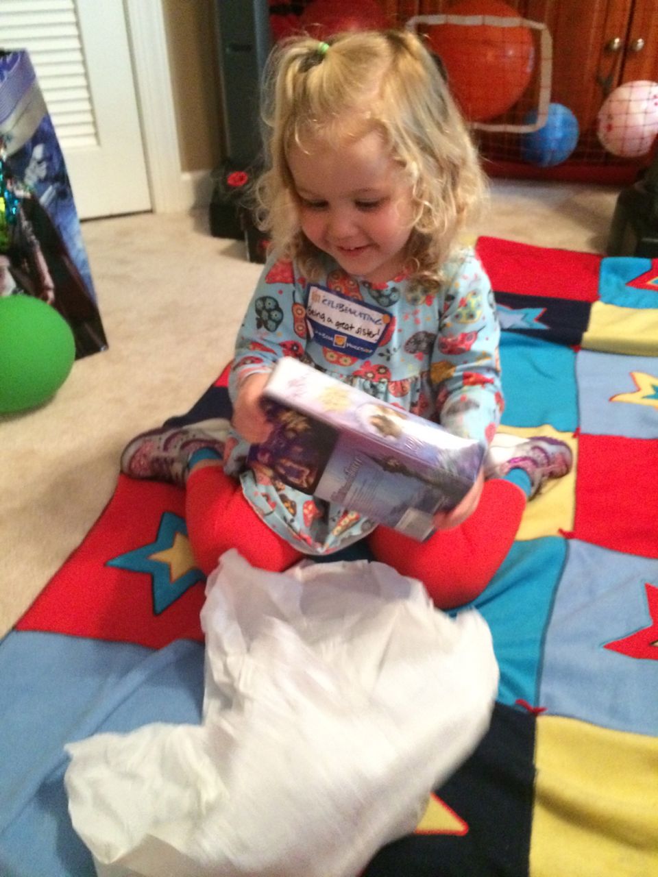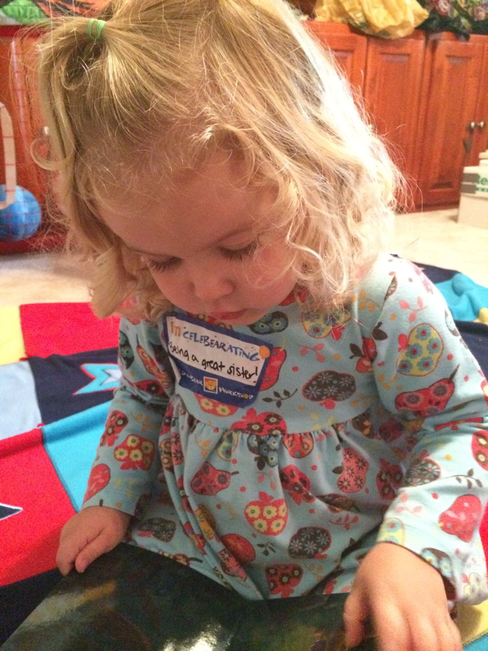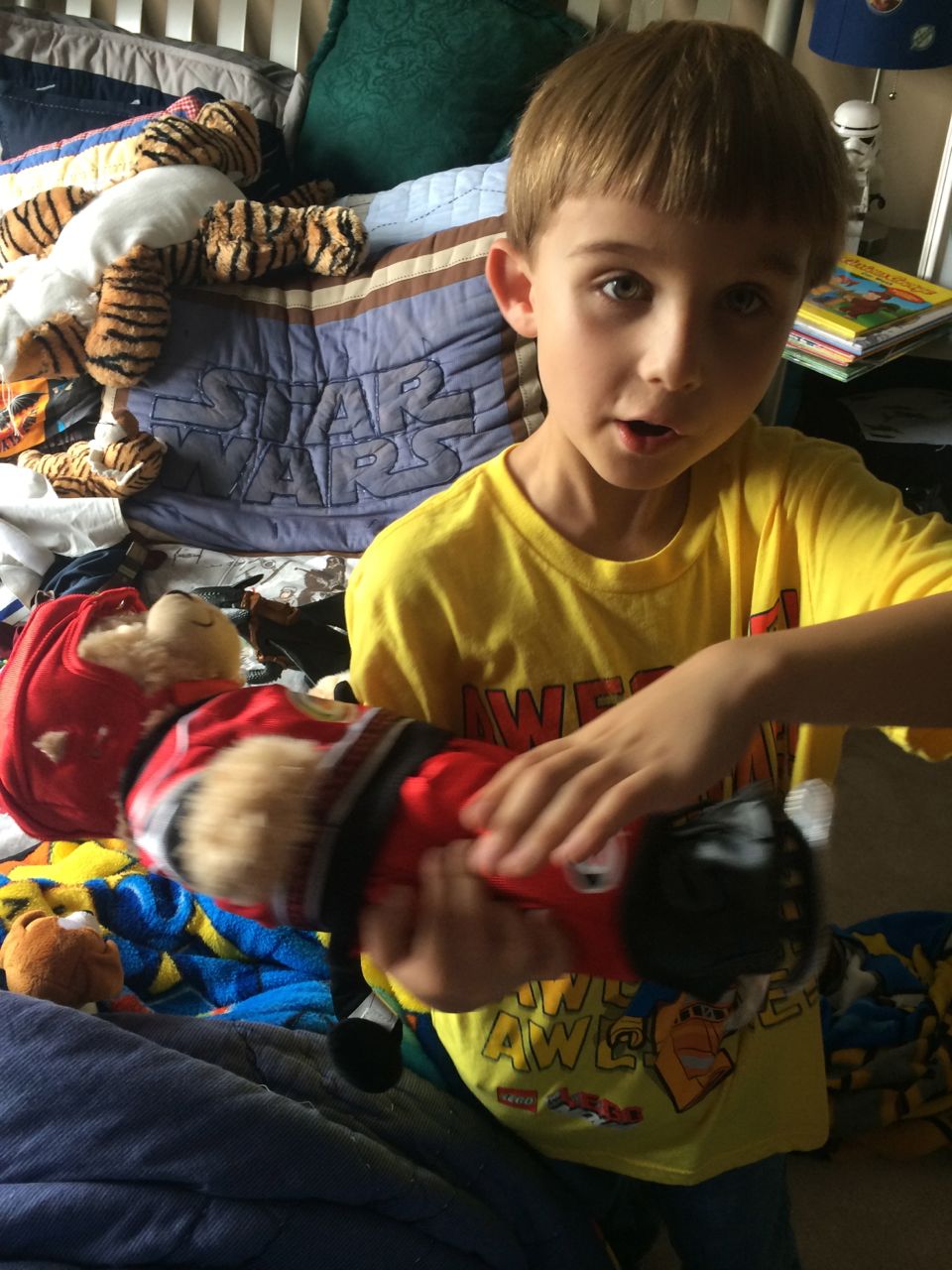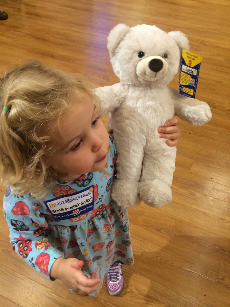 This morning, Brian was playing with Commander Fluffy, and dressed him up in the Carolina Hurricanes hockey outfit that Nana gave him as a birthday present! Funny, because we planned on going back to Build-A-Bear today! After Brian’s trip to Lowes for another Build-and-Grow session, that is. Today he built a cool pair of binoculars! They actually kind of work, too. 😉 I played with Kendall until the boys returned, then we were off to Build-a-Bear! Brian got to stuff his Toothless, and Kendall got to make her own bear, and dress it up like Rapunzel! Toothless got a cool roar sound, and Rapunzel bear got the song “Let It Go” from Frozen. Kendall also got a box of Tangled board books today–that was one of the “little sister” presents I’d gotten her, in case she got really jealous about Brian’s birthday presents (it wasn’t an issue, so she got the books today, just for fun!) She really loves them, and they’re short enough to read all four, and convenient for lots of situations, so I’m glad I picked those up for her. She loves books in a box! Brian’s old Thomas and Curious George sets are favorites of hers, too. The kids topped off an already busy day with a dance party in our room! They begged to hear the “Move It Move It” song and the “Way-Oh” song, which they know from hockey games. They brought all sorts of light-up toys (even their blinking toothbrushes!) to add to the fun. 😉