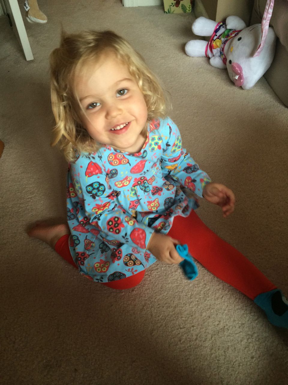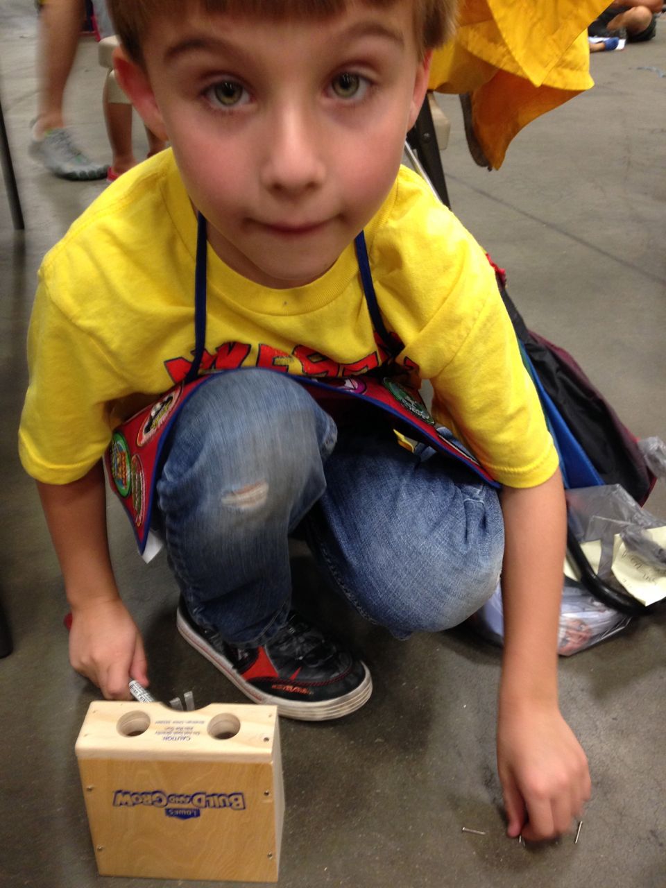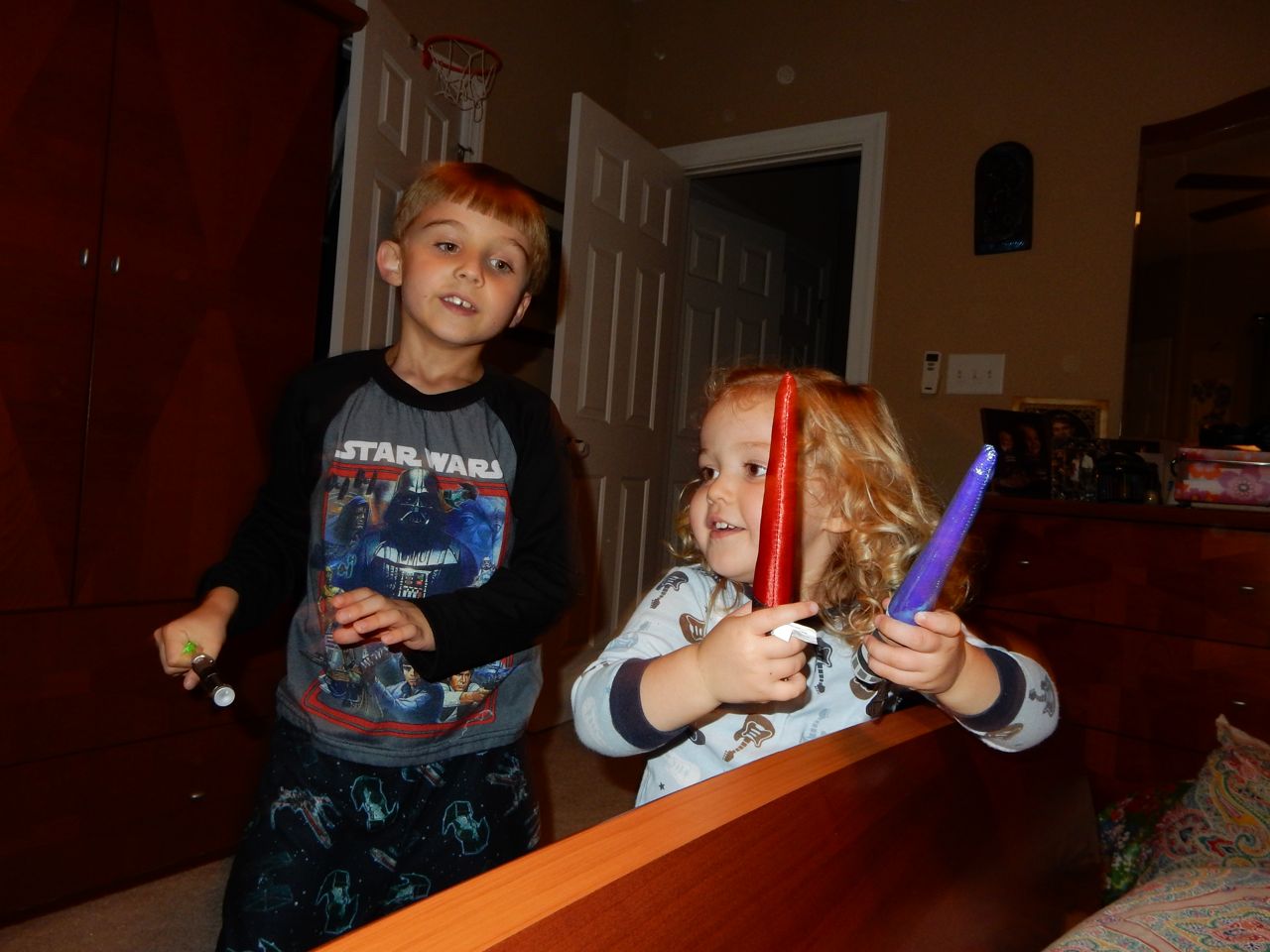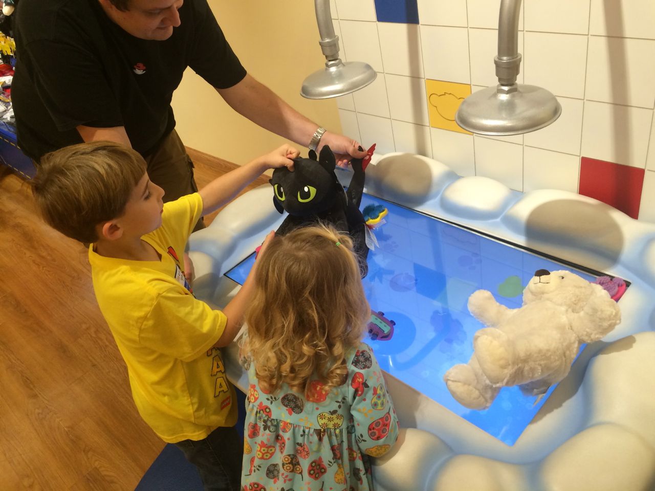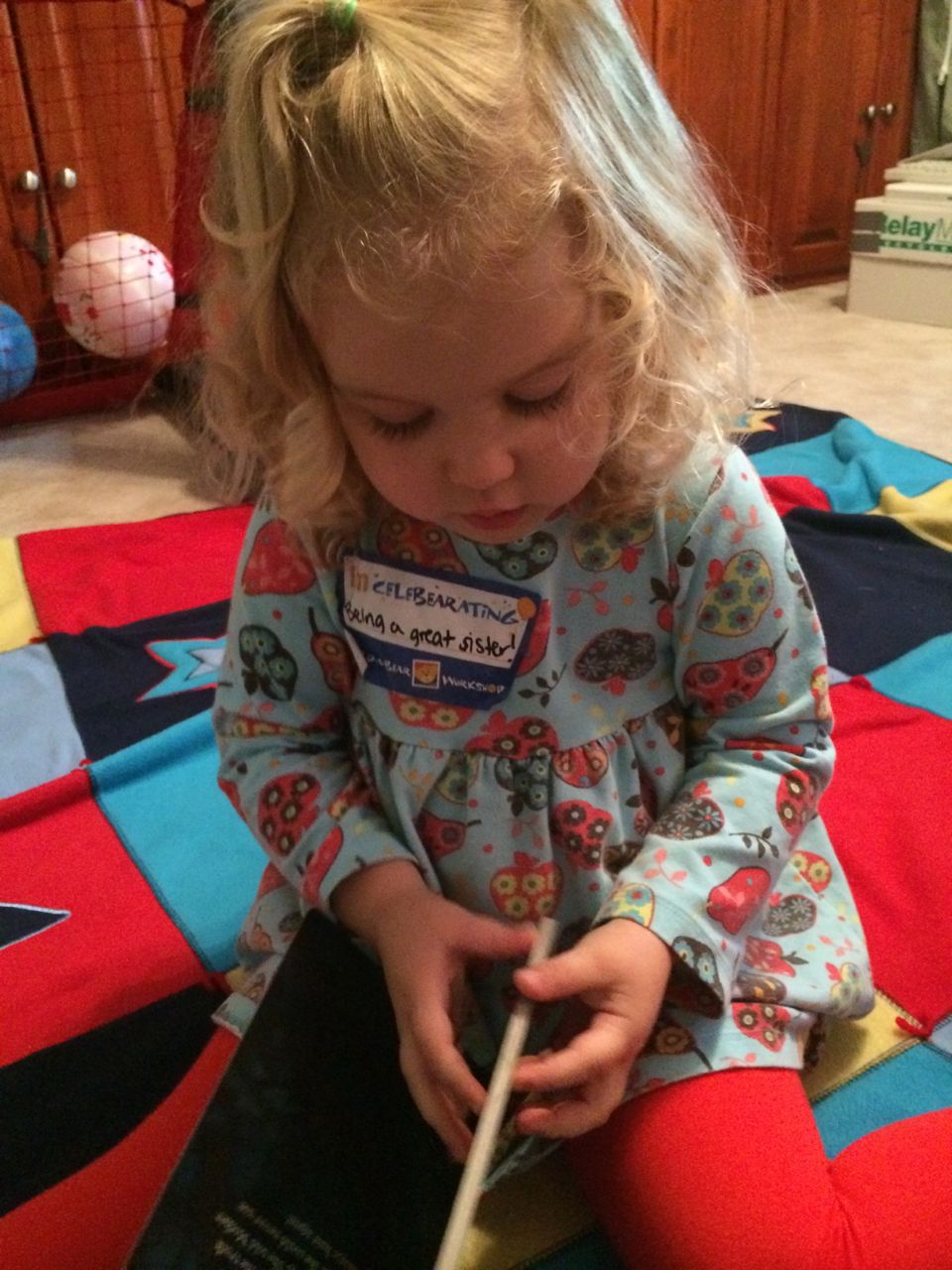 This morning, Brian was playing with Commander Fluffy, and dressed him up in the Carolina Hurricanes hockey outfit that Nana gave him as a birthday present! Funny, because we planned on going back to Build-A-Bear today! After Brian’s trip to Lowes for another Build-and-Grow session, that is. Today he built a cool pair of binoculars! They actually kind of work, too. 😉 I played with Kendall until the boys returned, then we were off to Build-a-Bear! Brian got to stuff his Toothless, and Kendall got to make her own bear, and dress it up like Rapunzel! Toothless got a cool roar sound, and Rapunzel bear got the song “Let It Go” from Frozen. Kendall also got a box of Tangled board books today–that was one of the “little sister” presents I’d gotten her, in case she got really jealous about Brian’s birthday presents (it wasn’t an issue, so she got the books today, just for fun!) She really loves them, and they’re short enough to read all four, and convenient for lots of situations, so I’m glad I picked those up for her. She loves books in a box! Brian’s old Thomas and Curious George sets are favorites of hers, too. The kids topped off an already busy day with a dance party in our room! They begged to hear the “Move It Move It” song and the “Way-Oh” song, which they know from hockey games. They brought all sorts of light-up toys (even their blinking toothbrushes!) to add to the fun. 😉