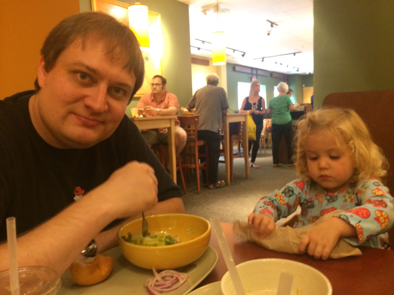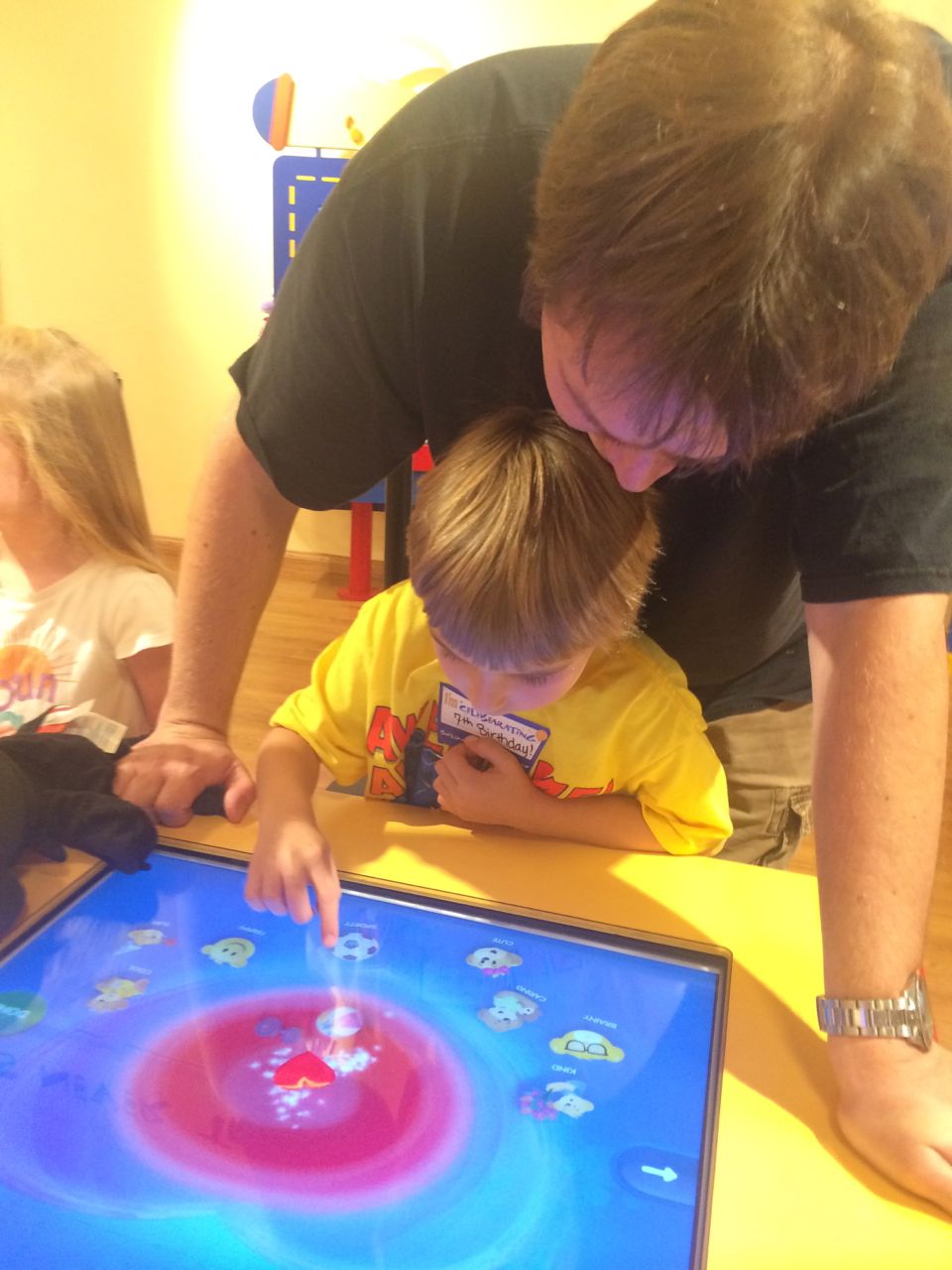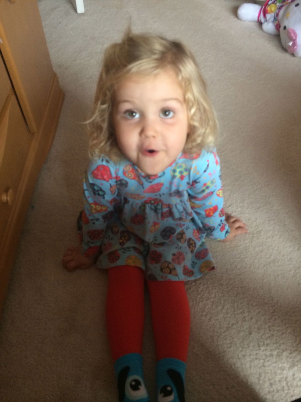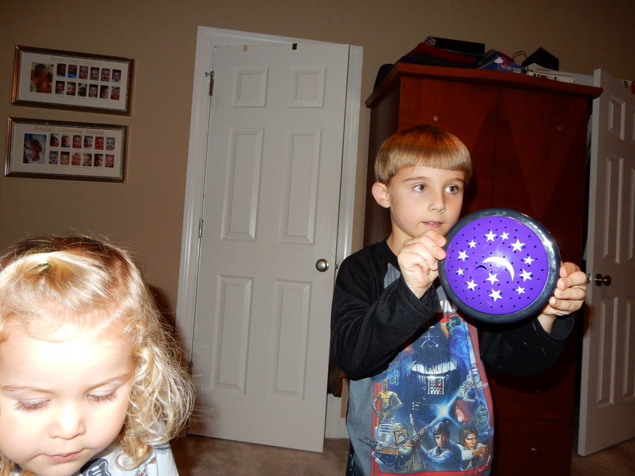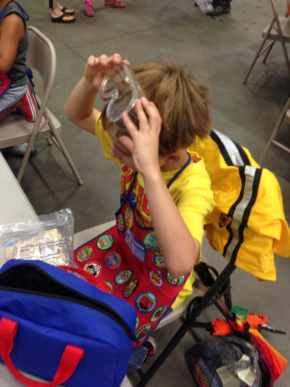This morning, Brian was playing with Commander Fluffy, and dressed him up in the Carolina Hurricanes hockey outfit that Nana gave him as a birthday present! Funny, because we planned on going back to Build-A-Bear today! After Brian’s trip to Lowes for another Build-and-Grow session, that is. Today he built a cool pair of binoculars! They actually kind of work, too. 😉 I played with Kendall until the boys returned, then we were off to Build-a-Bear! Brian got to stuff his Toothless, and Kendall got to make her own bear, and dress it up like Rapunzel! Toothless got a cool roar sound, and Rapunzel bear got the song “Let It Go” from Frozen. Kendall also got a box of Tangled board books today–that was one of the “little sister” presents I’d gotten her, in case she got really jealous about Brian’s birthday presents (it wasn’t an issue, so she got the books today, just for fun!) She really loves them, and they’re short enough to read all four, and convenient for lots of situations, so I’m glad I picked those up for her. She loves books in a box! Brian’s old Thomas and Curious George sets are favorites of hers, too. The kids topped off an already busy day with a dance party in our room! They begged to hear the “Move It Move It” song and the “Way-Oh” song, which they know from hockey games. They brought all sorts of light-up toys (even their blinking toothbrushes!) to add to the fun. 😉