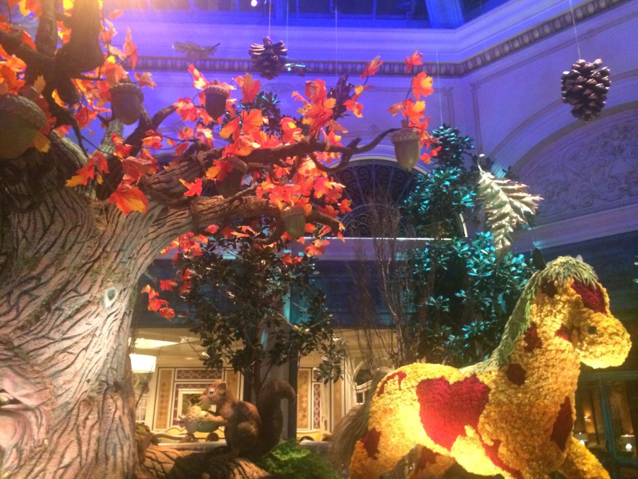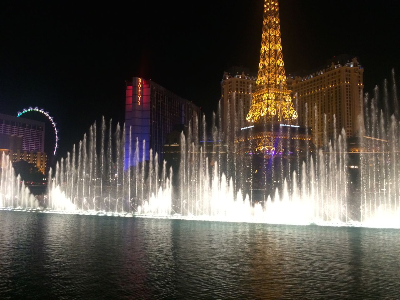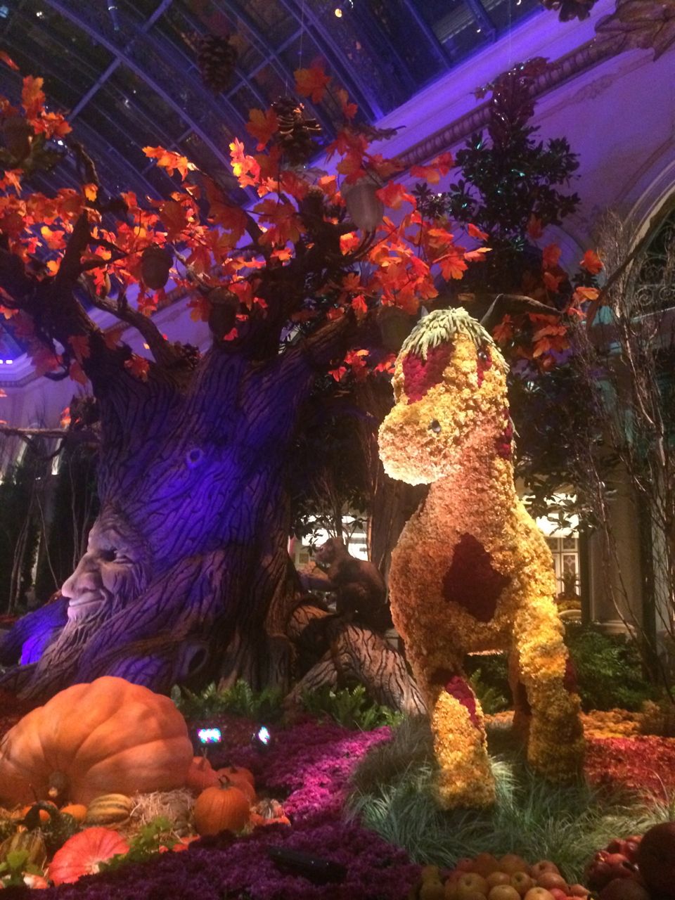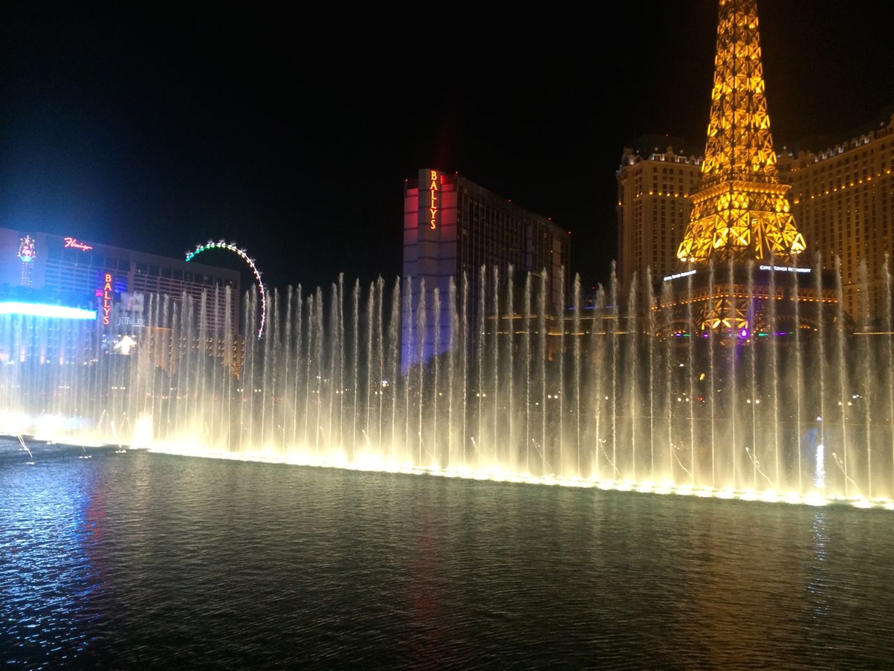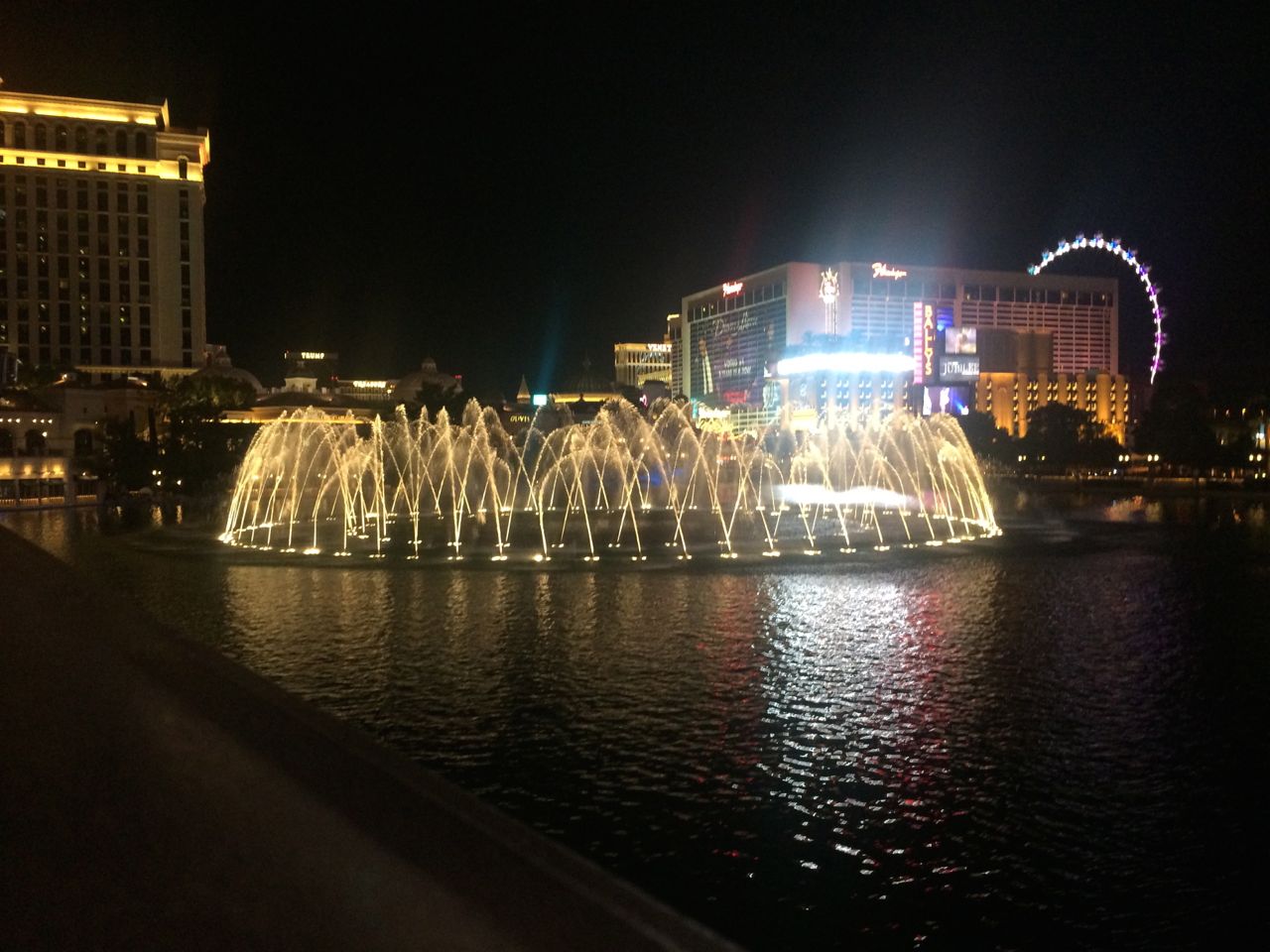 Today was my big day–I did my presentation, and even being sick, with no sleep, I managed it! Everyone said I did really well, and I was relieved to be done. The kids had sent me a really sweet “good luck” video! I did my second panel in the afternoon, part of a Q&A with other customers, and that also went well. After that, I had a little time before my next event, so we did a little FaceTime chat from my hotel room. It was so fun to talk with the kids and give them the “tour” of my room. They had liked the pictures of the giant Buttercup so much, I got them a little plushie one of their own. (Click the link for the backstory on Buttercup–I had to look it up myself!) Soon, I had to go to a fancy customer dinner thing at Hakkasan, a fancy club in the MGM Grand. The food there was good, and I had a great time geeking out with some other conference attendees–I would have stayed longer if they’d let me! But, they had to clear out us nerds to let all the beautiful people in, or whatever. 😉 After that, I don’t know how I had any energy left at all, but somehow managed to push through and walk the strip with my co-workers, who hadn’t been to Vegas before. I knew they just had to see the gardens and the water show at the Bellagio! No trip is complete without it.