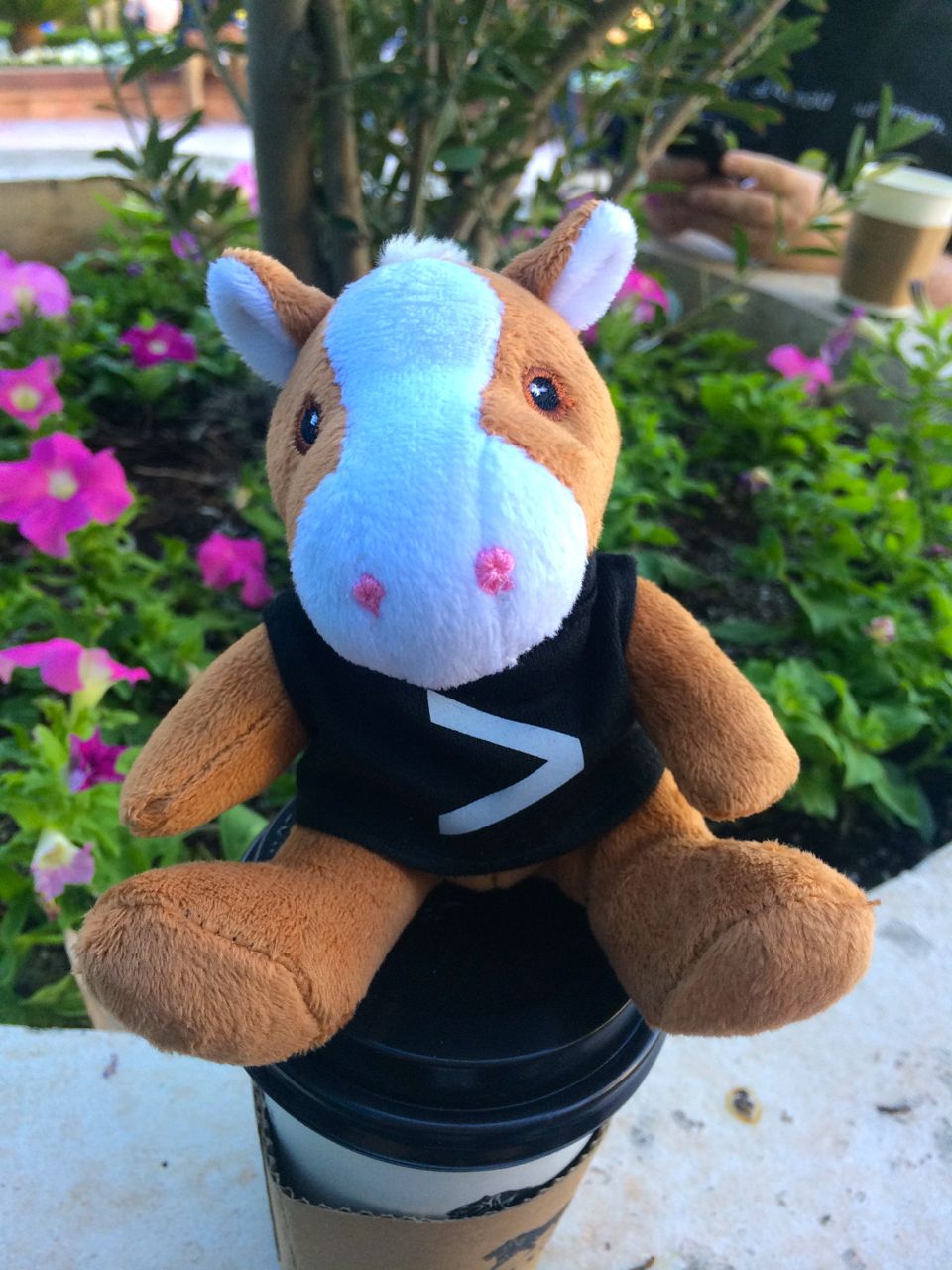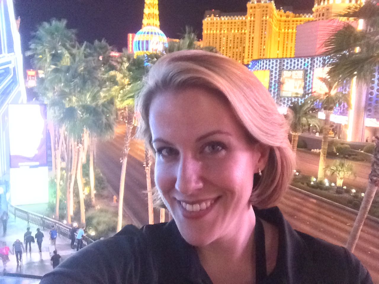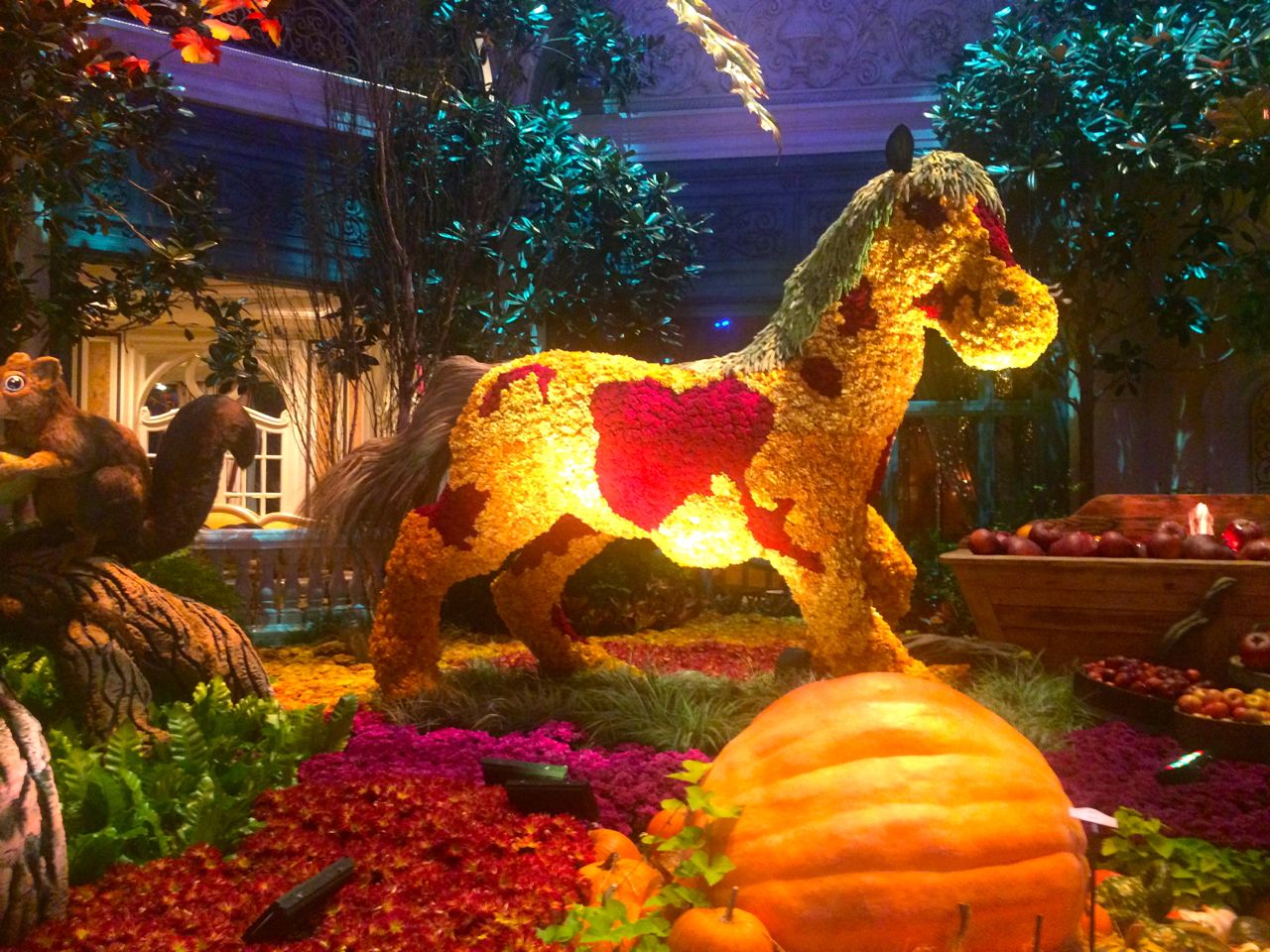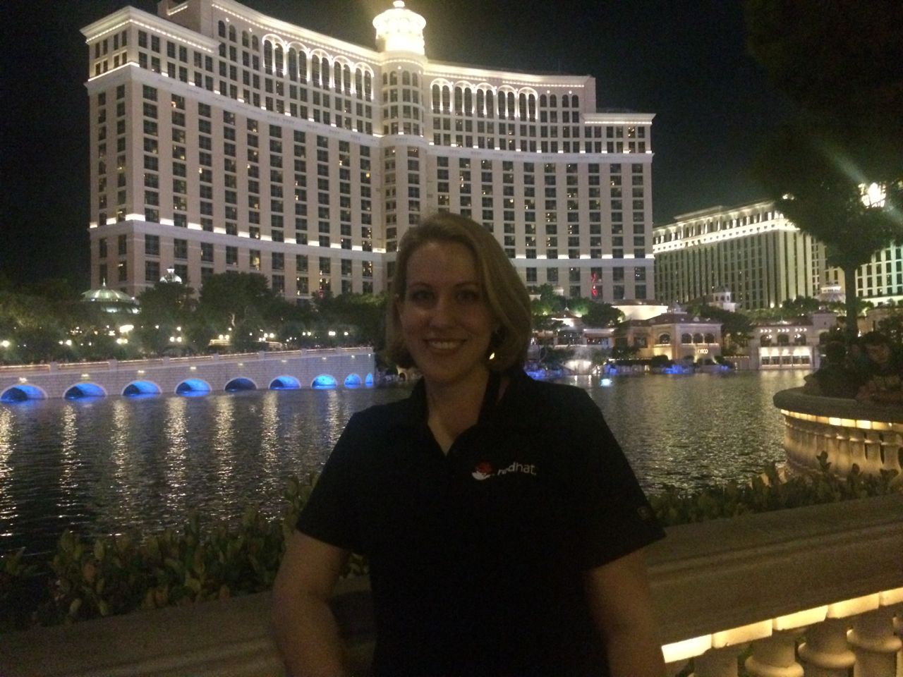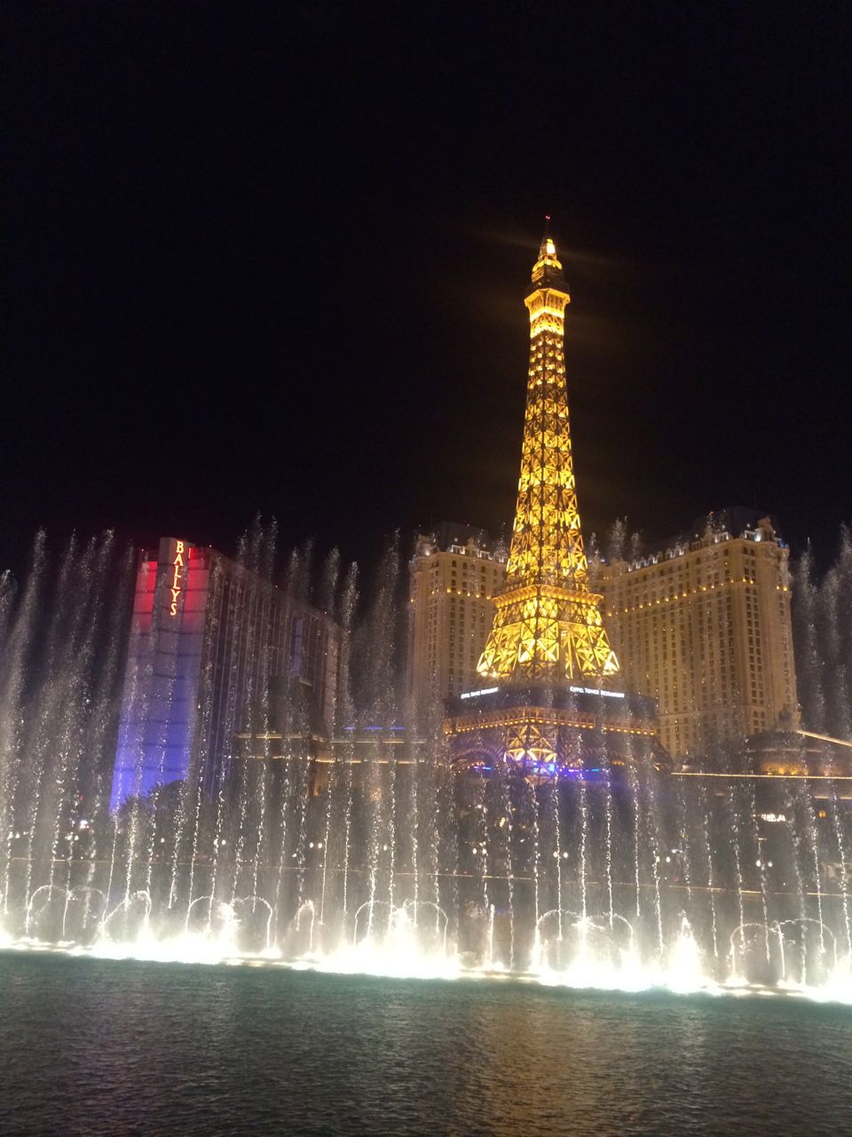 Today was my big day–I did my presentation, and even being sick, with no sleep, I managed it! Everyone said I did really well, and I was relieved to be done. The kids had sent me a really sweet “good luck” video! I did my second panel in the afternoon, part of a Q&A with other customers, and that also went well. After that, I had a little time before my next event, so we did a little FaceTime chat from my hotel room. It was so fun to talk with the kids and give them the “tour” of my room. They had liked the pictures of the giant Buttercup so much, I got them a little plushie one of their own. (Click the link for the backstory on Buttercup–I had to look it up myself!) Soon, I had to go to a fancy customer dinner thing at Hakkasan, a fancy club in the MGM Grand. The food there was good, and I had a great time geeking out with some other conference attendees–I would have stayed longer if they’d let me! But, they had to clear out us nerds to let all the beautiful people in, or whatever. 😉 After that, I don’t know how I had any energy left at all, but somehow managed to push through and walk the strip with my co-workers, who hadn’t been to Vegas before. I knew they just had to see the gardens and the water show at the Bellagio! No trip is complete without it.