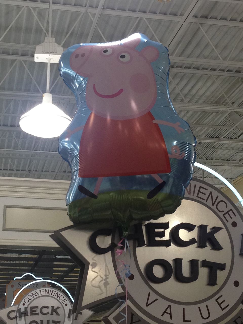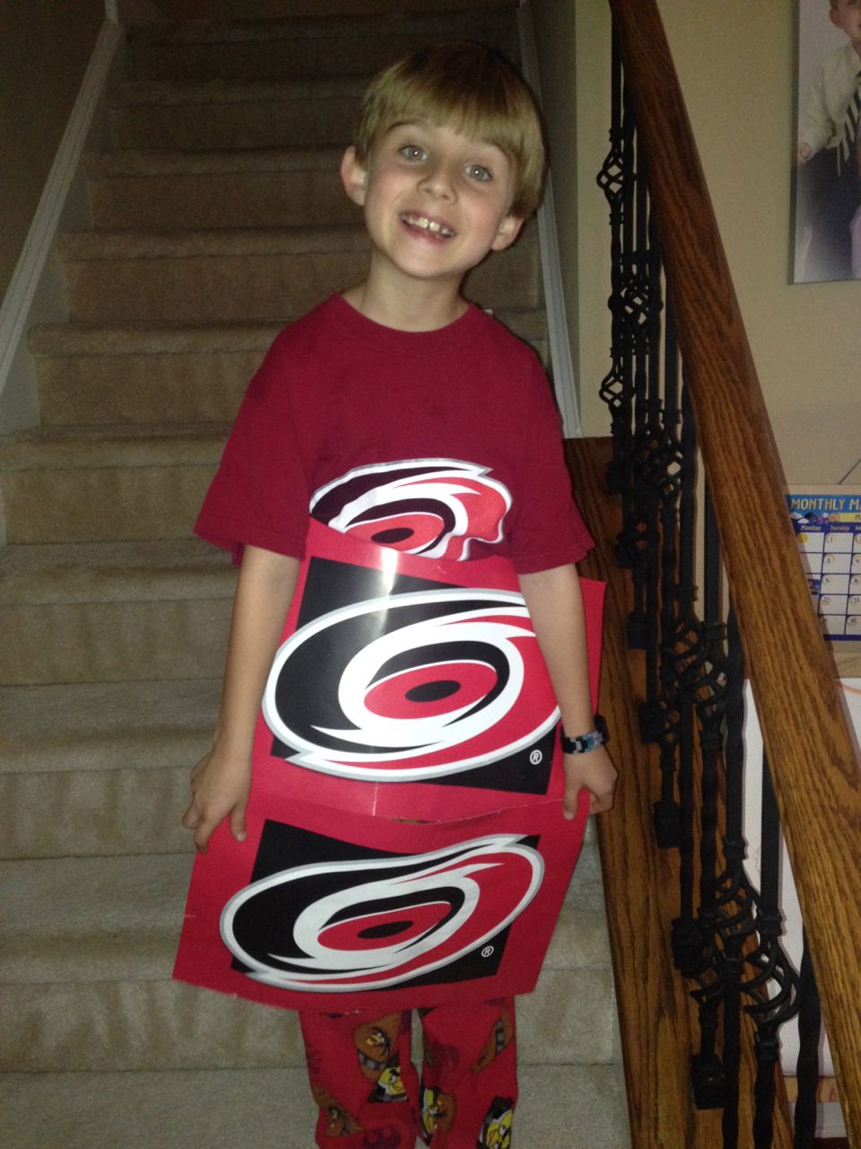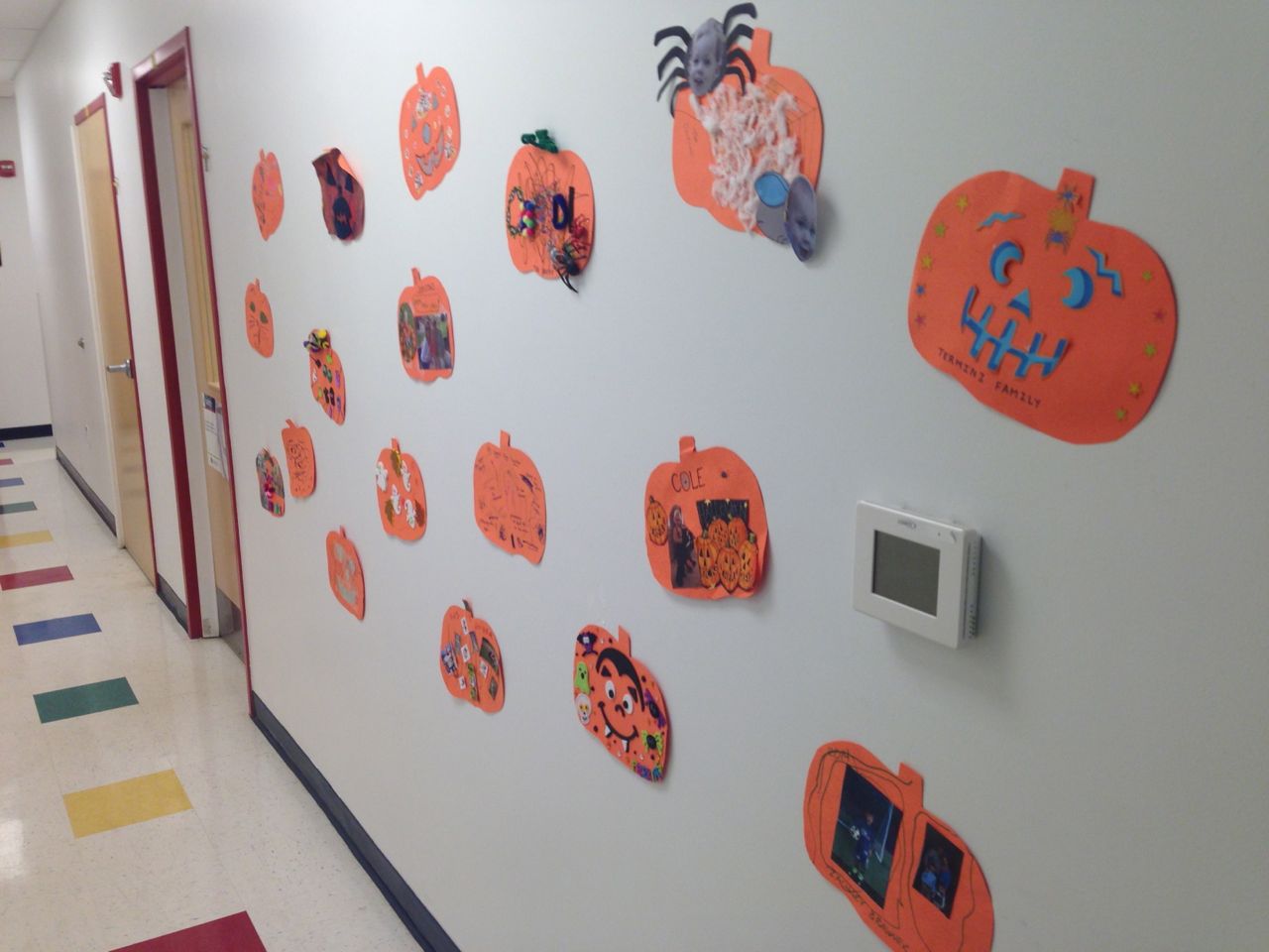 It’s spirit week at Root, and while we aren’t equipped to do all of the activities, the “wear all red” day was a possibility! Brian came down the stairs like this, and while we had to applaud his creativity, we did have to modify the outfit a bit! 😉 Goddard is doing another family wall thing, this time with pumpkins. So, we made ours using some of the Halloween stickers we already had. Pretty cute! At the grocery store, Kendall saw a cute Peppa Pig balloon–she asked Brandon to take a picture to send to Brian! They are both big fans of the that show. Finally, a cute hatching egg creation that Brian made for Kendall. He’s quite the artist!