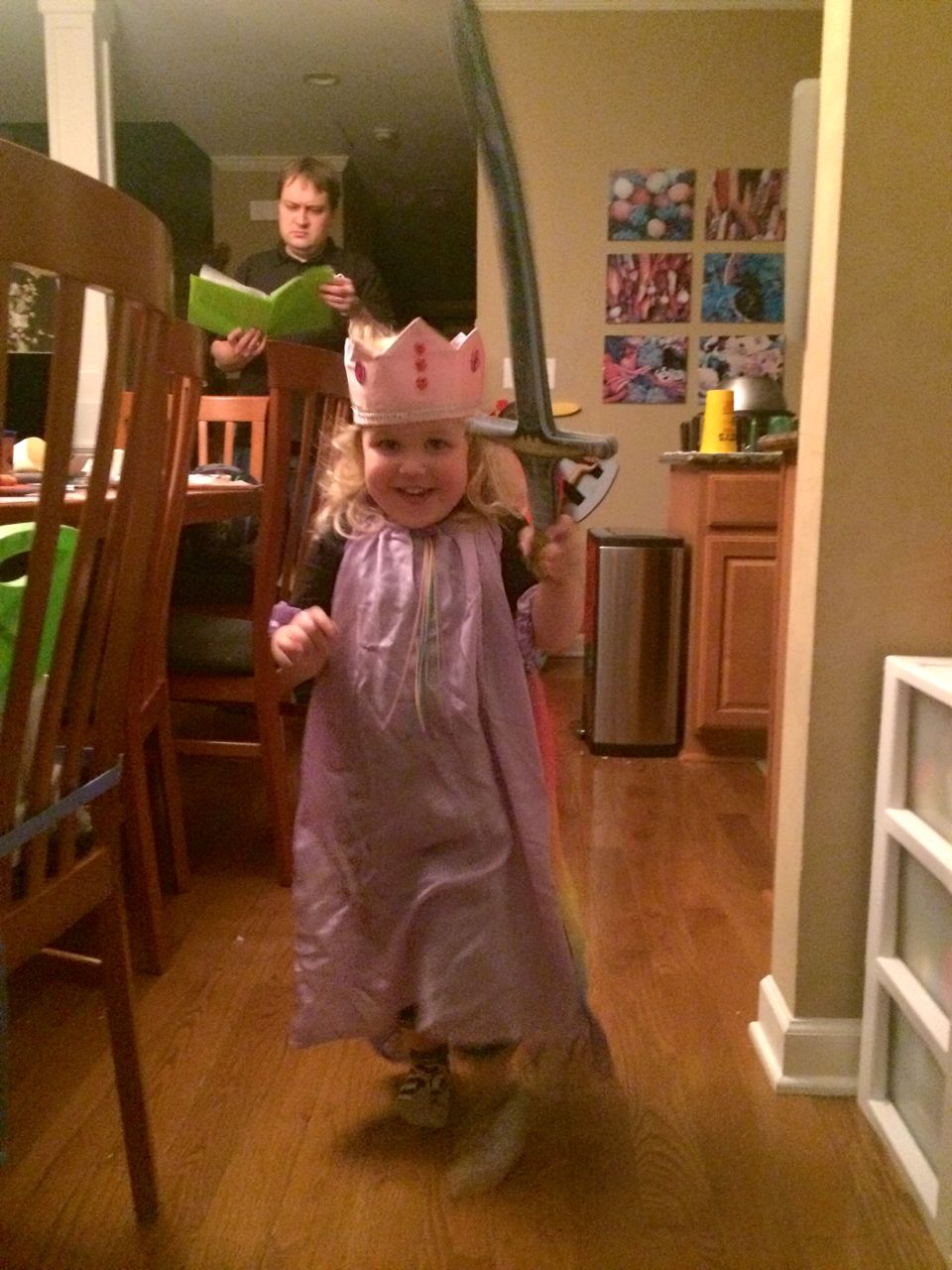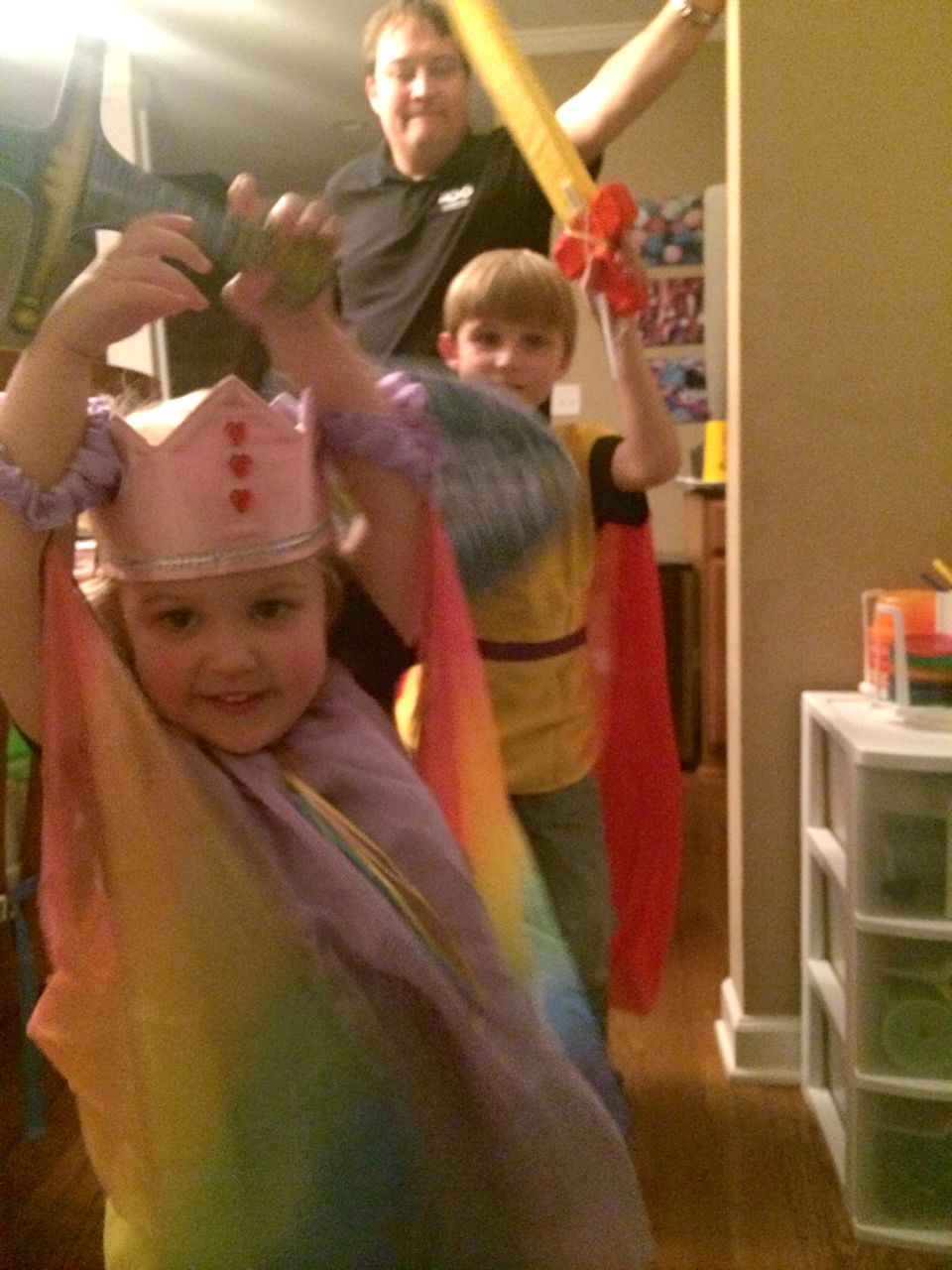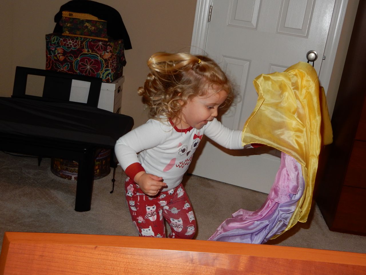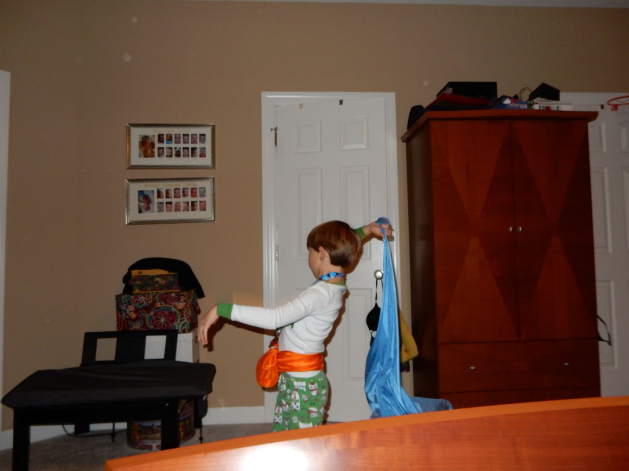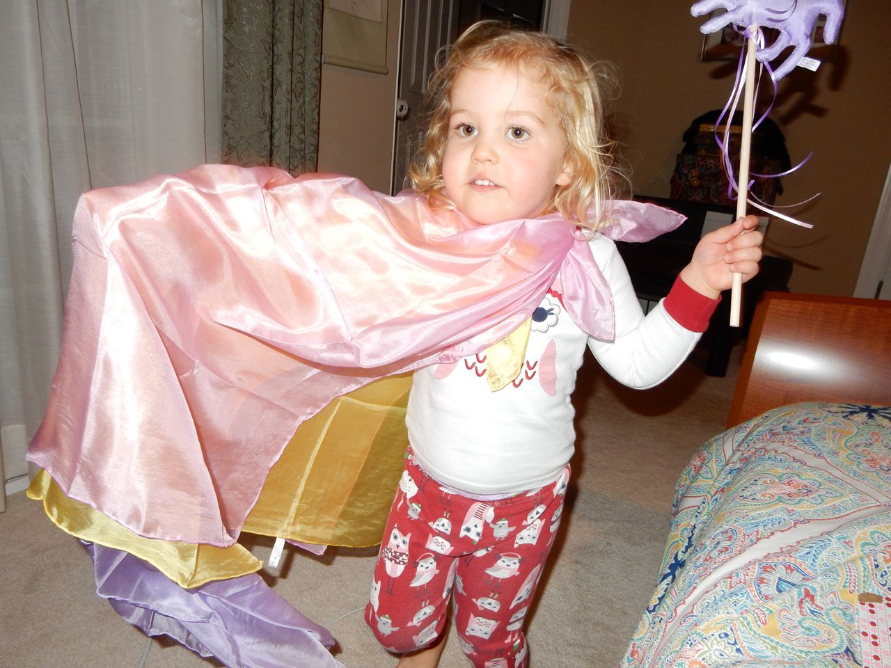 I wasn’t feeling so good today (sinus infection, must be Friday) so Brandon took Kendall along for Brian’s hockey practice. She was excited to be at the IcePlex, but probably pretty jealous to not be on the ice herself! I sent her a picture of her Twilight Sparkle pony who arrived today. 😉 The kids came home and were excited to get their new playsilks, which they combined with their viking helmets and toy swords to great effect. The kids were so spun up, they ended up having an impromptu dance party in our room (coordinating pajamas are key for a good dance party). 😉 I know, it’s early to go ahead and give them what will probably be their Christmas pajamas, but they just love having matching-but-not-the-same pajamas!
