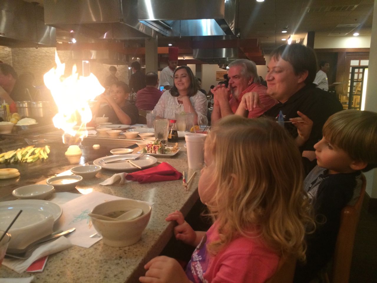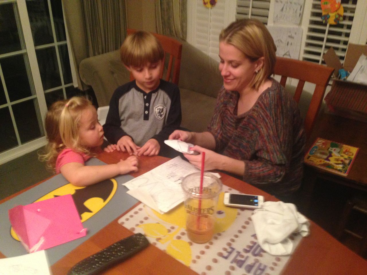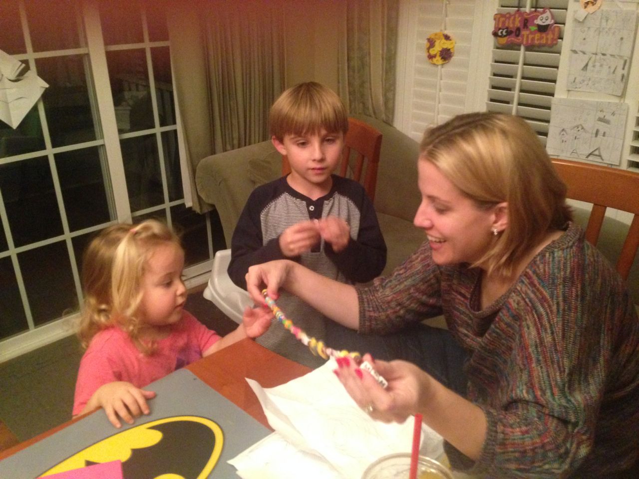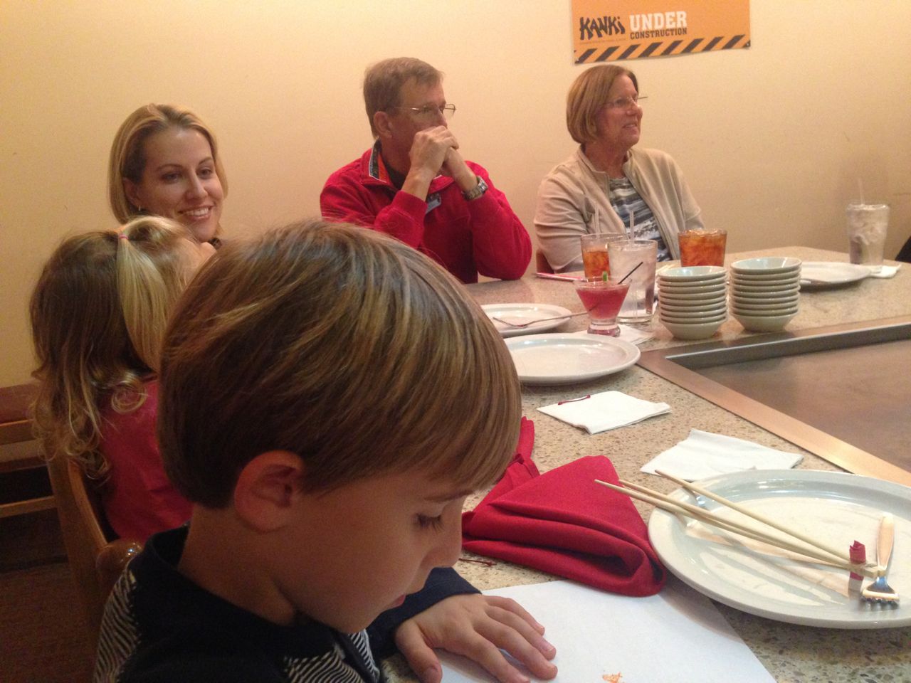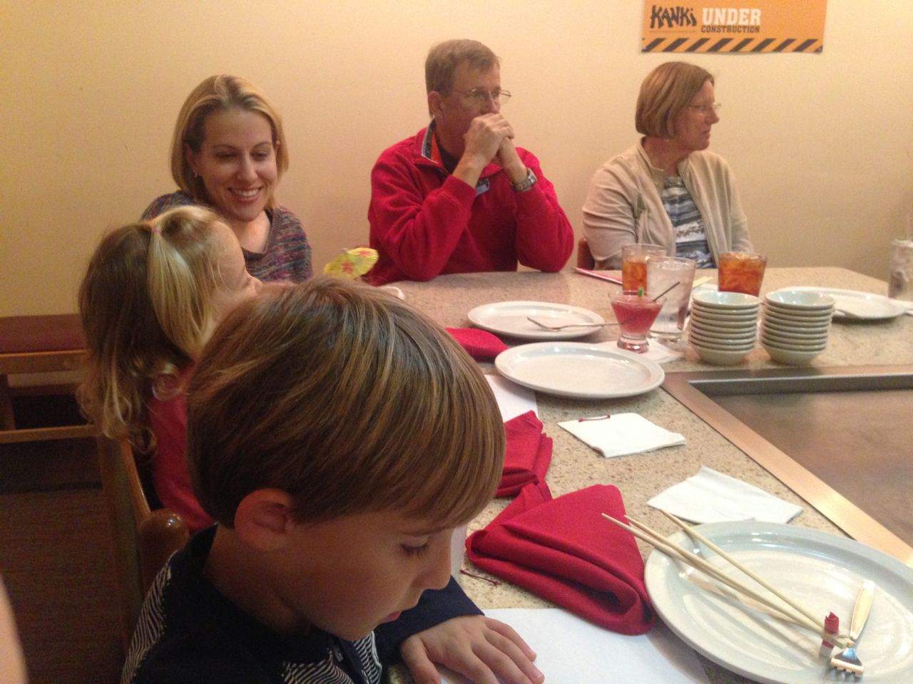 It’s my birthday, and Steve and Sue took us all out for dinner at Kanki, as has become our tradition.  The kids were super happy to get paper umbrellas in their drinks, and were generally well-behaved, but kept us pretty busy nonetheless.  Kendall really liked her soup this time.  One of the other families at our table included one of our well-known helpers from the Lego Store, and Brandon had a good time chatting with him and getting the scoop on some Lego things from an employee’s perspective.  Back home, the kids gave me a bead-banner that Brian had made for me, and we had some cupcakes to share!