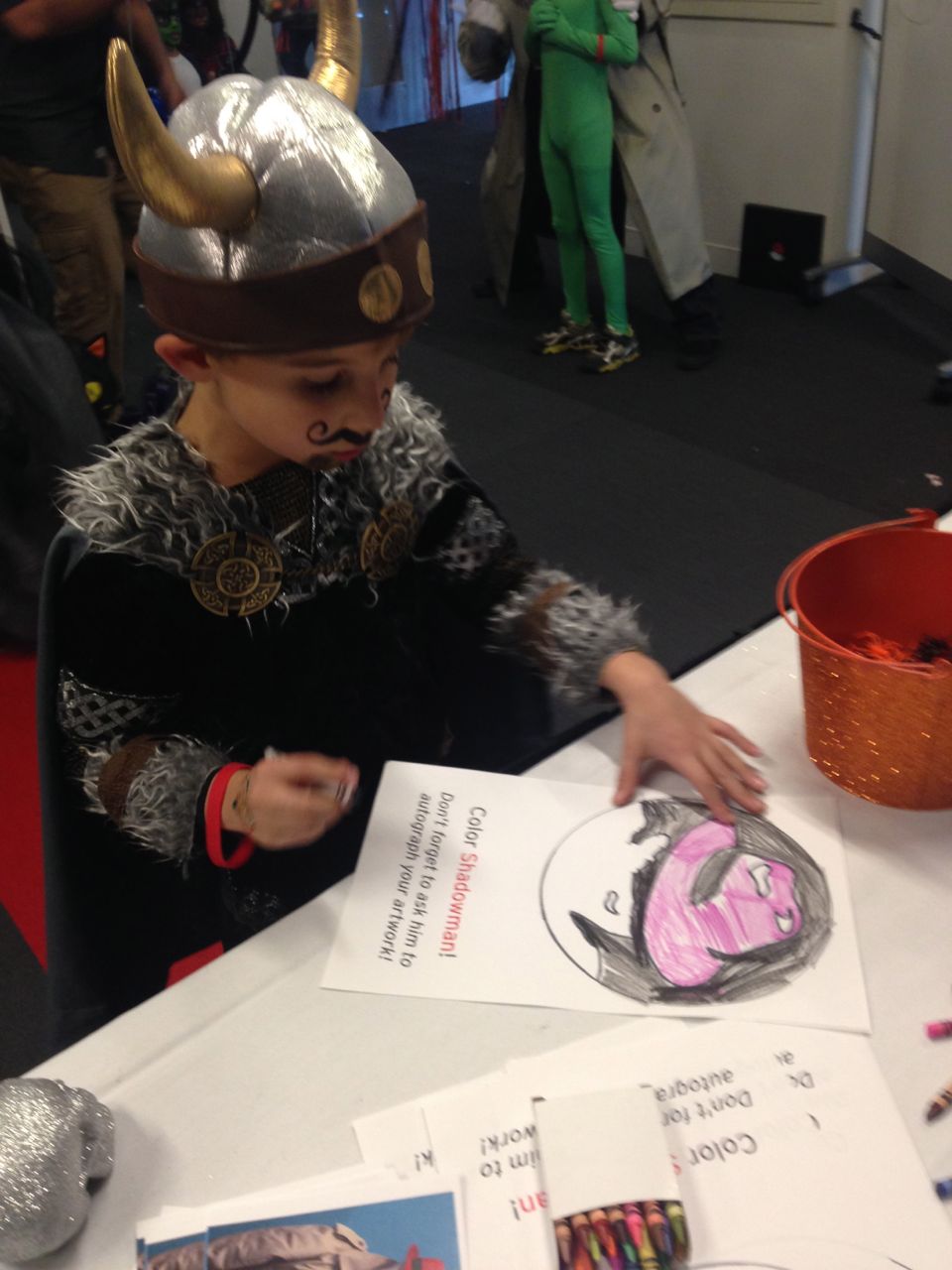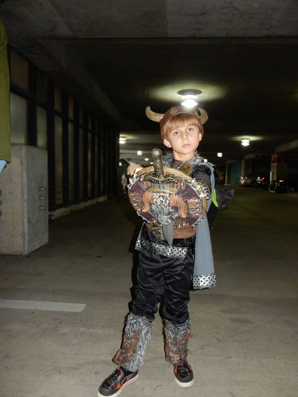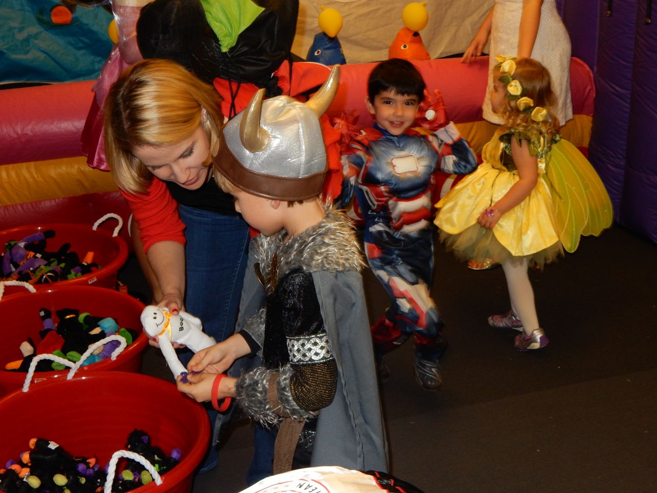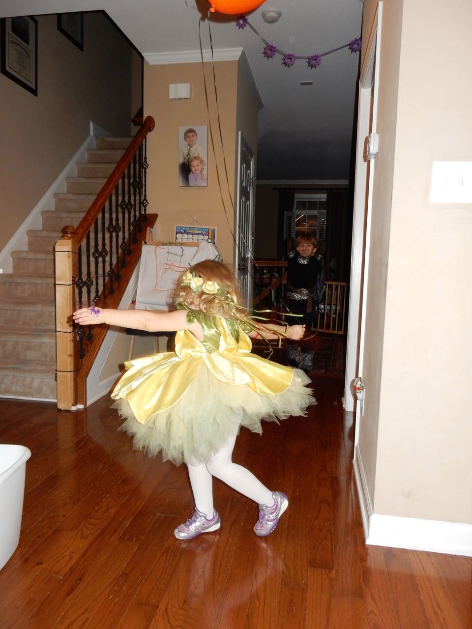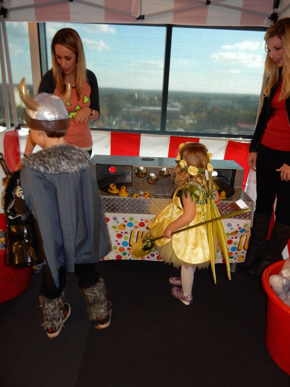 Tonight was the annual Red Hat family Halloween party! Brandon brought the kids to the tower and we got them ready to head inside. They look pretty fantastic, don’t they? Brian makes a fierce Viking, and Kendall makes the most beautiful buttercup fairy! Once we were ready, we headed in for the main event, and a wild time was had by all. It’s fairly chaotic and crowded, but the kids had fun playing silly carnival games, getting candy and prizes, and taking a tour through the haunted house. Both kids got glitter tattoos, and Brian even got a rather hilarious mustache and goatee attempt from the face-painting lady (to be fair, she usually does fantasy animals, realism is not her jam.) Kendall loved getting the plush monster-ball prizes, she had one of every color and called them “my babies!!” We went to the story time hoping for a bit of a calming break, but of course, Brandon and Brian both got called up to participate in the “there’s a giant bug in your pants!” dance (predictably done to Yakety Sax.) Brian did get a signed book for his participation. We stayed until they were closing things down once again, and then headed home. We had all the ingredients to make our own pizza from our Produce Box, so we had fun assembling that (and eating it, of course!) I had some more pumpkin carving to do, including making a Lego girl face at Kendall’s request. That kept me occupied past the kids’ bedtime, but I’m sure they’ll be happy with the result. Brandon discovered we have a cool spider living in our doorframe as he brought the pumpkins in.
