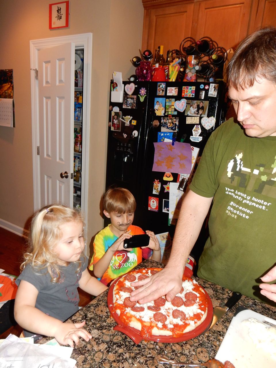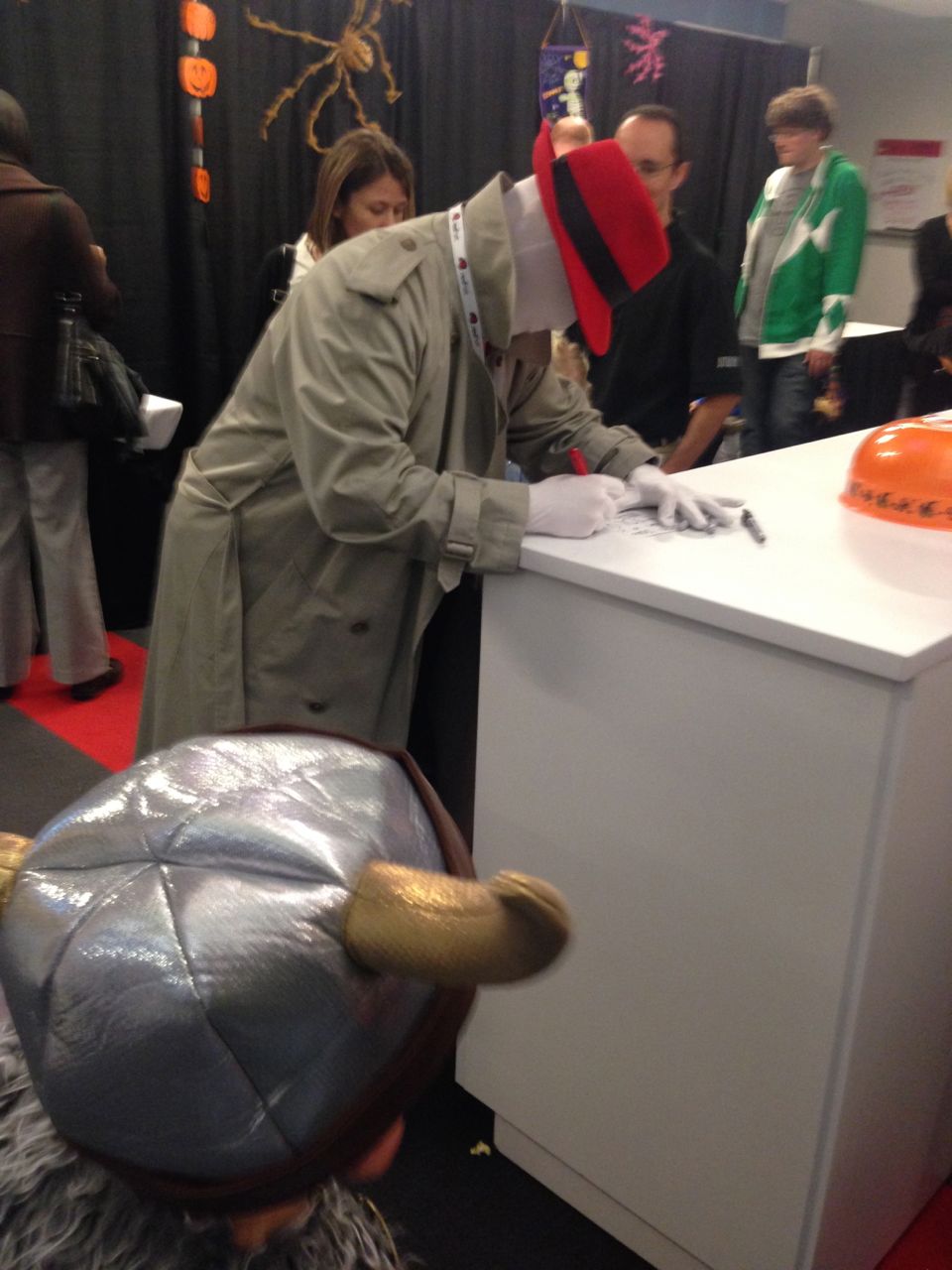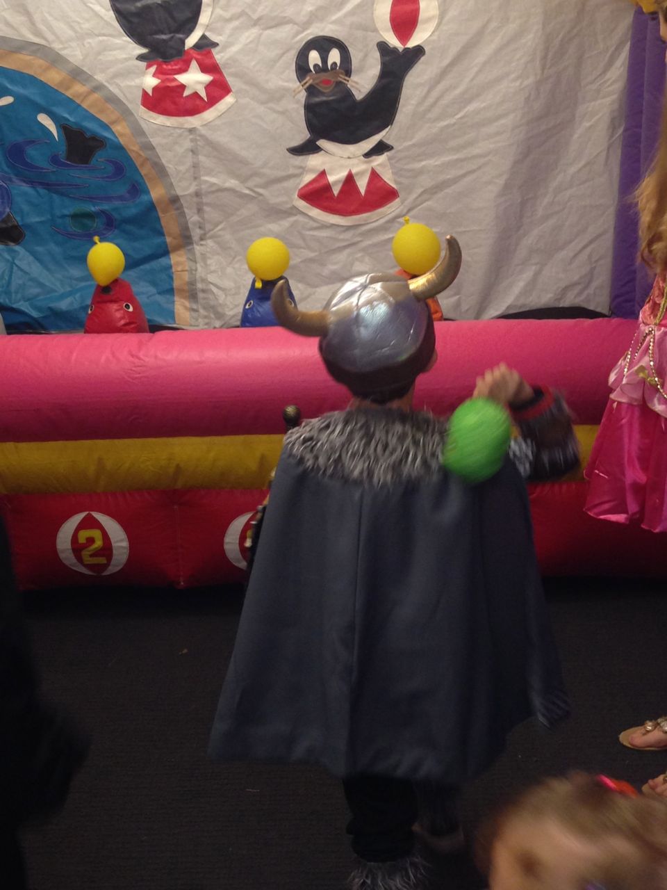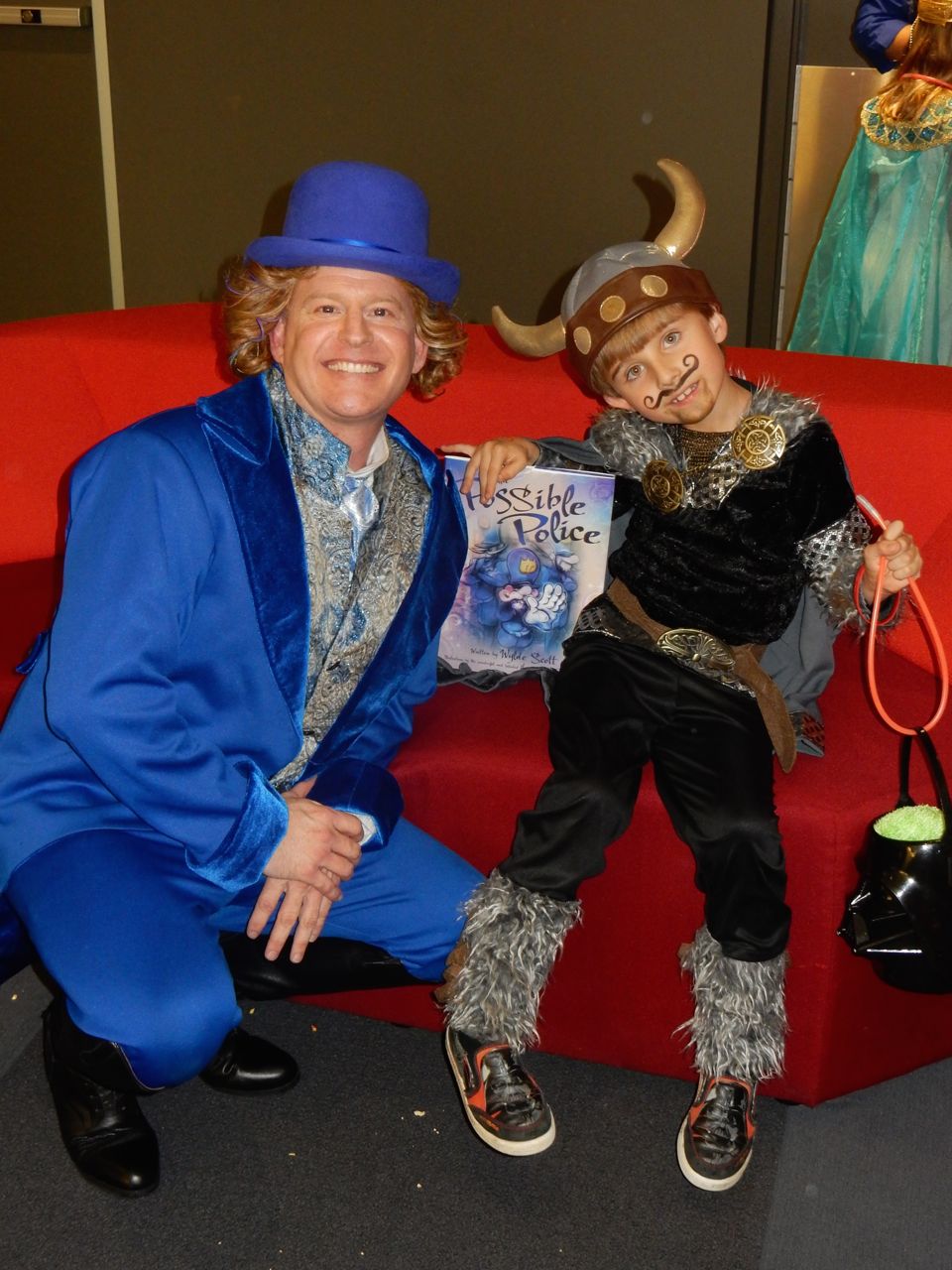 Tonight was the annual Red Hat family Halloween party! Brandon brought the kids to the tower and we got them ready to head inside. They look pretty fantastic, don’t they? Brian makes a fierce Viking, and Kendall makes the most beautiful buttercup fairy! Once we were ready, we headed in for the main event, and a wild time was had by all. It’s fairly chaotic and crowded, but the kids had fun playing silly carnival games, getting candy and prizes, and taking a tour through the haunted house. Both kids got glitter tattoos, and Brian even got a rather hilarious mustache and goatee attempt from the face-painting lady (to be fair, she usually does fantasy animals, realism is not her jam.) Kendall loved getting the plush monster-ball prizes, she had one of every color and called them “my babies!!” We went to the story time hoping for a bit of a calming break, but of course, Brandon and Brian both got called up to participate in the “there’s a giant bug in your pants!” dance (predictably done to Yakety Sax.) Brian did get a signed book for his participation. We stayed until they were closing things down once again, and then headed home. We had all the ingredients to make our own pizza from our Produce Box, so we had fun assembling that (and eating it, of course!) I had some more pumpkin carving to do, including making a Lego girl face at Kendall’s request. That kept me occupied past the kids’ bedtime, but I’m sure they’ll be happy with the result. Brandon discovered we have a cool spider living in our doorframe as he brought the pumpkins in.