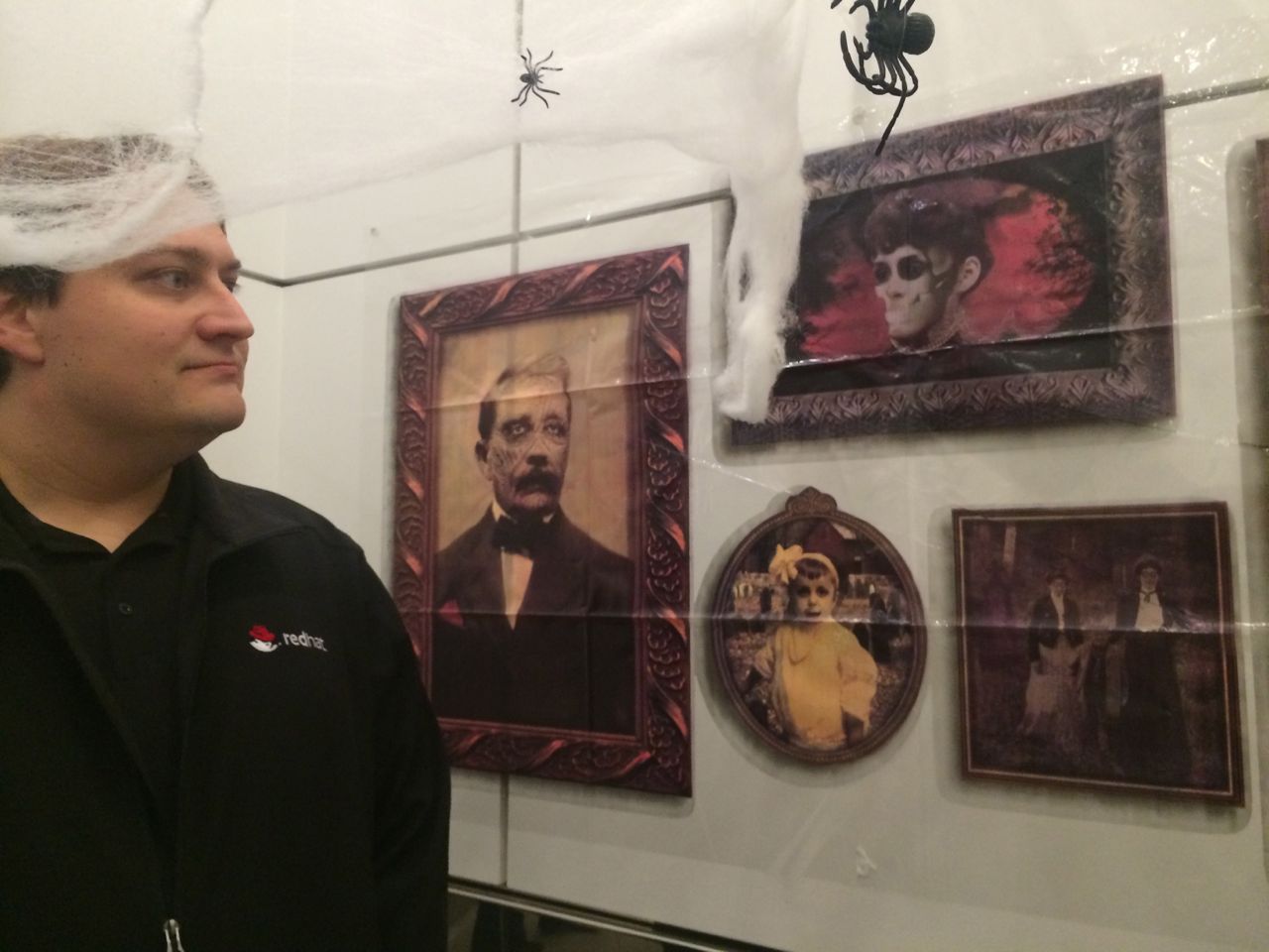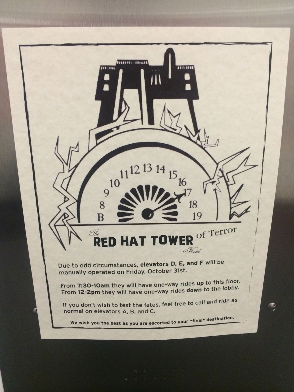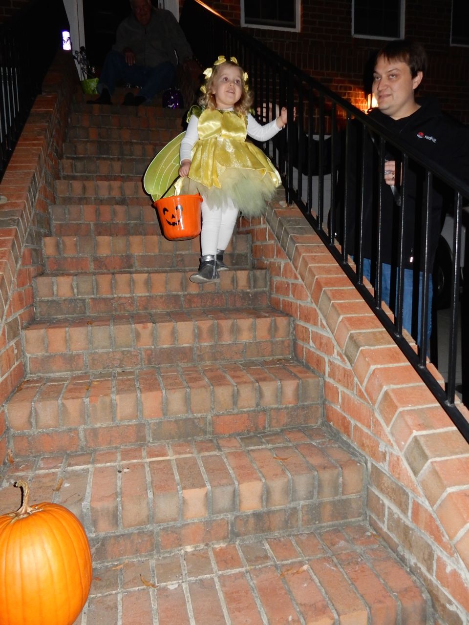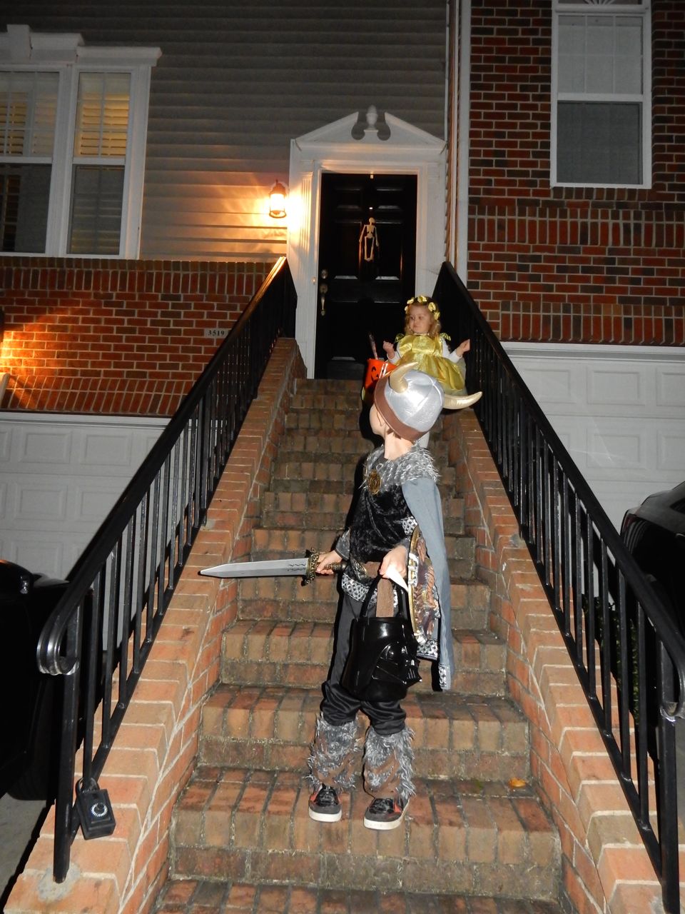 It’s Halloween! Still one of my favorite holidays, even if I’m not doing the dressing up anymore. 😉 Lucky for us, Halloween is a big deal at Red Hat and we always have one of our excellent parties. This year, they really pulled out the stops and had “haunted” elevators in the morning when we arrived, with decorations, sound effects, even including staff dressed up like creepy operators that took us to to our “final destination“–mwa-ha-ha!!! They were great. The party at the Lincoln Theater, the show, and costume contest were a lot of fun as usual (the free beer and leaving work early also helps.) We bugged out after the official events were over, and enjoyed playing hooky and having some time for ourselves before we had to pick up the kids! Once we did, we got everyone dressed and took to the neighborhood to play trick-or-treat! It was sort of hit-or-miss, maybe half of the houses weren’t participating, but there were certainly enough folks passing out candy that the kids still got a pretty ridiculous haul of candy! Everyone thought our Buttercup Fairy and Viking were incredibly adorable. Back home, the kids dumped out their haul in their clubhouse, and Brian even sorted, counted, and catalogued every last piece of his candy, writing it all out on the piece of cardboard his sword and shield came on. We let them sample a pretty decent amount of their treats (and managed to sneak some for ourselves!) before finally calling it a night.