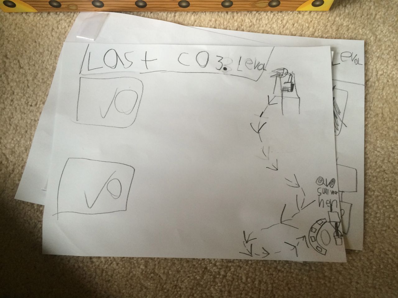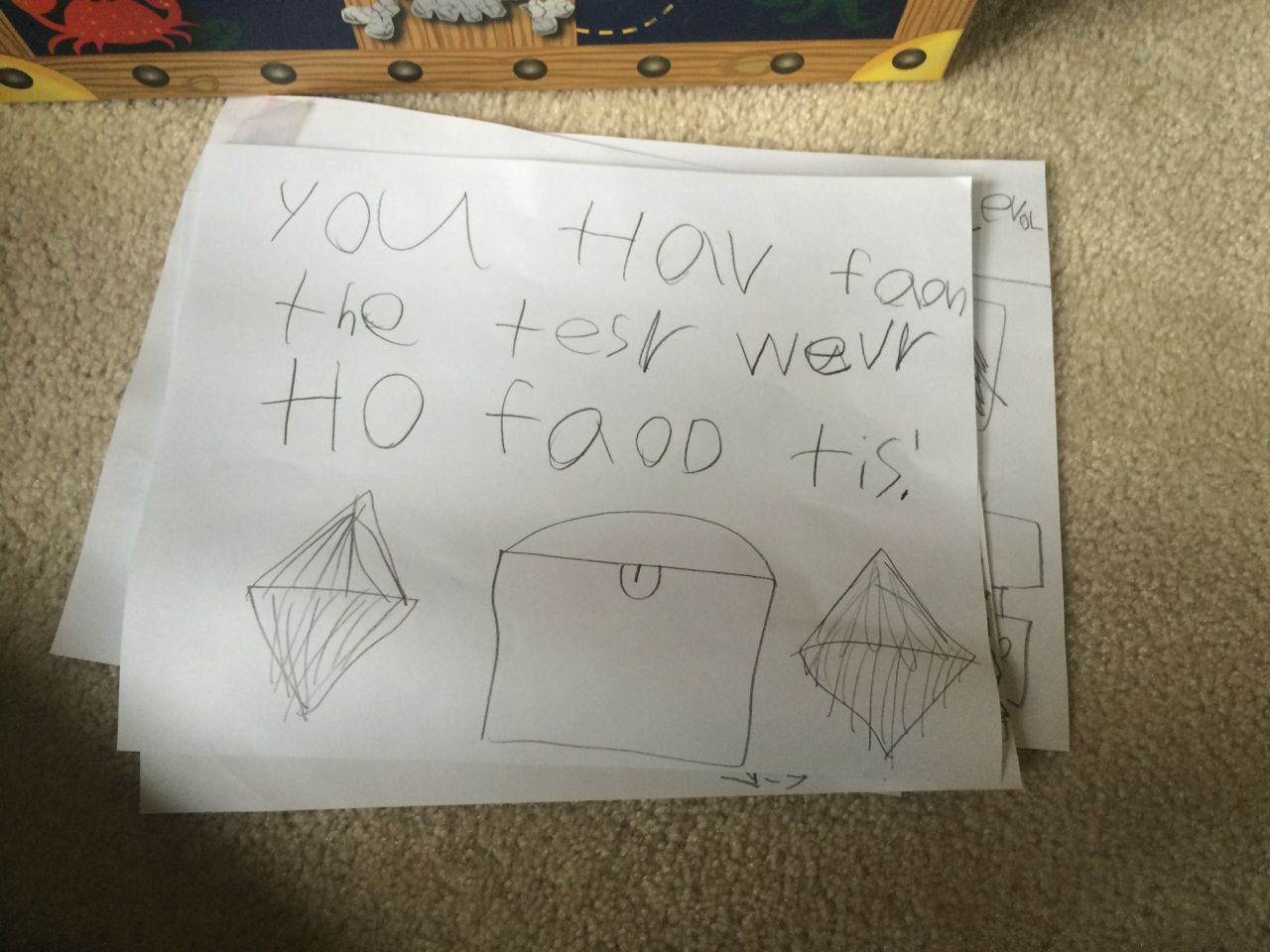 Over the weekend, we picked up some treasure boxes for the kids, thinking they’d keep things in them like their dress-up clothes, etc. Brian had other plans, however! He made a treasure hunt for us, complete with maps, and instructions that led us to.. further instructions. Eventually, we followed all of his maps and found the treasure–which was all of his yellow and gold-colored Halloween candy! Nice game, Brian. 🙂 Kendall celebrated Brandon’s trip to the grocery store by hugging her own kind of treasure–a brand-new big bottle of Hershey’s syrup! She loves to have a cup of chocolate milk after school.