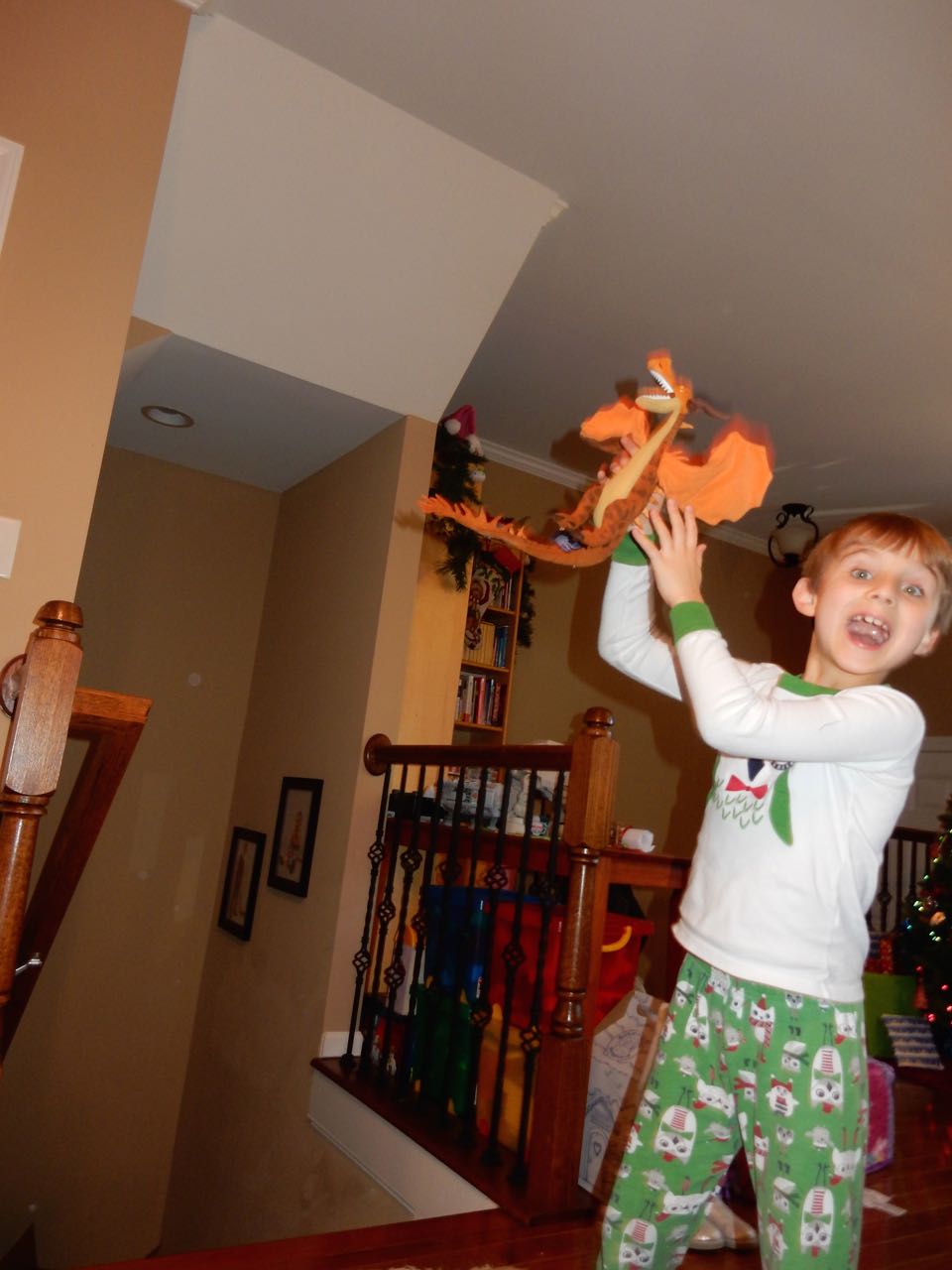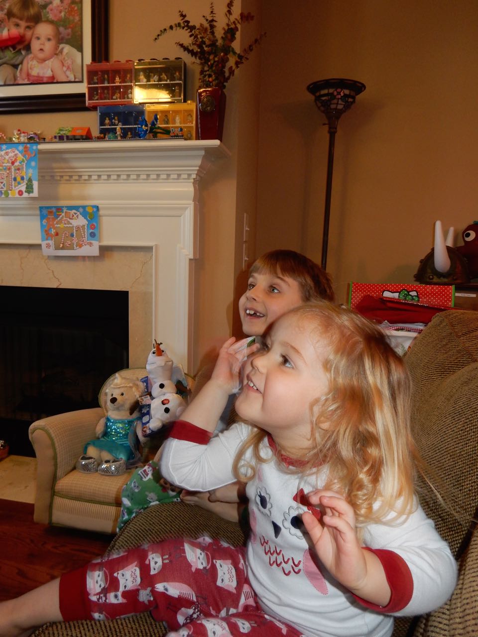 My dad’s been in the hospital lately, so we’re all really happy he could be home for Christmas. We made sure to bring lots of Christmas treats. When we arrived, Dad came right over to get a gingerbread cookie! That made me happy. The kids were excited to show him the Star Wars gingerbread they helped make. 🙂 I’d made some more teacakes for him as well. We also had some chocolate fruitcake for him from my mom–it’s been years since we’ve had it. (Thanks, Internet, for helping me find the recipe that had gone missing so long ago!) We shared a really special dinner together, enjoyed lots of treats, and the kids got even more presents–two amazing wooden play castles! A knight’s castle for Brian, and a princess castle for Kendall. Brian had asked me to put those on their wish lists so they could have castle-to-castle battles! They also got some castle dolls and knight figures, and wooden furniture as well. They had fun with their new toys until it was time to head to the airport to pick up Grandpa Roger!