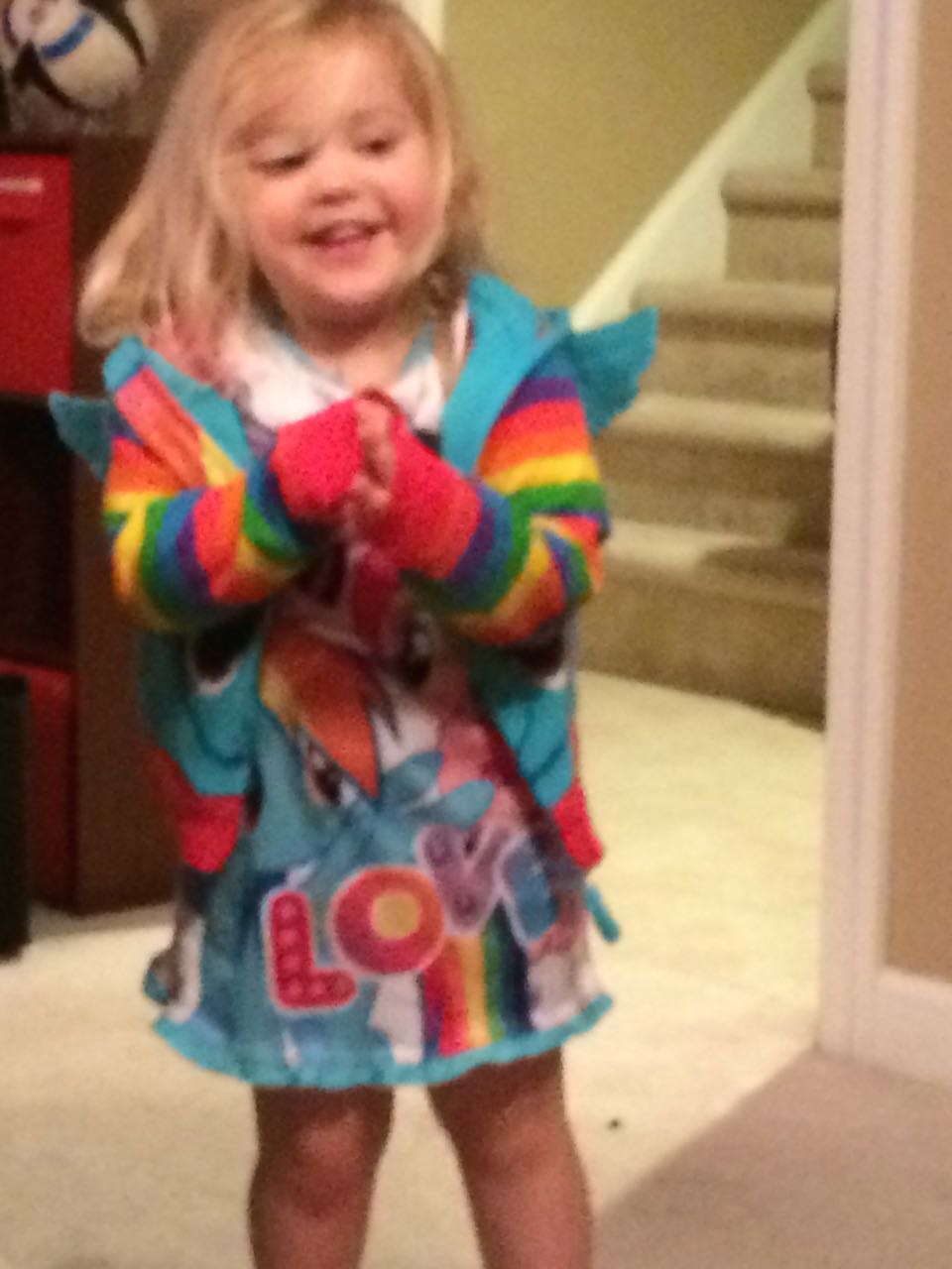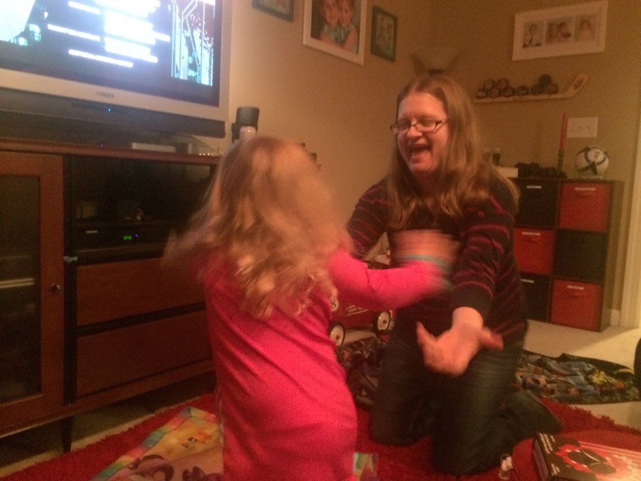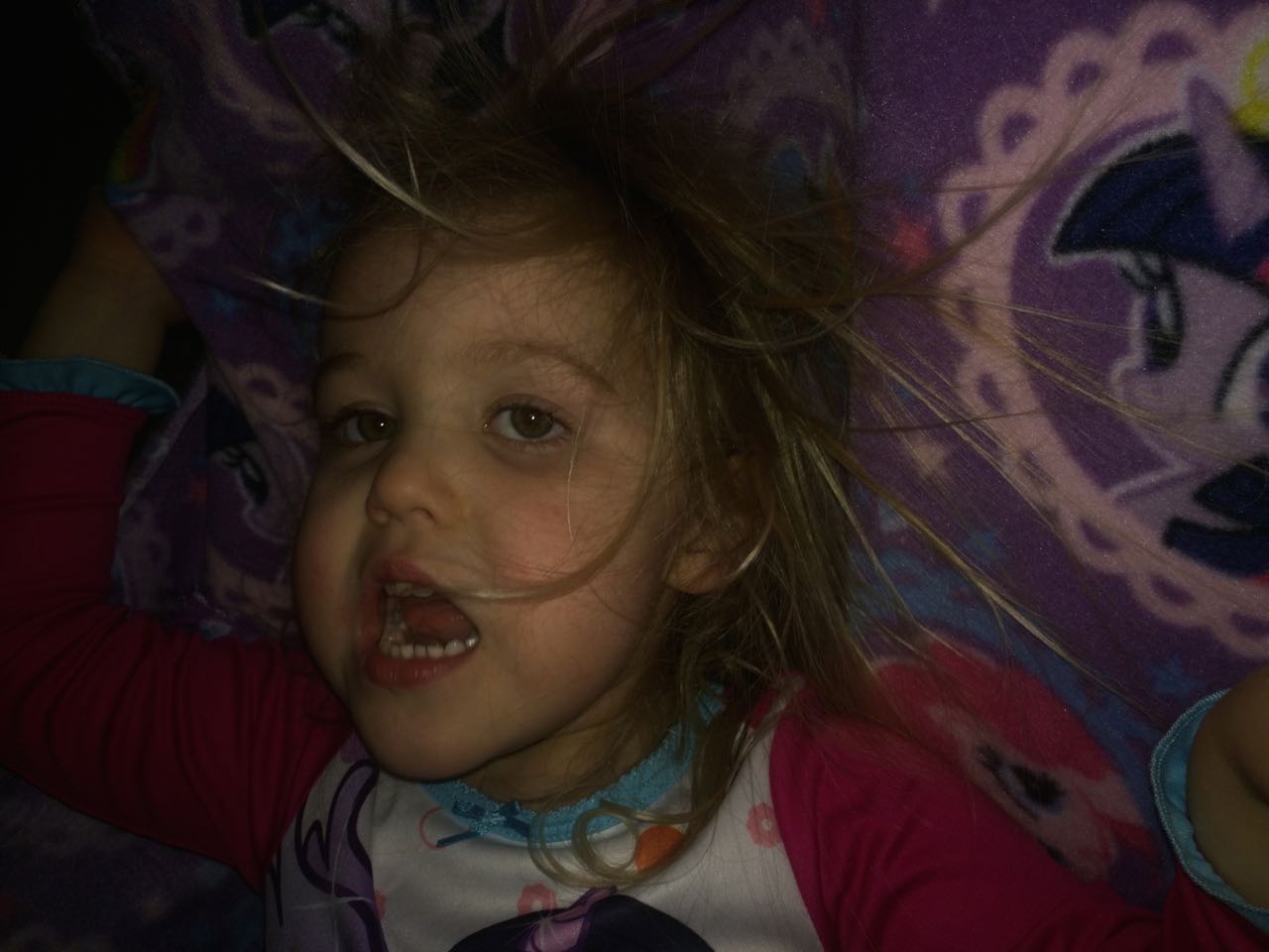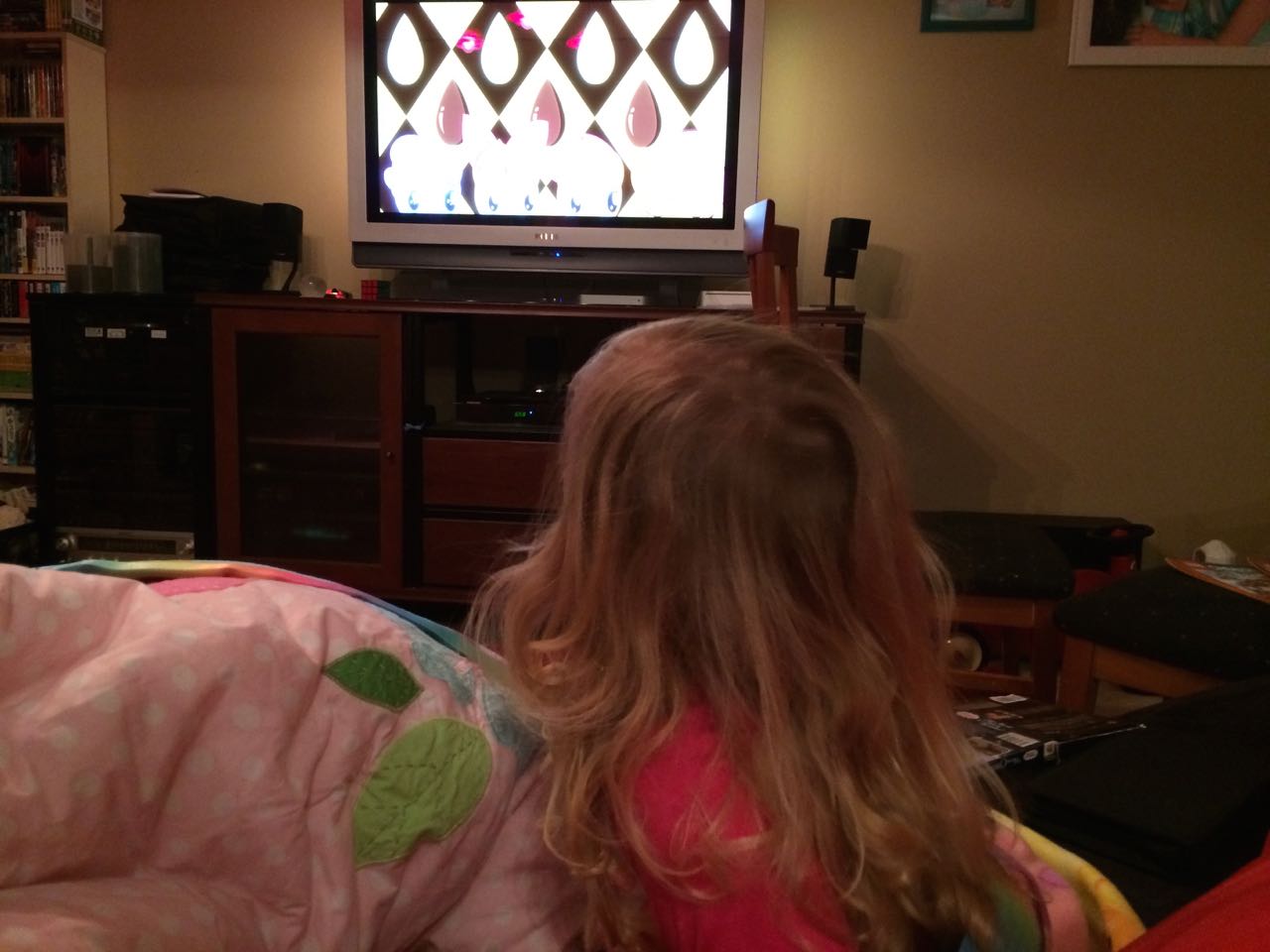 Tonight, I finished making a My Little Pony blanket for Kendall! I think she liked it a lot. My friend Jennie came over, and helped the kids make a blanket fort to play in! They entertained us playing hockey, playing Just Dance, and watching My Little Pony (they really loved the “Babs Seed” episode, and we all learned a little about how to deal with a bully). We decided to watch a movie together–“Wreck-It Ralph”! The kids brought out their sleeping bags and we had a fun evening, almost like a sleepover. Also included, a picture of Brian’s fingerprint-snowman ornament one more time before we pack it away until next year. I love how he made a snowman for each of us!