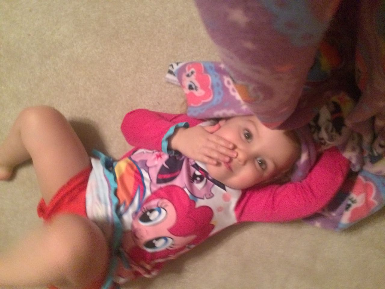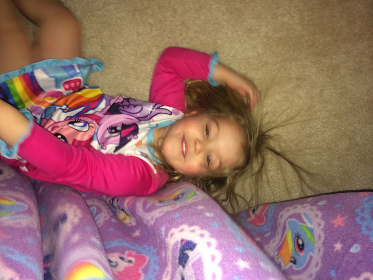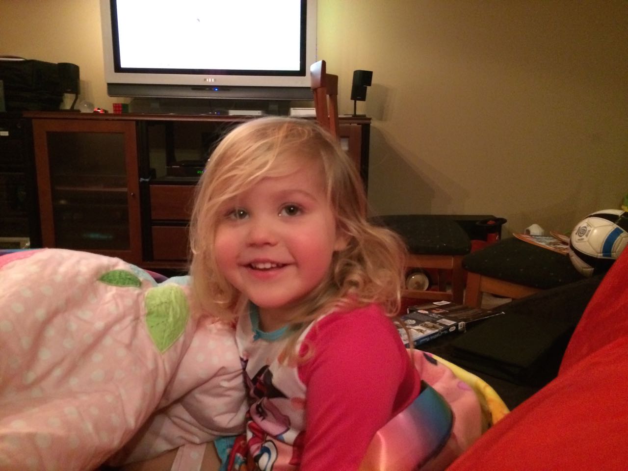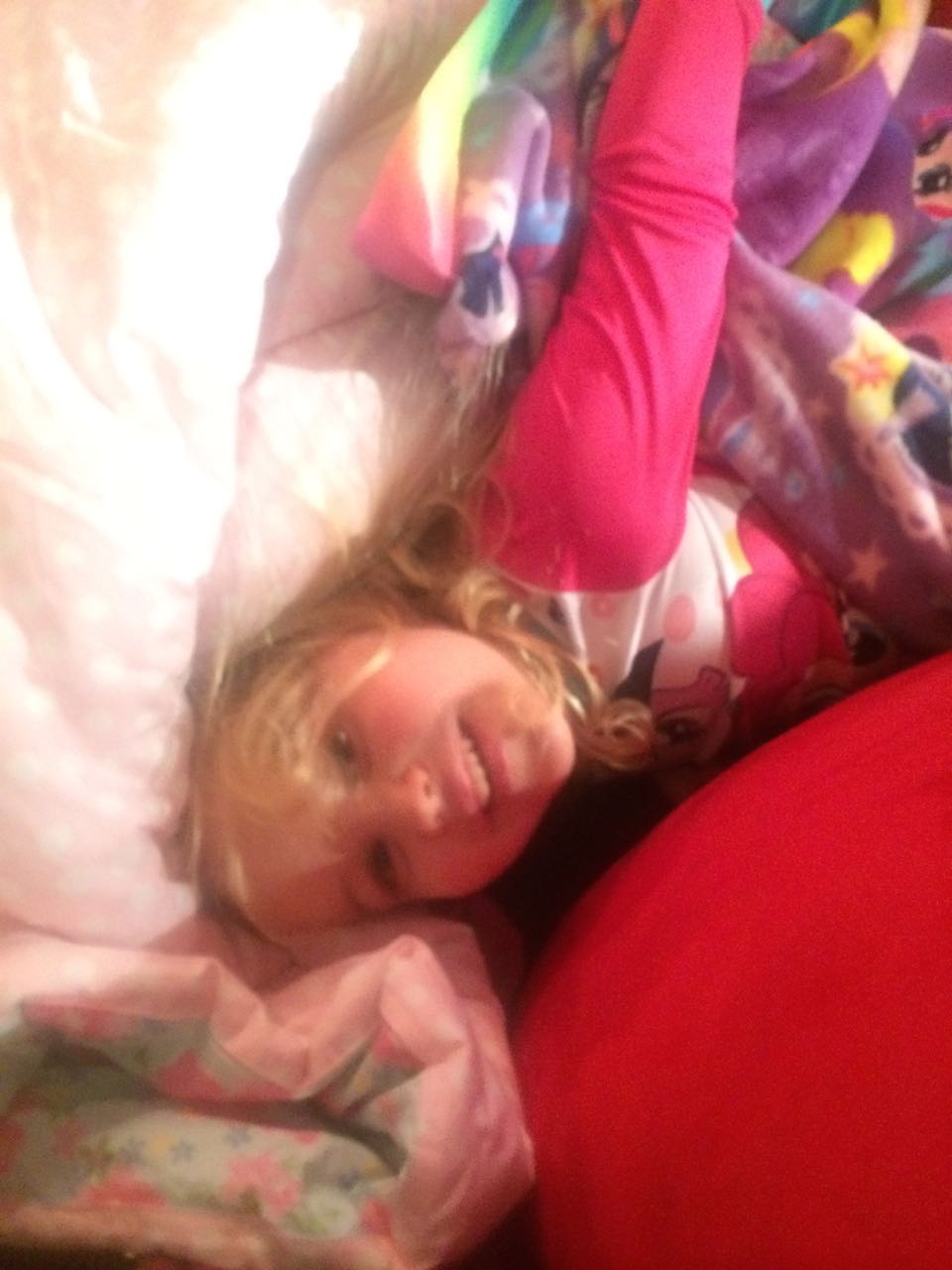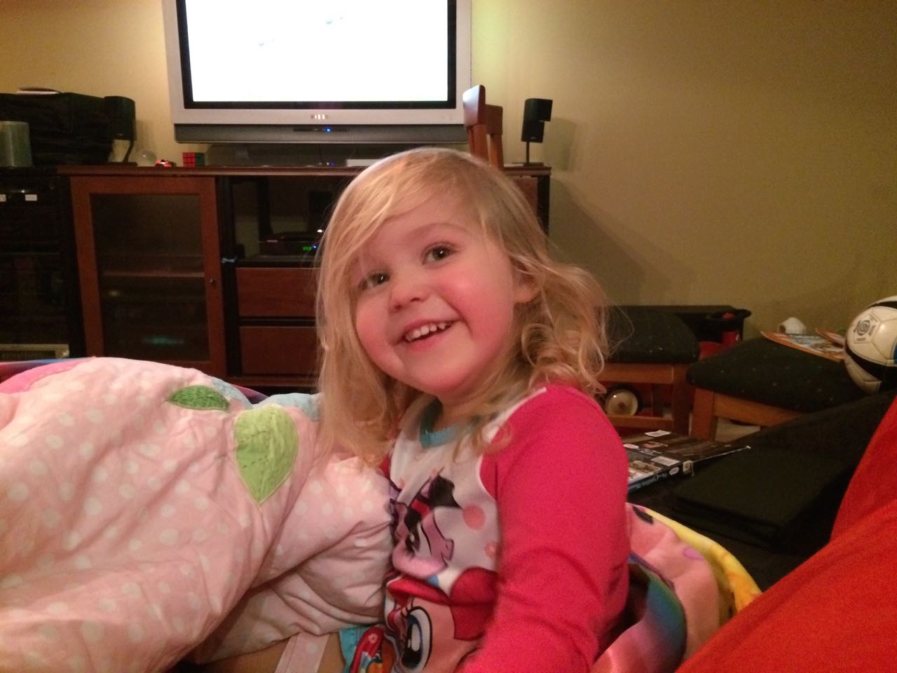 Tonight, I finished making a My Little Pony blanket for Kendall! I think she liked it a lot. My friend Jennie came over, and helped the kids make a blanket fort to play in! They entertained us playing hockey, playing Just Dance, and watching My Little Pony (they really loved the “Babs Seed” episode, and we all learned a little about how to deal with a bully). We decided to watch a movie together–“Wreck-It Ralph”! The kids brought out their sleeping bags and we had a fun evening, almost like a sleepover. Also included, a picture of Brian’s fingerprint-snowman ornament one more time before we pack it away until next year. I love how he made a snowman for each of us!