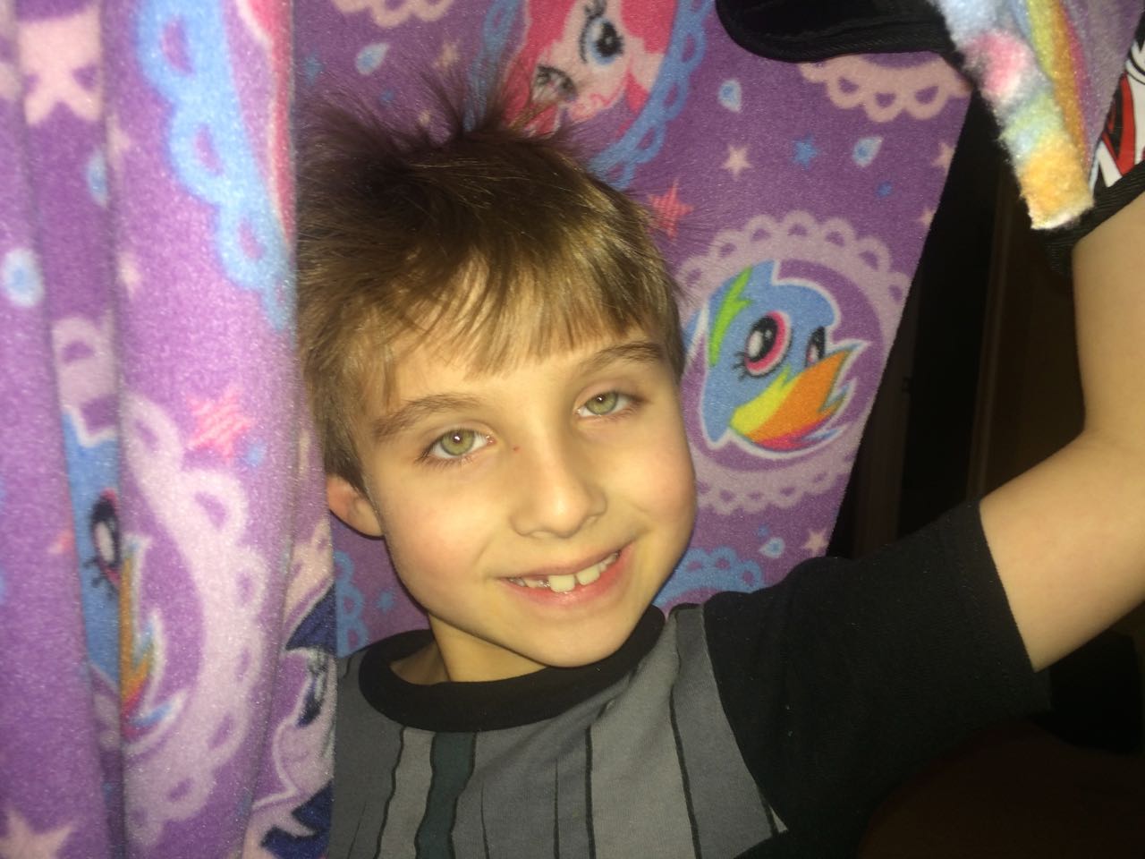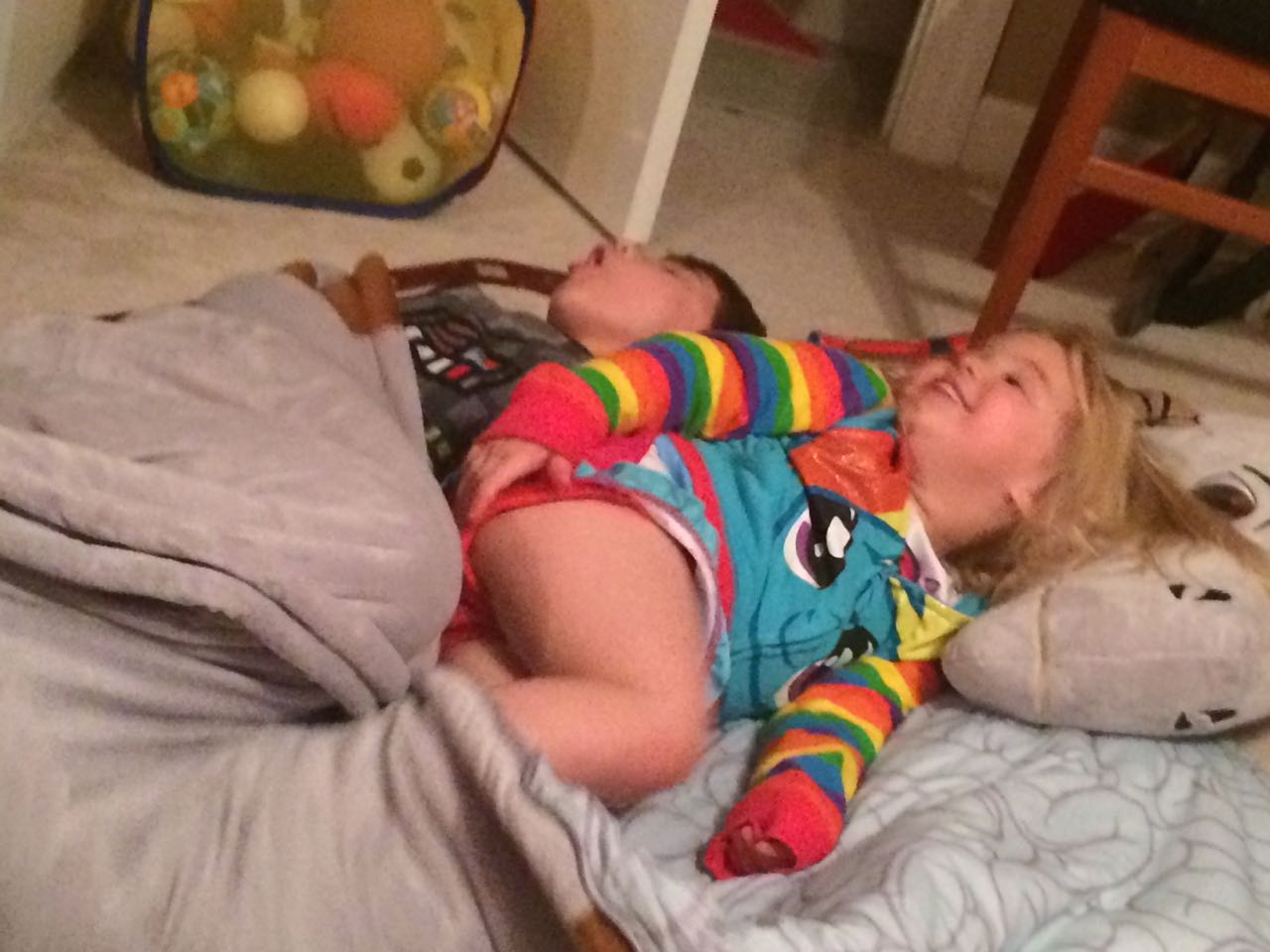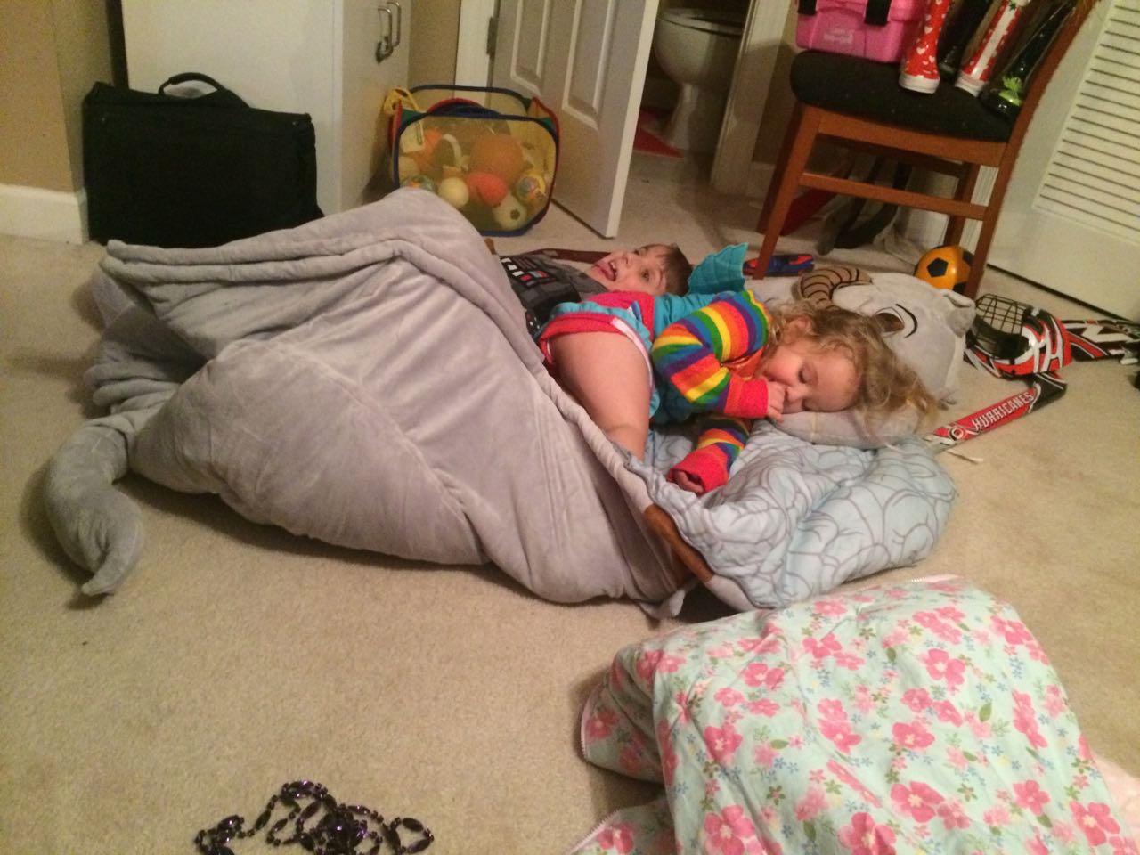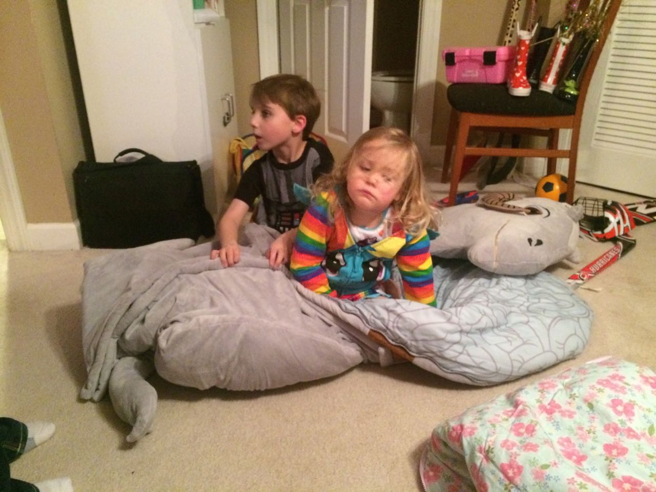 Tonight, I finished making a My Little Pony blanket for Kendall! I think she liked it a lot. My friend Jennie came over, and helped the kids make a blanket fort to play in! They entertained us playing hockey, playing Just Dance, and watching My Little Pony (they really loved the “Babs Seed” episode, and we all learned a little about how to deal with a bully). We decided to watch a movie together–“Wreck-It Ralph”! The kids brought out their sleeping bags and we had a fun evening, almost like a sleepover. Also included, a picture of Brian’s fingerprint-snowman ornament one more time before we pack it away until next year. I love how he made a snowman for each of us!