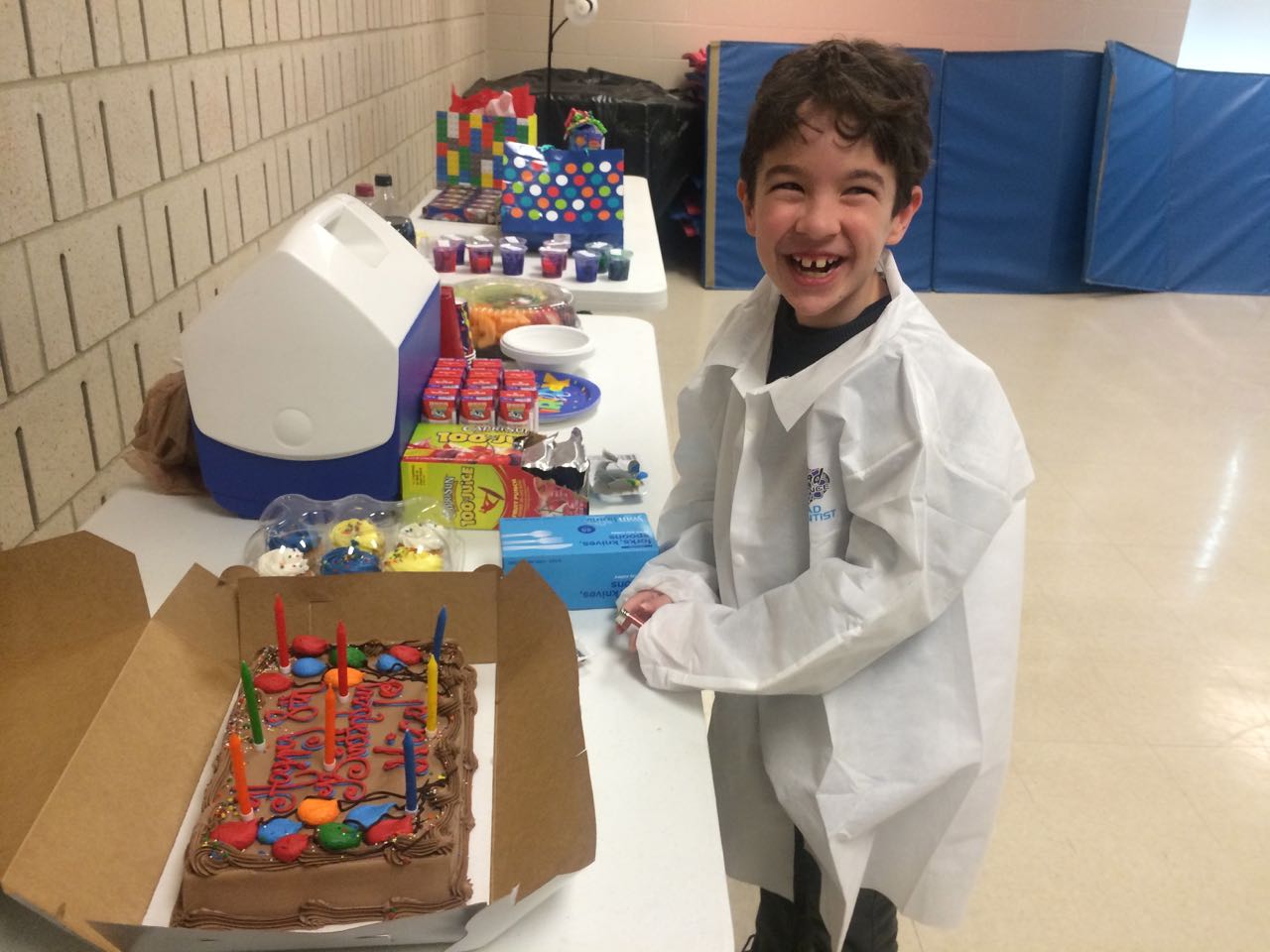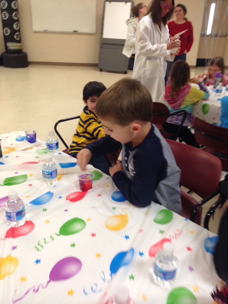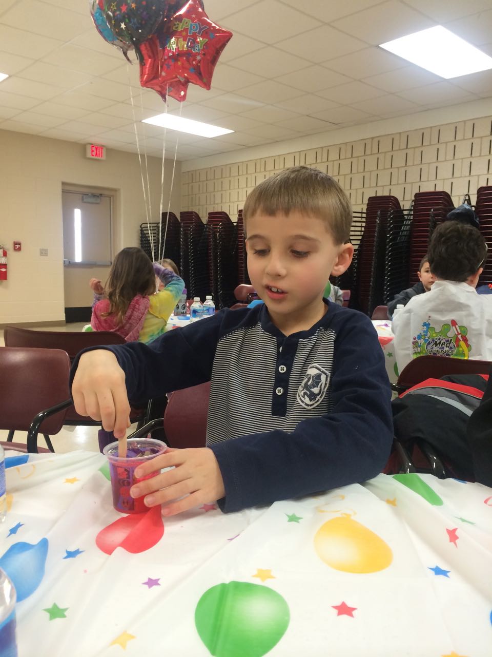 Another busy Saturday! Today started out bright and early with Kendall’s swimming lesson. Then, Brian had a haircut (I think they went extra short this time..! But he seems okay with it.) This afternoon, we headed over to Cary for Nico’s Mad Science birthday party. We were happy to see the Orazis, and the kids had a blast running around the community center. Soon, it was time to settle down for some science fun, and we all enjoyed the presentation and cool science tricks. The kids made slime, had cake, and Kendall even got a special party favor just for her–a Rarity pony! Afterward, the kids had to put up with me moving my desk (again) over at Red Hat Tower–but they had snacks, orange juice, paper and pens, and a pony to play with, so they survived. 🙂