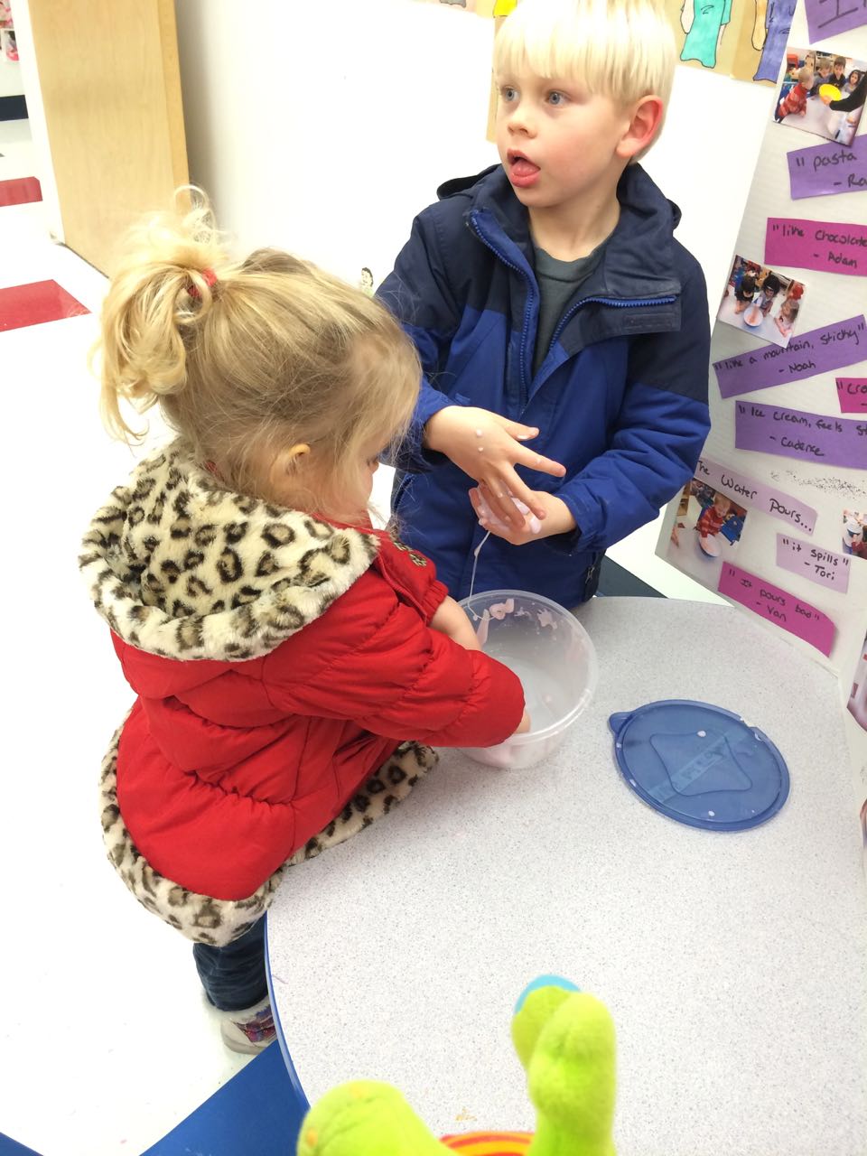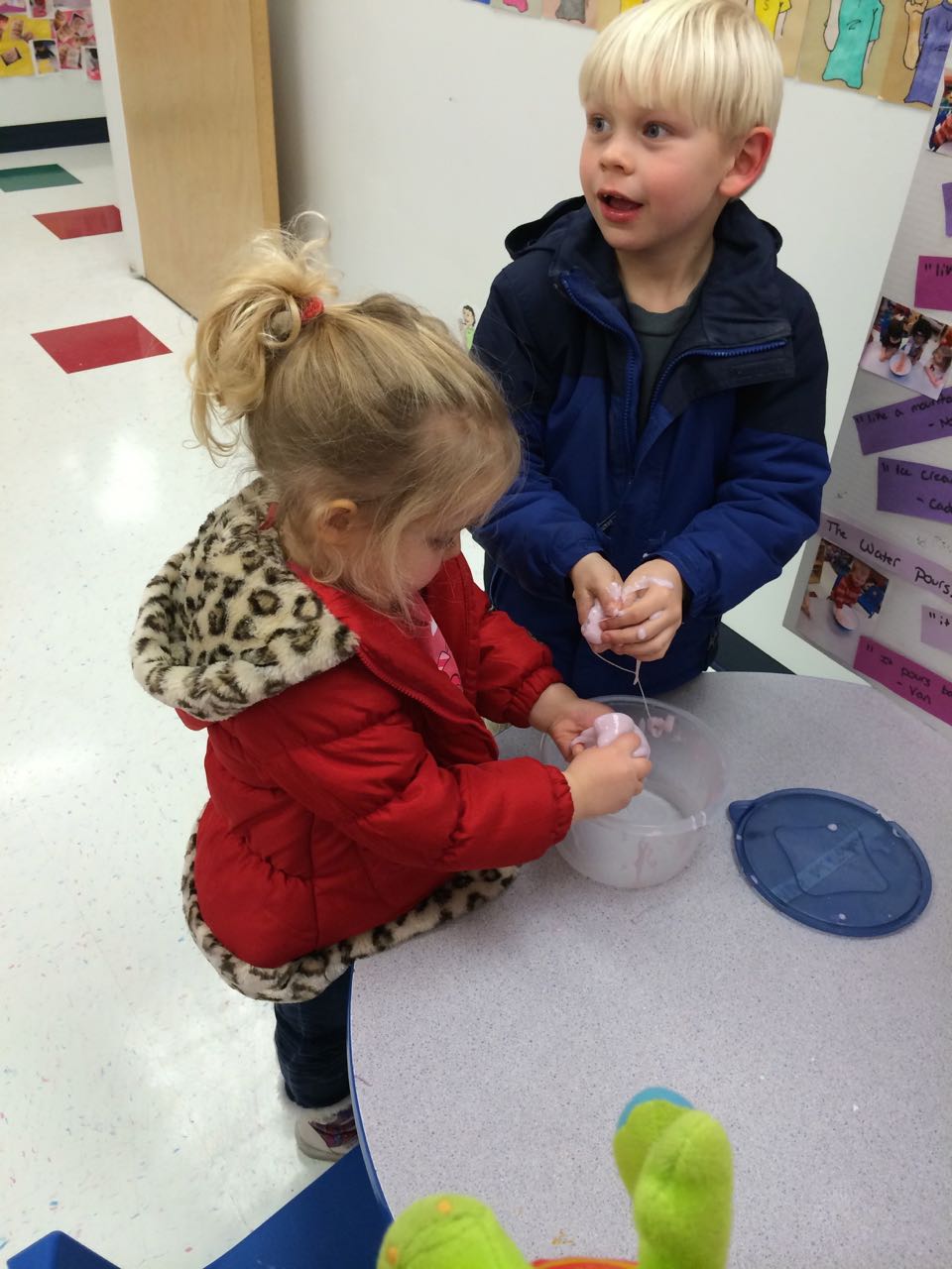 Goddard School had a science fair this evening! We enjoyed some snacks and then visited each classroom to see what they had made. The kids loved the Creamy Coconut Play-Doh and the slime in Kendall’s class the best! Kendall wanted to wash her hands pretty soon after playing with the slime. 😉