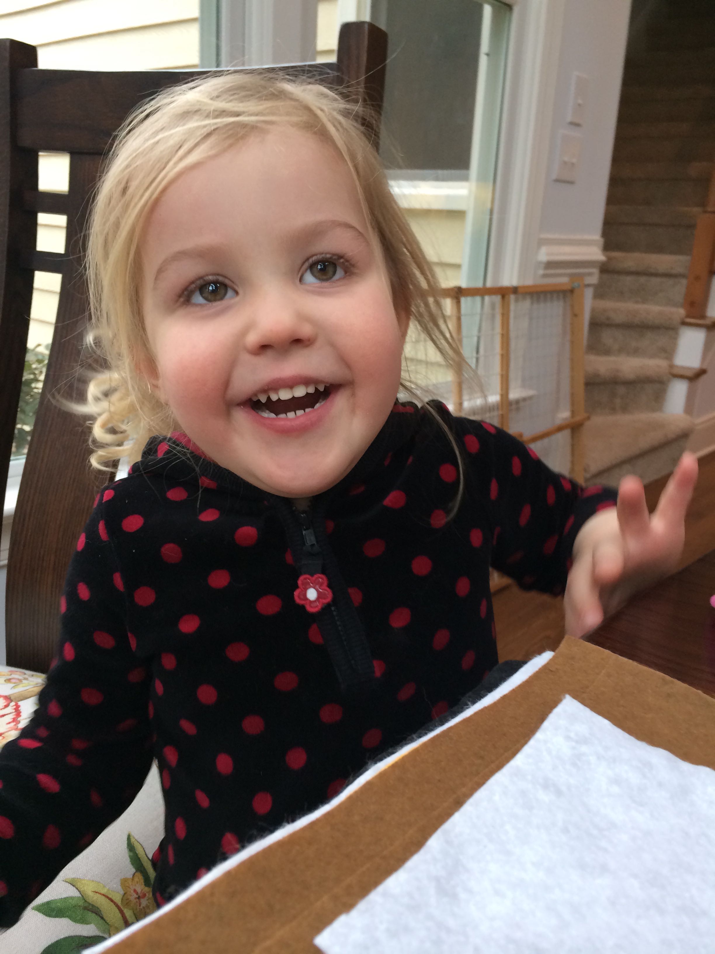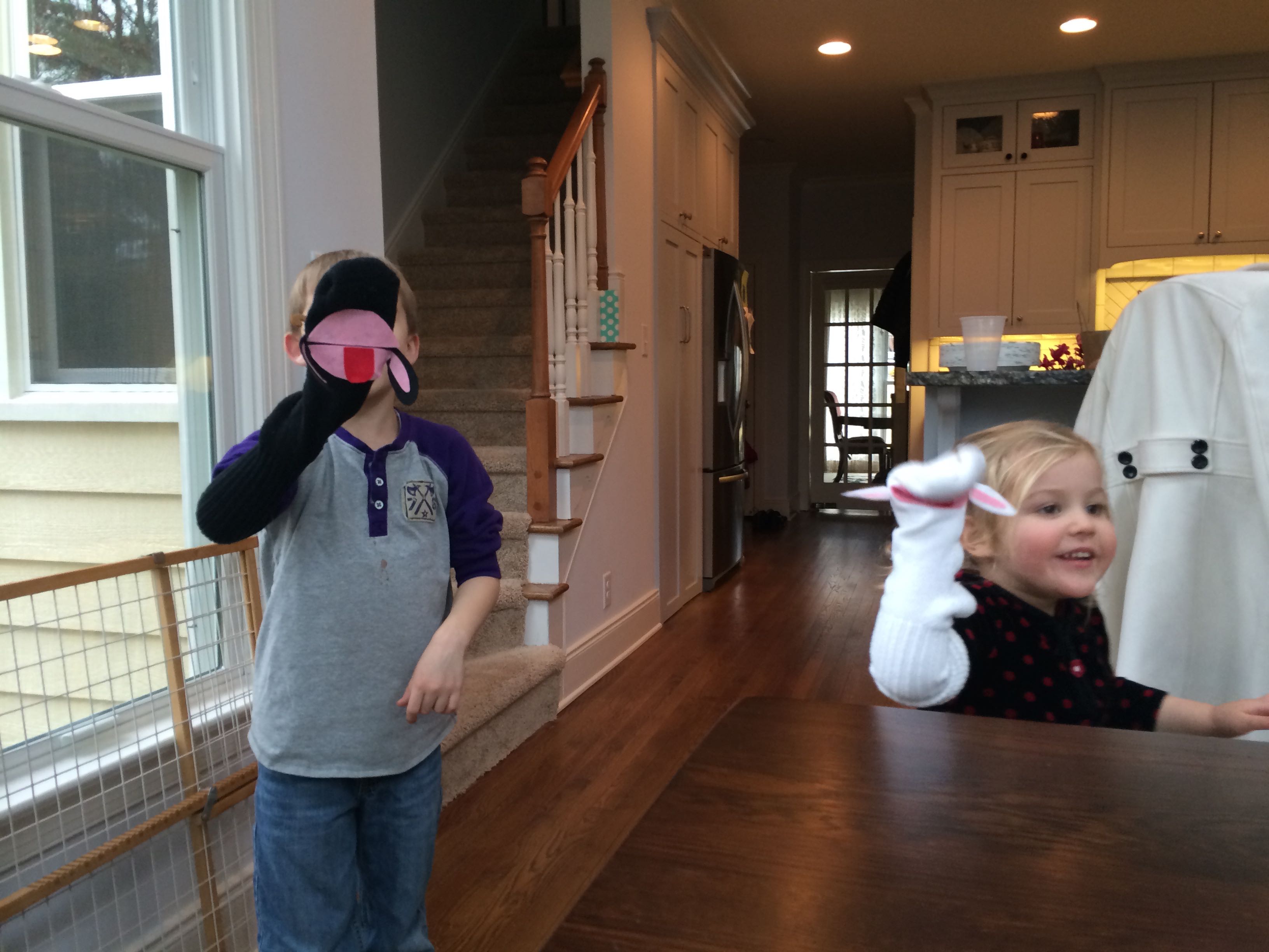 This morning, we checked out of our hotel and had a nice brunch before heading to Sue’s. The kids were excited to see us and tell us all about their sleepover. At Sue’s, I finished putting together the sheep puppets we’d been working on. The kids watched Pee-Wee’s Big Adventure and entertained us all before our family dinner together. Marci had cupcakes for us, in Superbowl team colors!