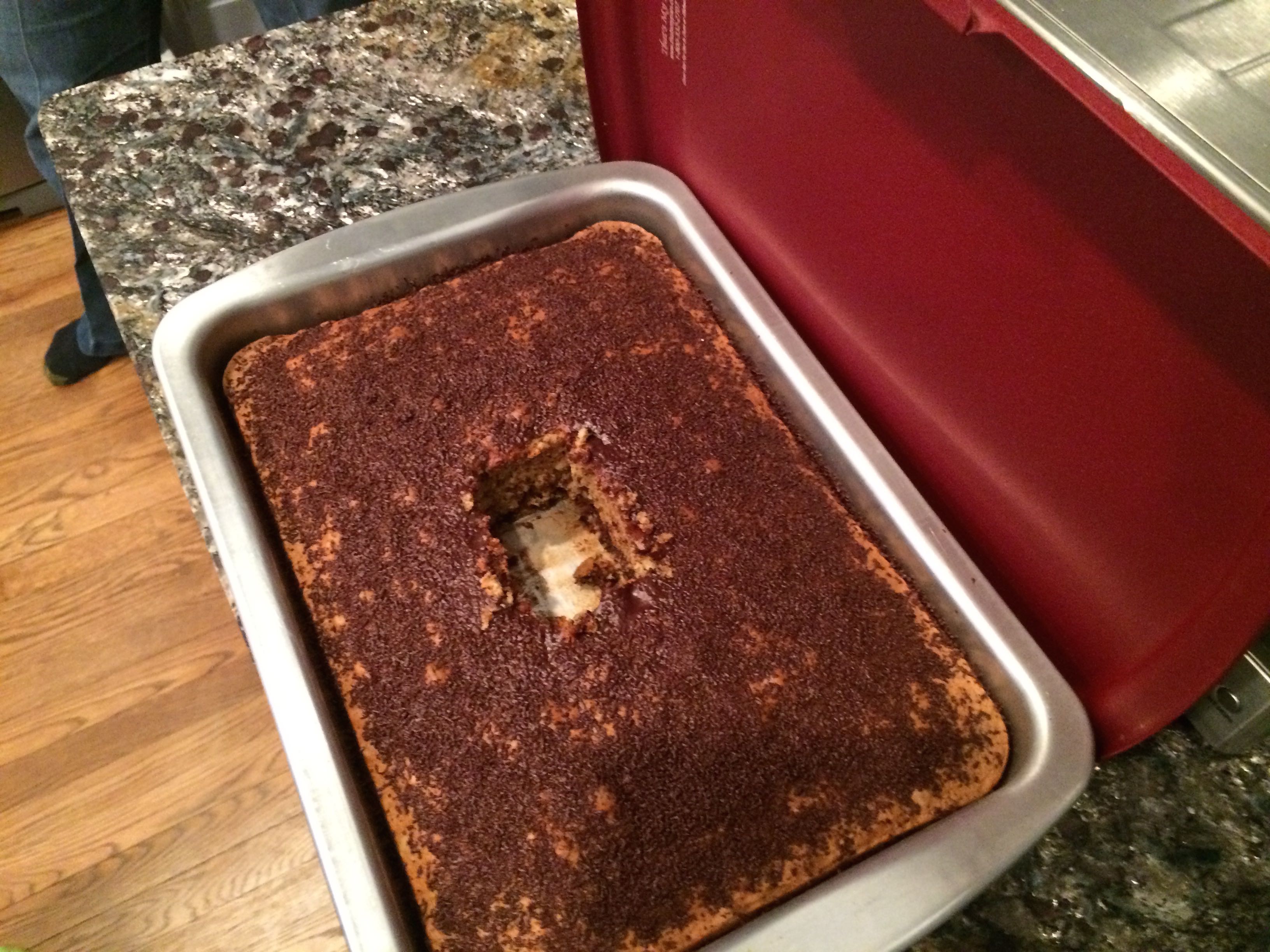 I managed to chase down an iPod classic and dock like my dad had on eBay, and loaded it up with lots of fun stuff so we can enjoy music in our family room. The kids think this is great! The way they skip tracks so quickly, though, I’m questioning the wisdom of putting this in reach of them.. 😉 But, maybe it’ll provide lots of teachable moments about sharing and patience? Tonight we had Sue’s famous chocolate chip cake for dessert at our family dinner, and she shared with us a family story about quite literally taking a piece from the middle! The kids thought this was great, and we all had quite a laugh (and lots of delicious cake). 🙂