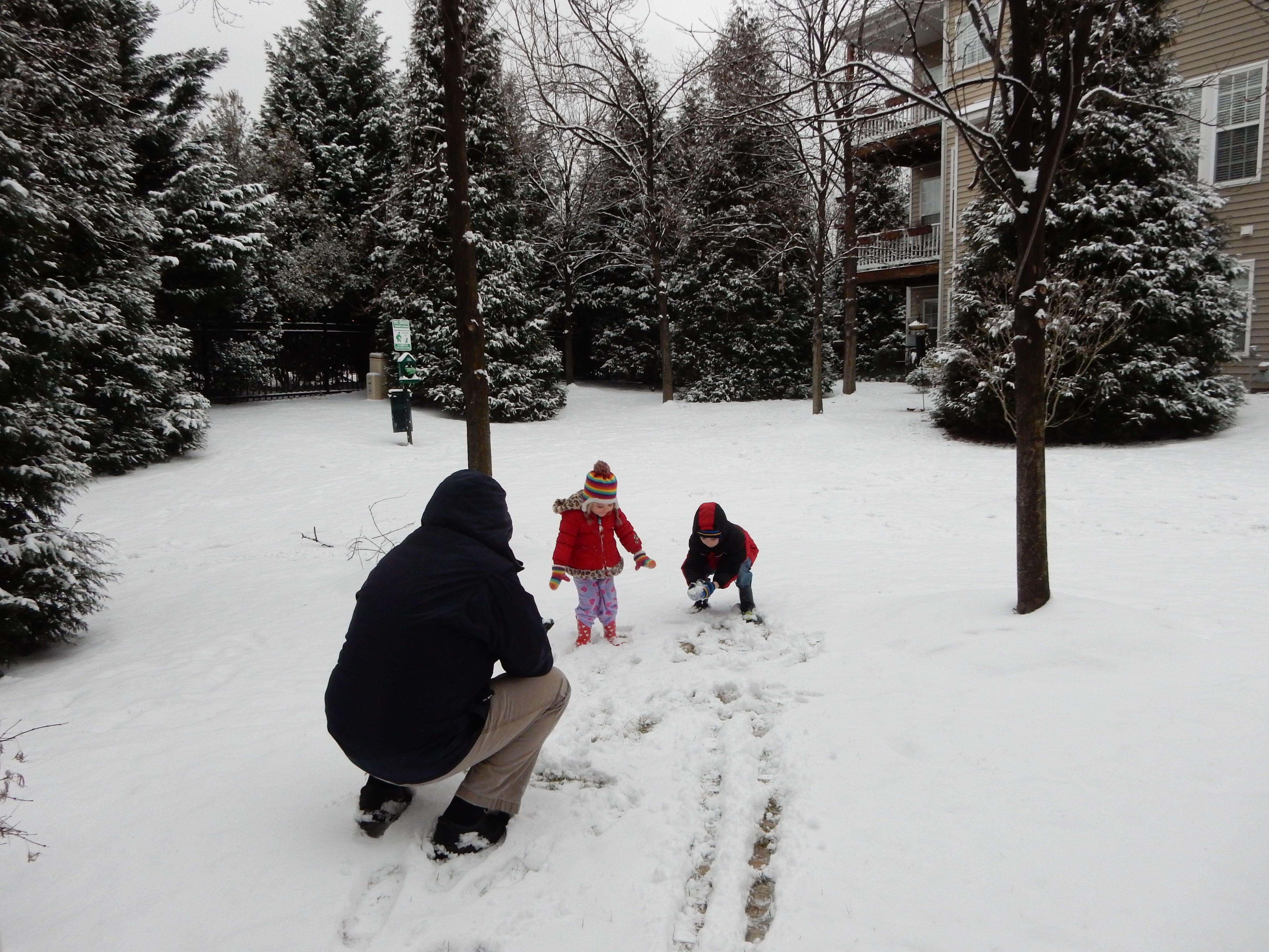 Sonofa… Here we are, stuck at home, not even a week removed from the last batch of snow days. This time, at least, there is an appreciable amount of snow to play in. It’s really dry snow, though, so it’s fairly unsatisfying for the kids, who want to make snowballs and things. About the best we could do was let Brian make snow angels, and Brandon helped Kendall make a snow dinosaur. You can tell how beat down we are by the end of the day–Brandon didn’t even protest when the kids made him all fancy and took artistic black-and-white photos of him. 😉