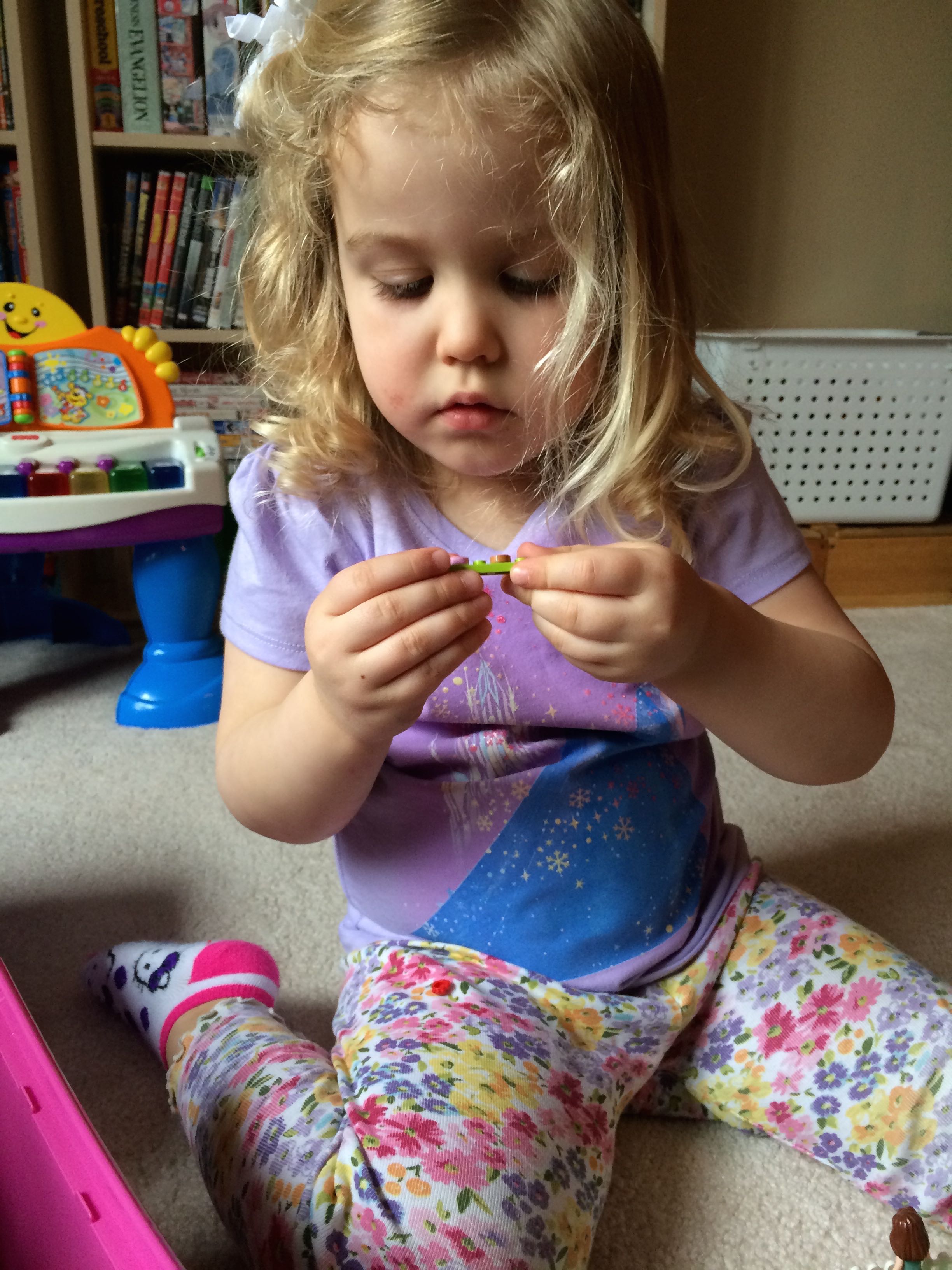 Another busy day!  We started off with a building trip to Lowes for Brian.  Later, Brian had a hockey practice.  Back at home, we spent the afternoon playing Legos and dancing along to the the My Little Pony soundtrack (Brian does a mean squaredance/breakdance mashup thing in the video below!)  Brian wasn’t feeling like going to the hockey game tonight, so Kendall got to have a special night out with Daddy at the game!  Brian and I stayed home and made s’mores.  🙂