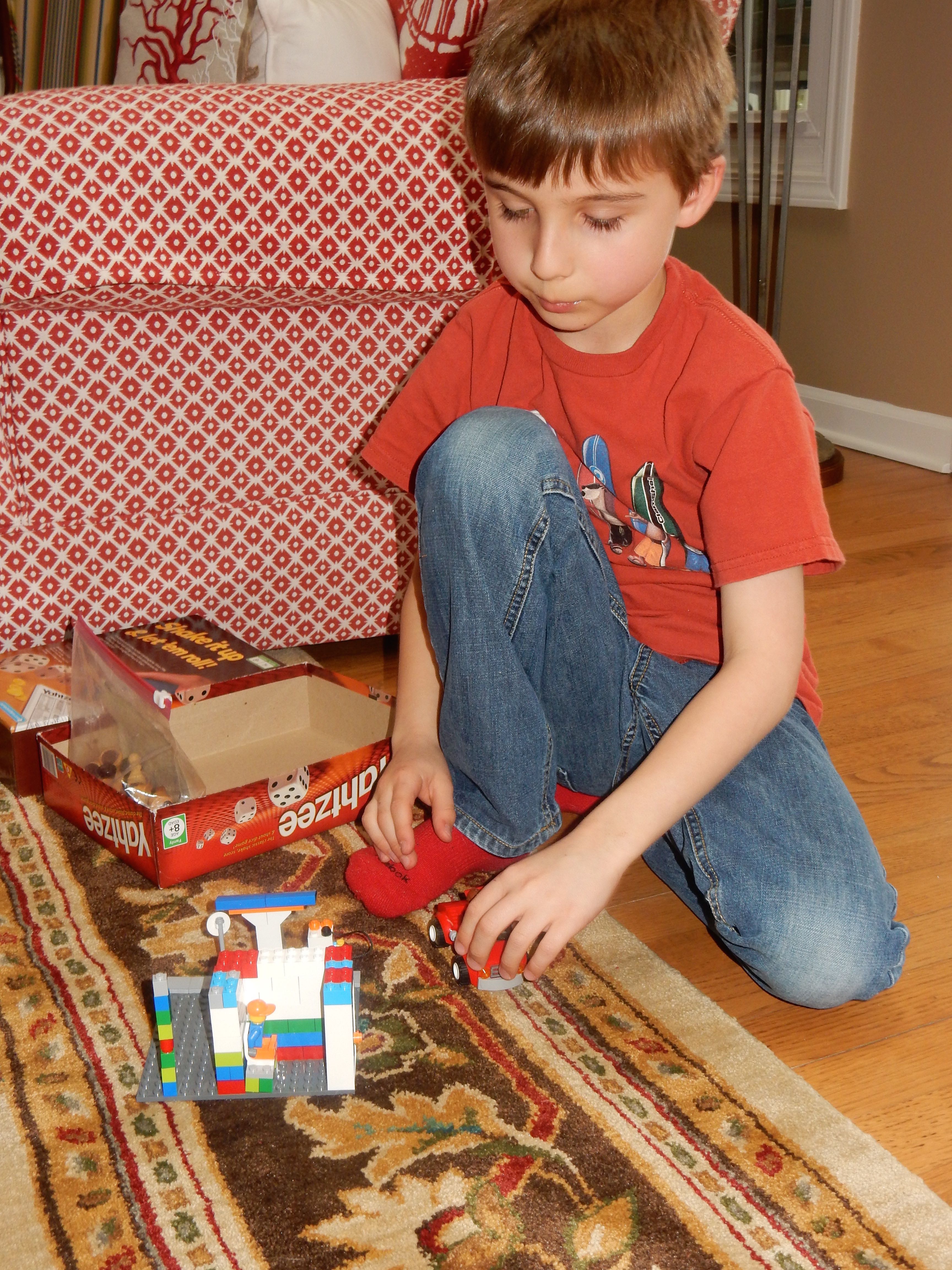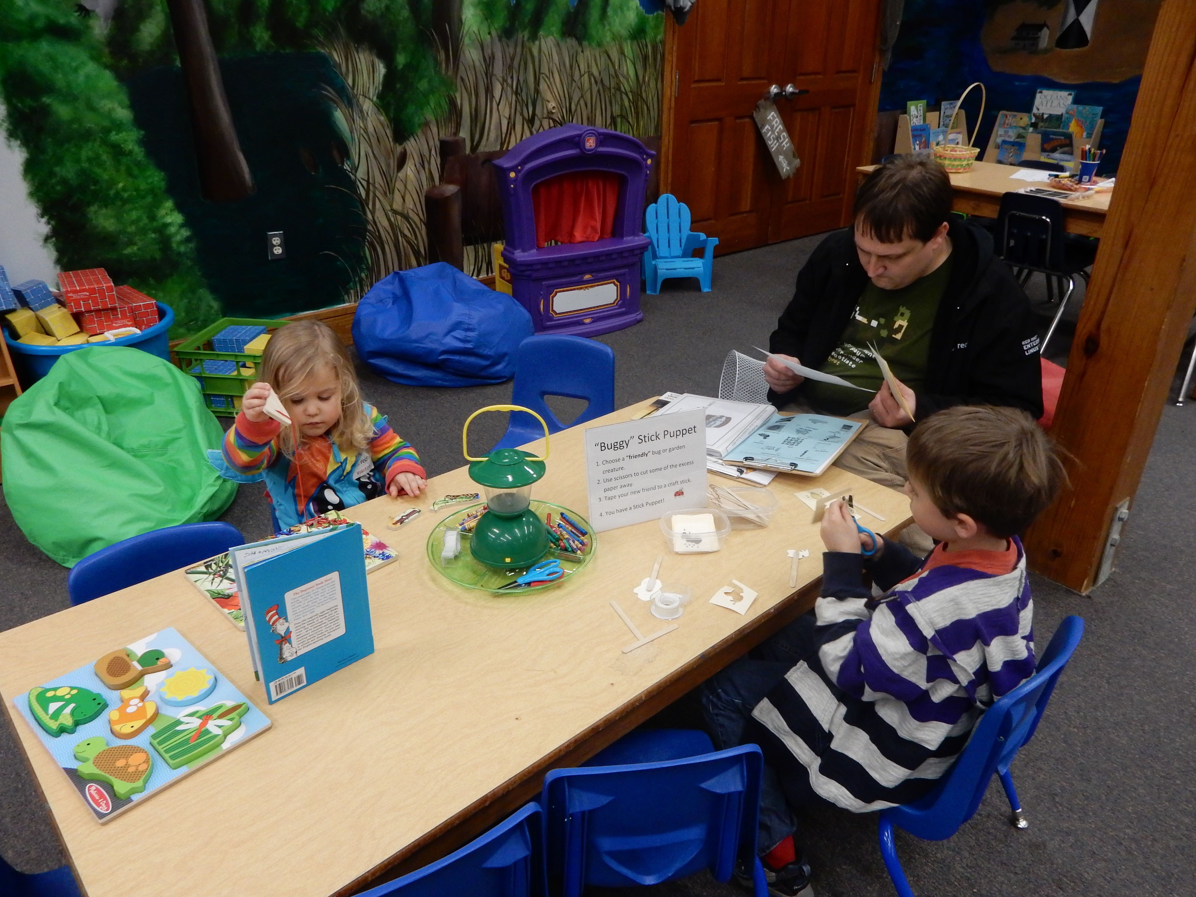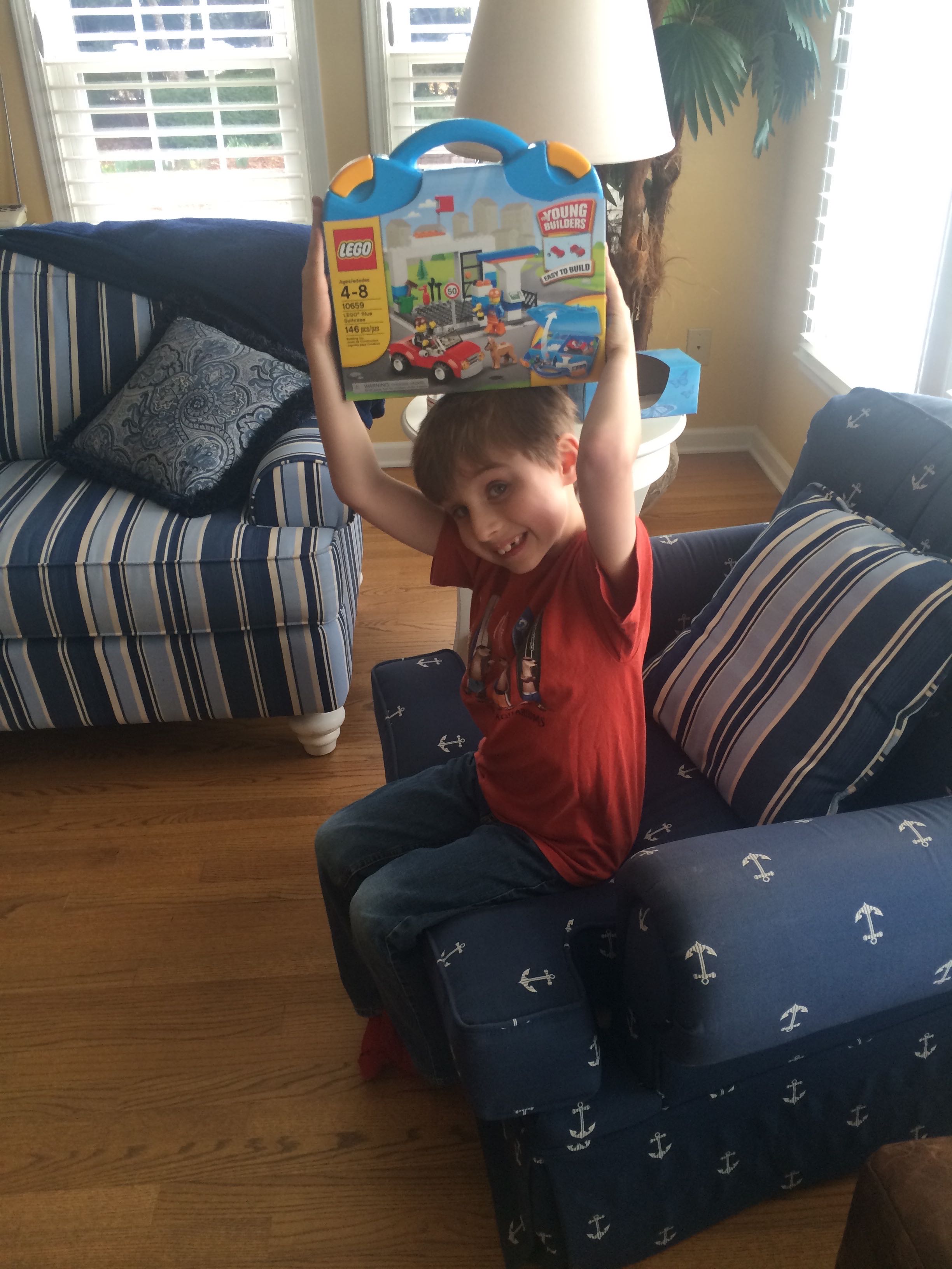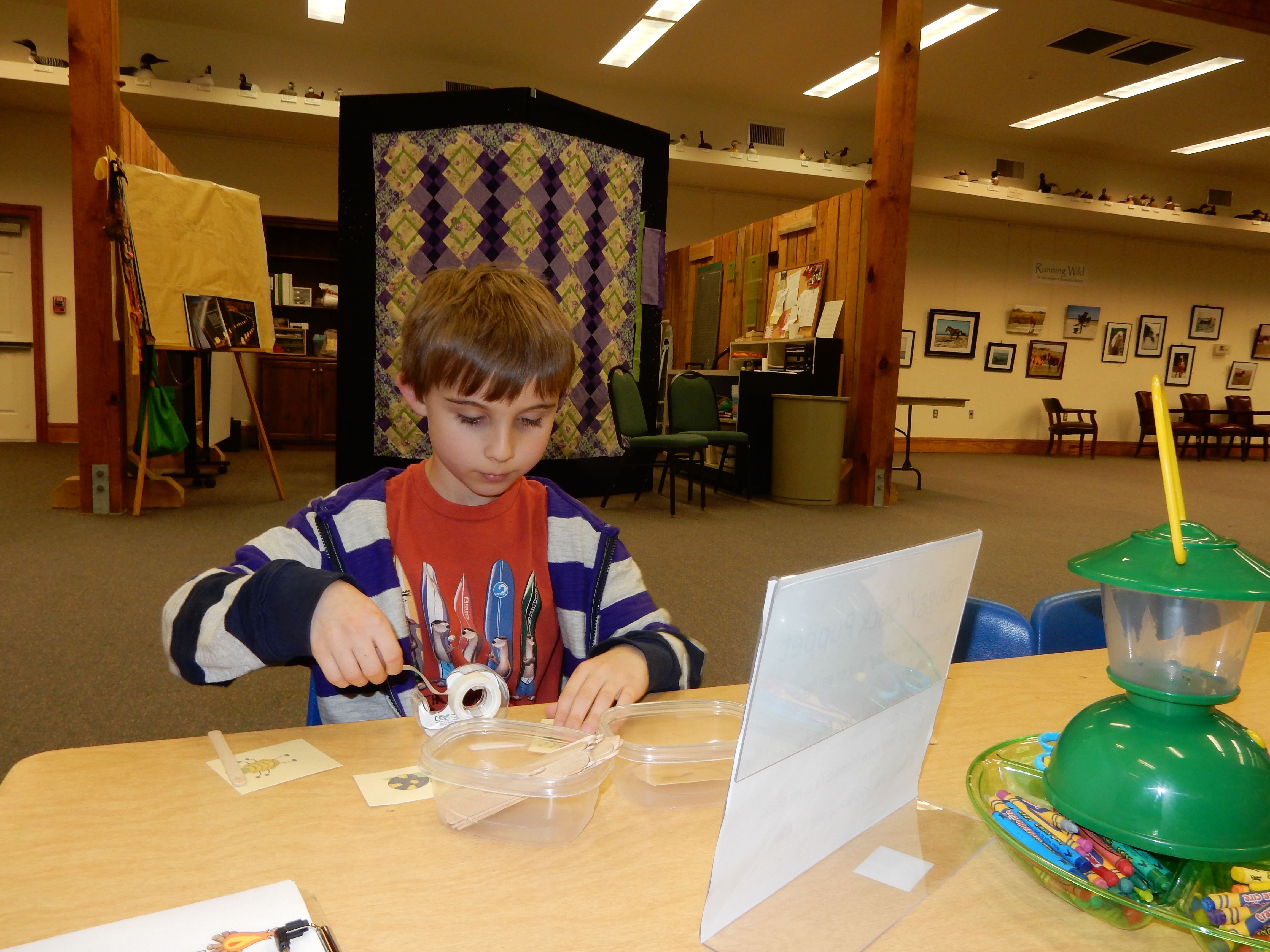 Anyway, we decided to be scofflaws and truants, and blatantly disregard the reinstated school days this week, opting to go for the “excused absence due to an educational field trip” tactic. We’re taking the requirements pretty seriously–packing in tons of educational trips each day, and making Brian take notes for an eventual portfolio, detailing all the things he learns. We did let the kids ease into the day with some Lego time. I’d brought along the “suitcase” Lego sets I’d gotten them probably more than a year ago. They were quite excited, as you can see! Brian compelled me to make a video of him creating a scene with his set. 😉 We eventually had to start educating, so we made our way to Harker’s Island for the Cape Lookout National Seashore Visitor Center, and the Core Sound Waterfowl Museum. Brian “borrowed” Grandma’s notepad, and made some pretty great drawings and notes of the things he saw along the way. He was interested in the big cranes he saw at the seaport, and made us look up the word for “not the crane part, the other part”–gantry, is the word he wanted to know. We got lunch at a Burger King (not one of our usual places–it was kind of gross, reminding us why it’s not one of our usual places!) But at least the kids got paper crowns out of it, and Brian made some excellent drawings of the seagulls we saw outside (love the action shot!) Both kids enjoyed (or at least were decent sports about) the educational exhibits, but the surprise kids’ area at the waterfowl museum was a really big hit. Since they’d put up with a lot of historical artifacts, we let them play there for a good long while. Brian found some books for his wishlist, and Kendall played with the puppets and seashell tic-tac-toe. Both kids got a prize or three from the gift shops at each place. At the Cape Lookout visitor center, we picked up one of those National Park passport books. We got our first stamps for it, and Kendall stamped herself for good measure. 😉 We picked up some groceries on the way back, and bless him, Brandon made us dinner while I occupied the kids (and I really phoned it in–introduced them to Full House reruns on Nick). 😉 It was a fun, but long day, and I was pretty well exhausted by the end. 🙂