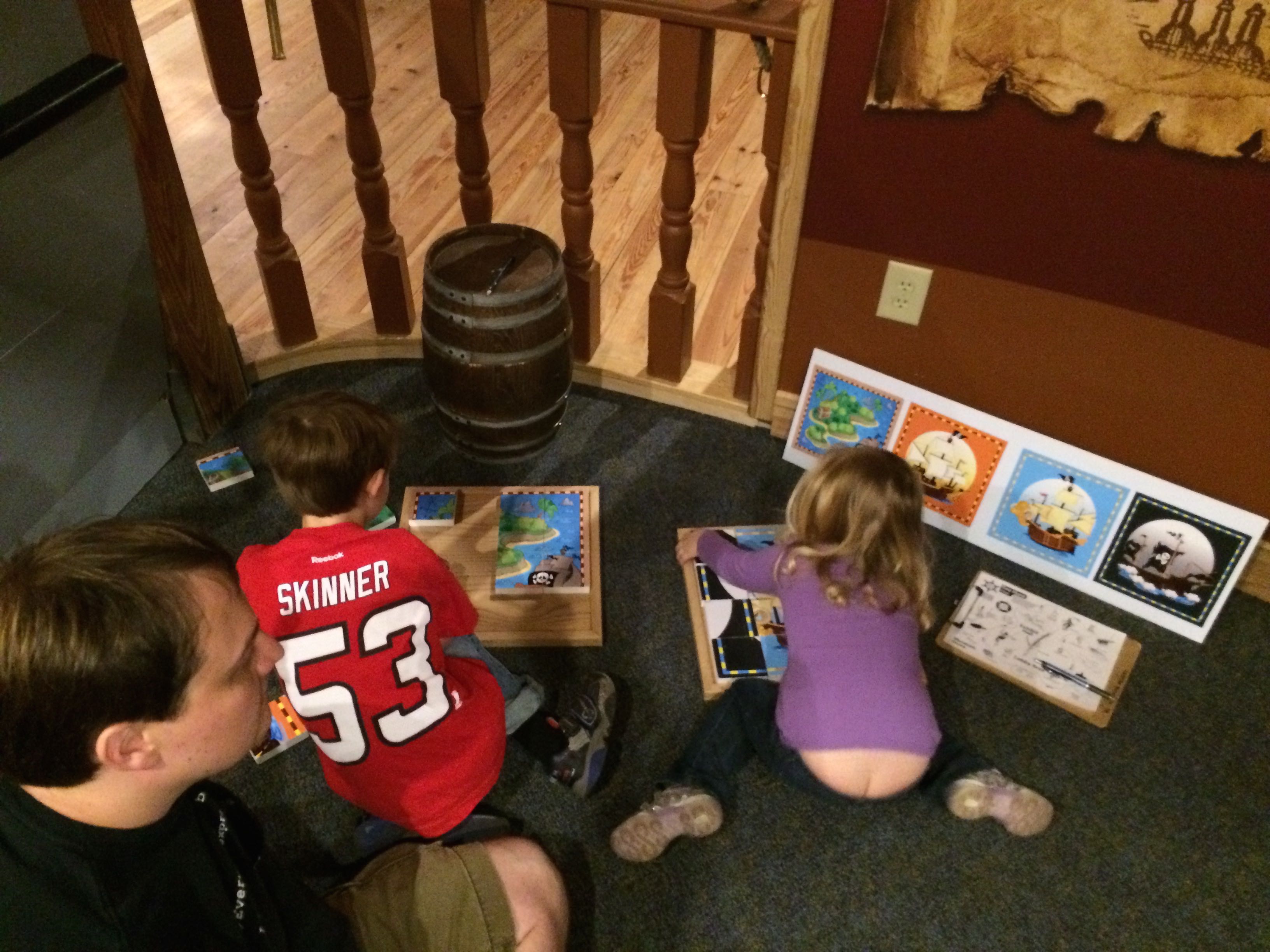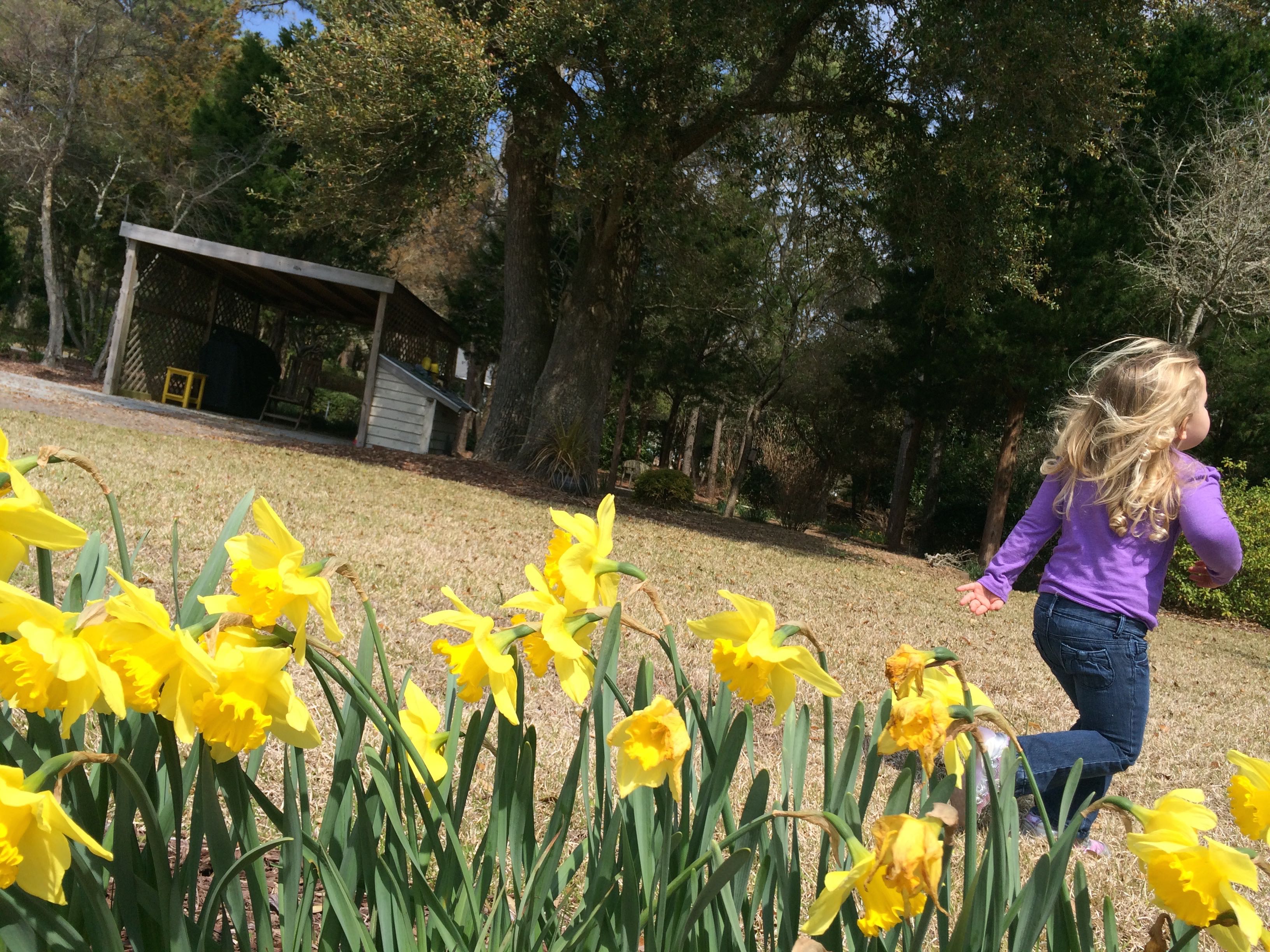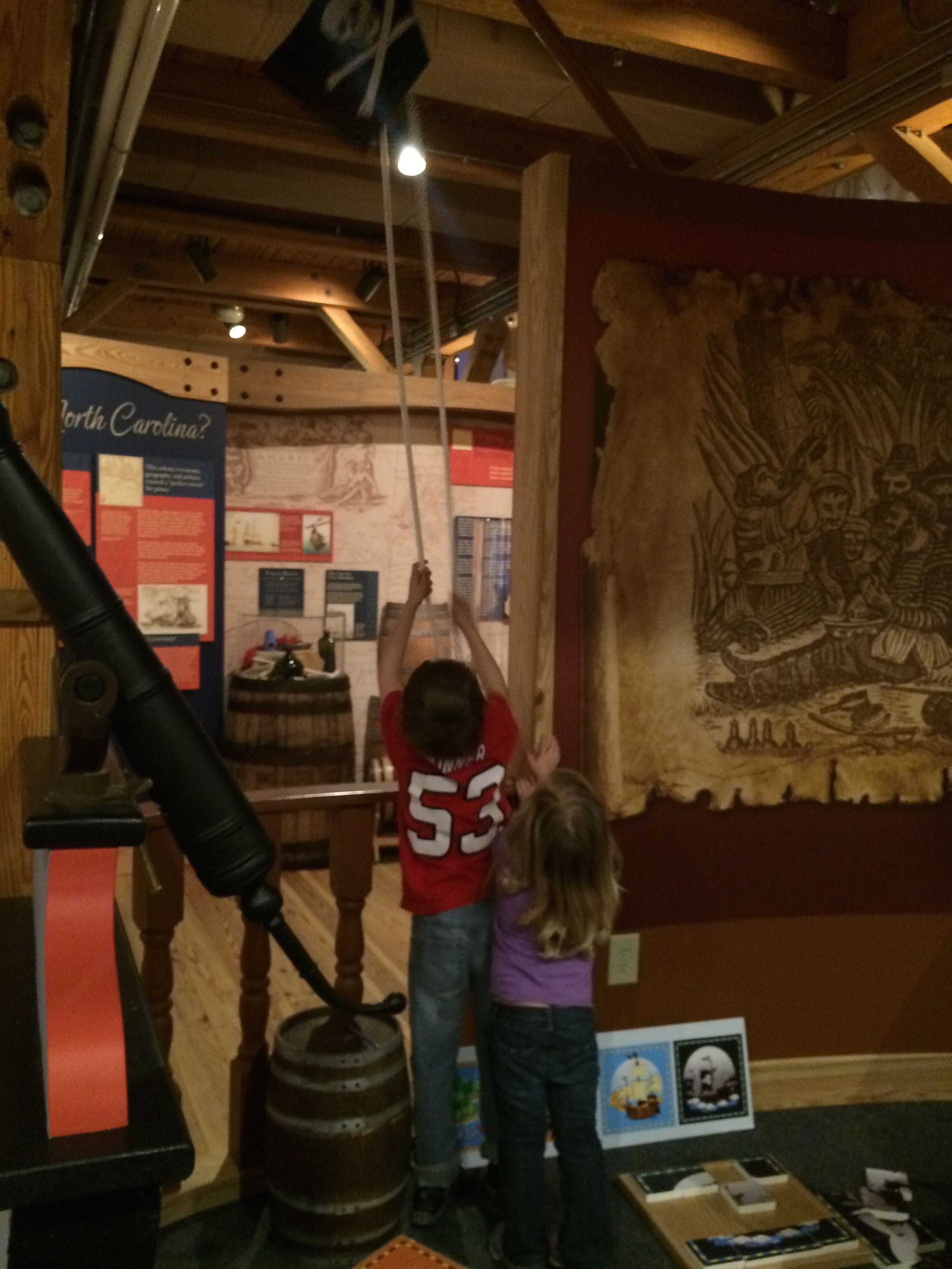 Our education spring break beach trip rolls on, as today we went to the Crystal Coast Visitor Center, Beaufort, and the NC Maritime Museum (or the “Pirate Museum”, as the kids call it!) Brian continued to take good notes, and both kids enjoyed doing the scavenger hunt. Everyone likes the Lego Pirate Ship that was on display–it’s out of production, but I might try to track it down (Kendall really likes the mermaid!) We had a passable lunch at the Royal James Cafe (which, if they were honest with themselves, is a bar more than a cafe!) We enjoyed the springtime weather back at the beach house, with some time on the porch, on the dock, and in the yard. The daffodils were looking so beautiful in the sun!