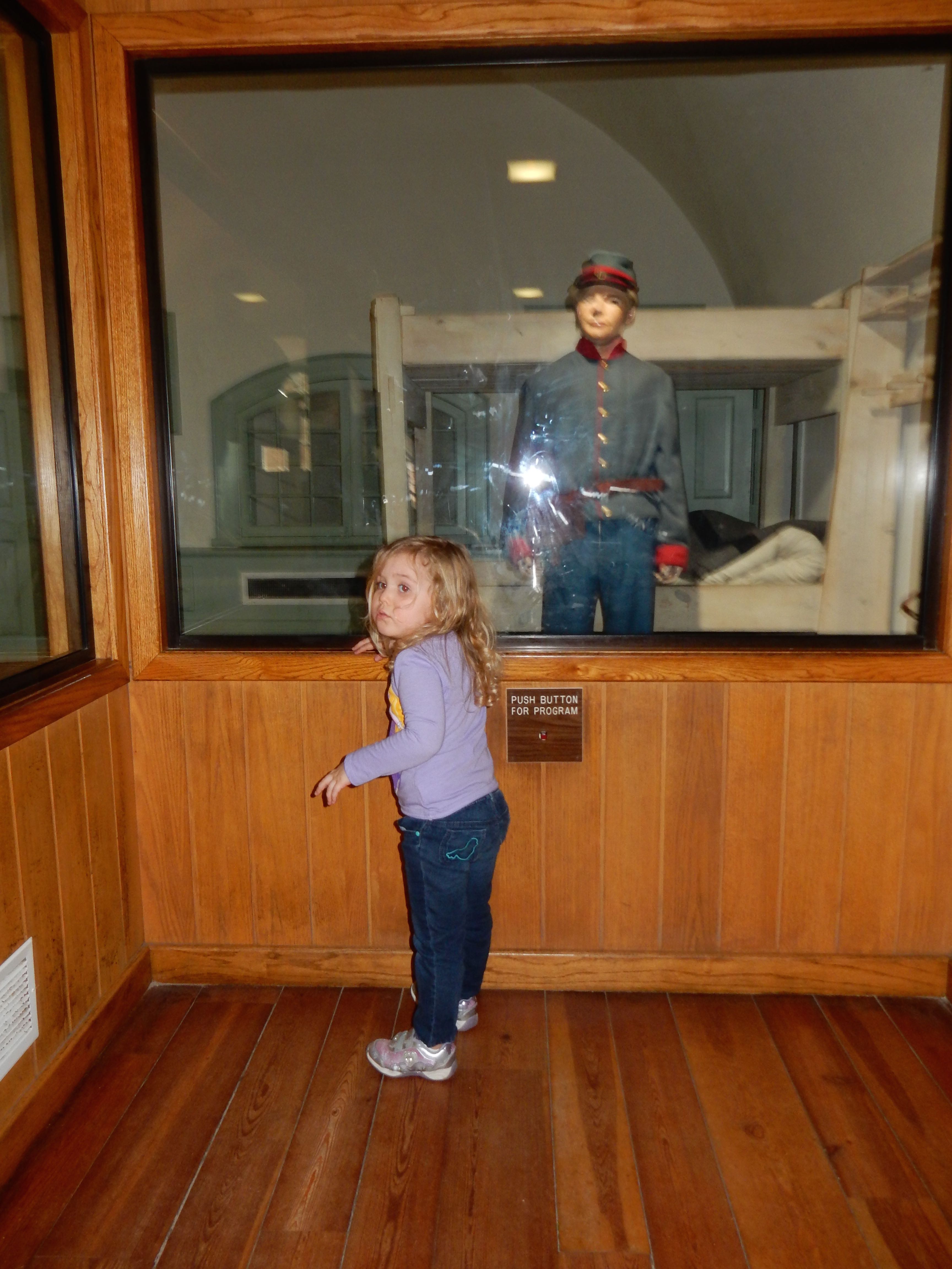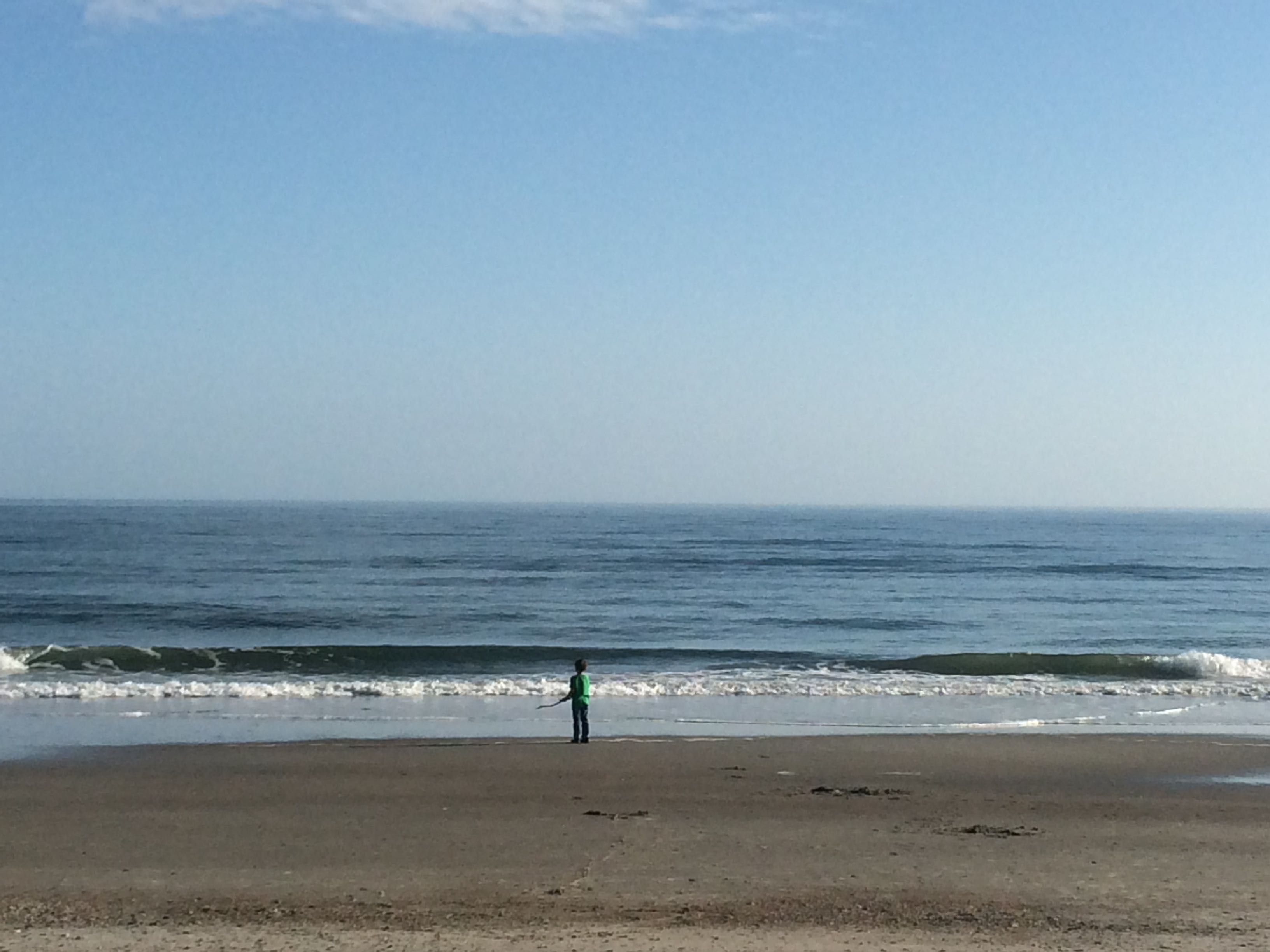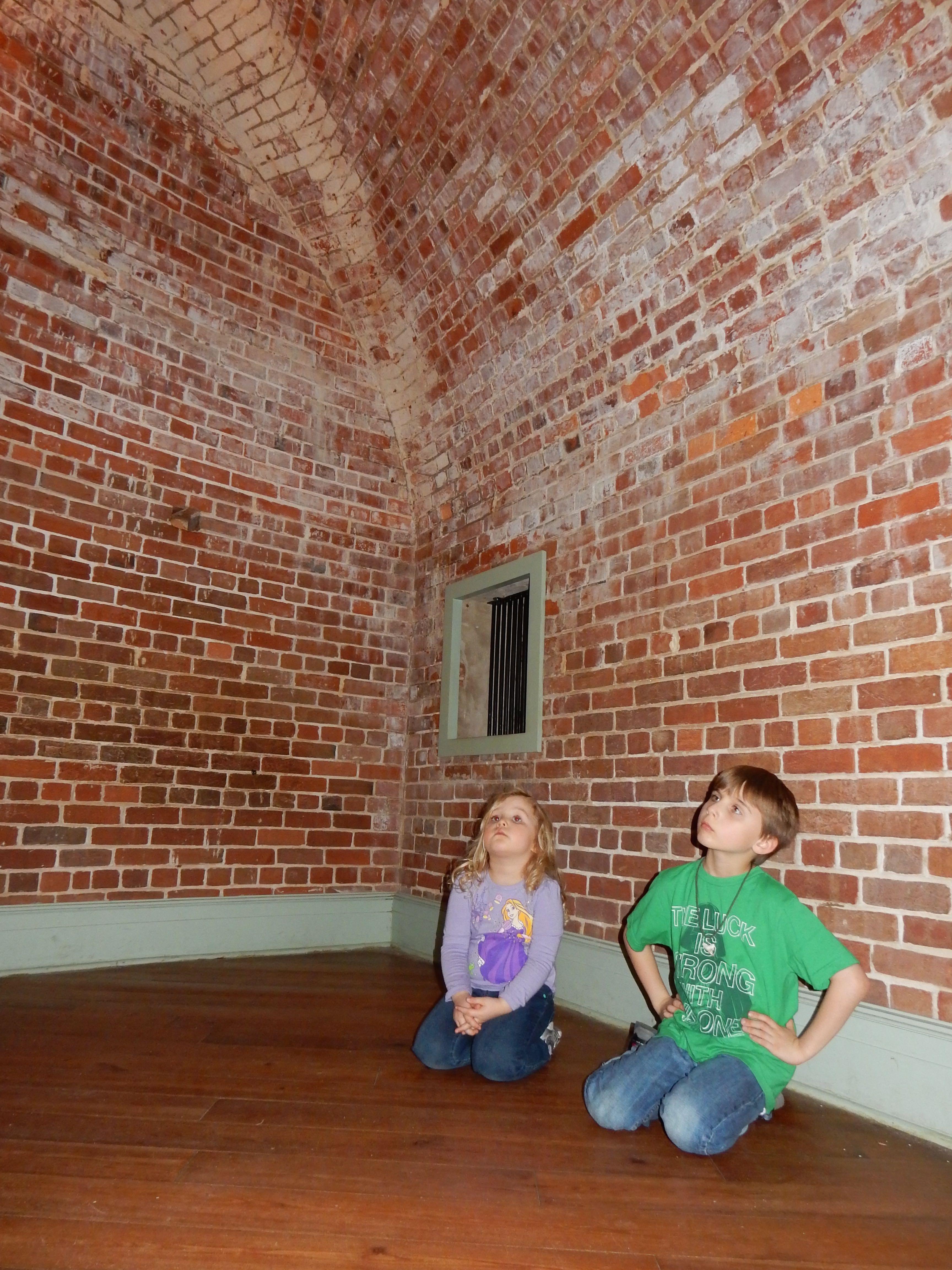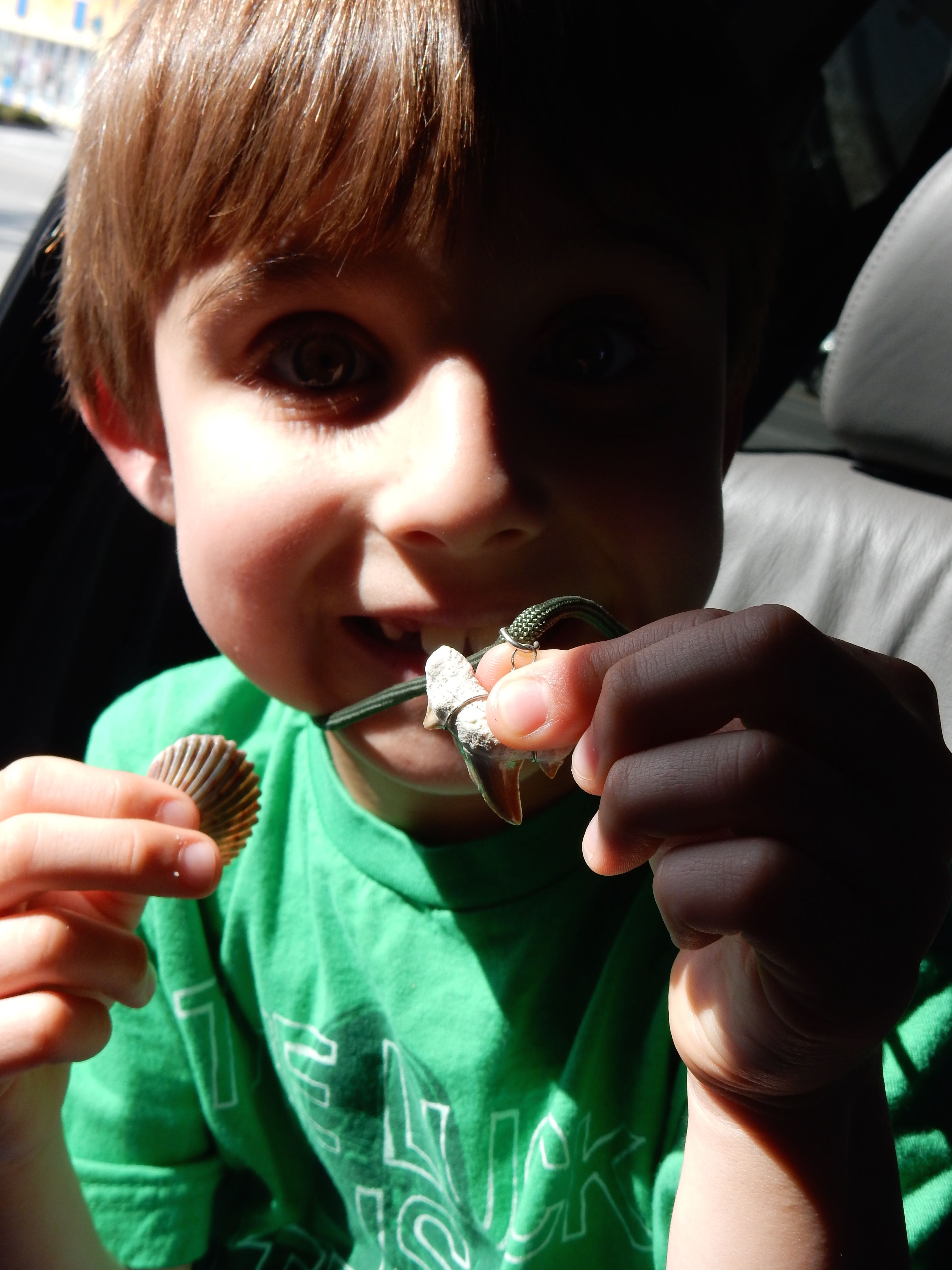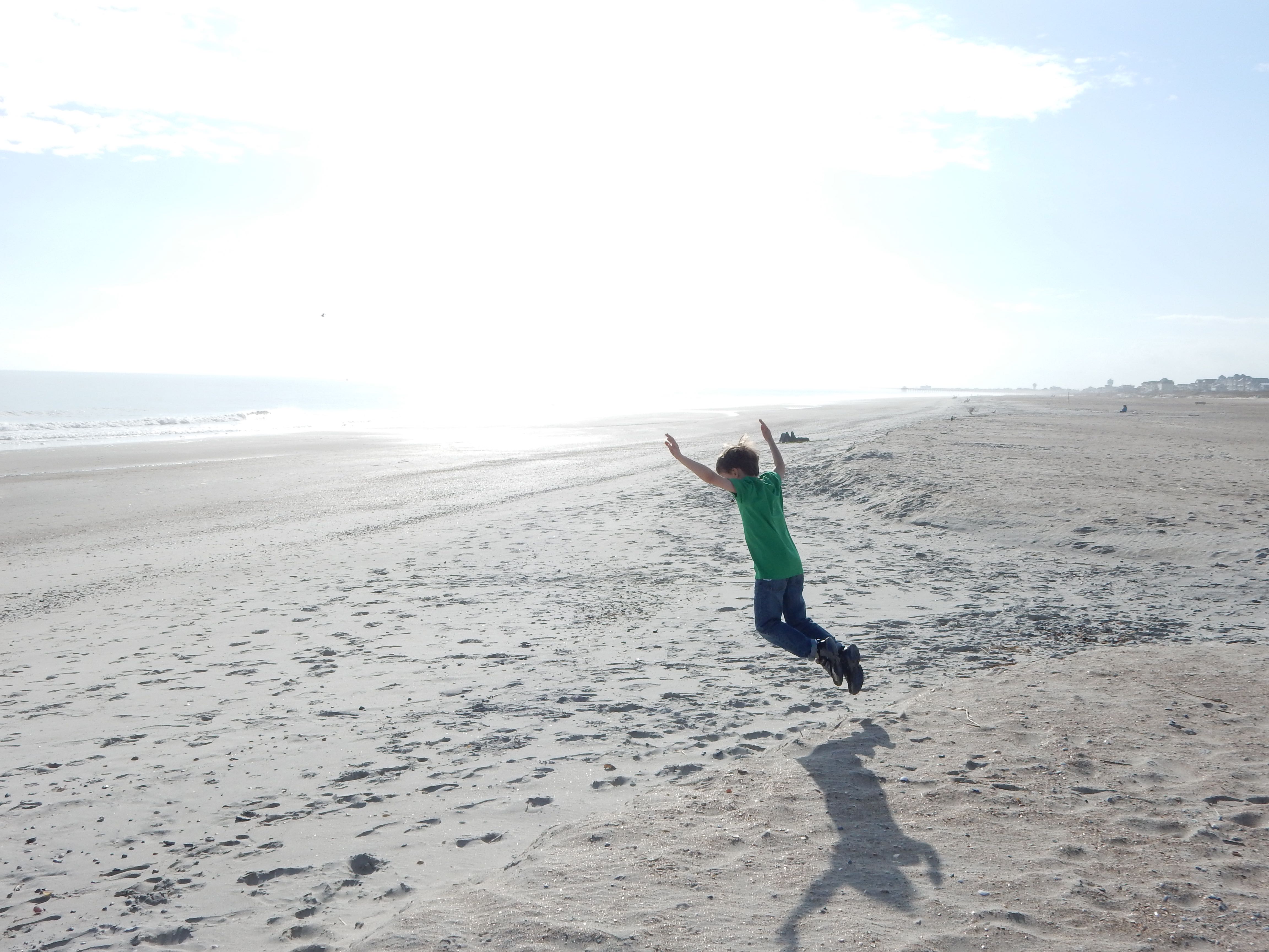 The spring break fun continued today (after a “healthy” breakfast, of course!) Today we were off to the aquarium, always a good time. 🙂 Brian really liked this gigantic plushie sting ray, but it’s nearly as big as him, pretty impractical. We convinced him that just taking pictures with it was okay. 😉 Brian did get a shark tooth necklace at the Wings store, something he wanted to do after seeing a coupon for a free one in the guidebook magazine we’d picked up. We had lunch at the Big Oak Drive-In, known for its yummy shrimp sandwiches and pretty amazing onion rings, too. We even got some apple fritters for dessert. 🙂 Then, we headed off to Fort Macon, or “Fort Fun” as the Visitor’s Guide called it. 😉 Brandon and I had some laughs about that, but the kids really did have fun there! They like running around and opening up all the doors to see what’s inside. In the gift shop, Kendall liked the display of Audubon plushie birds, especially the cardinals, but didn’t actually ask to get one. 🙂 Brandon got a deck of replica “spotter” playing cards, which were used during wartime to help the soldiers learn how to identify planes. Of course Brandon doesn’t need any help with that, he can already identify every plane we see. 🙂 Afterward, we spent a little time on the beach flying kites and playing in the sand some. It’s too cool for getting in the water, but it was fun to be nearby! Kendall had been really jealous of Brian’s note-taking, so at the grocery store we got her a cute pink notebook to have for her own. She was so sleepy, she ended up taking a nap on the couch while we made dinner!