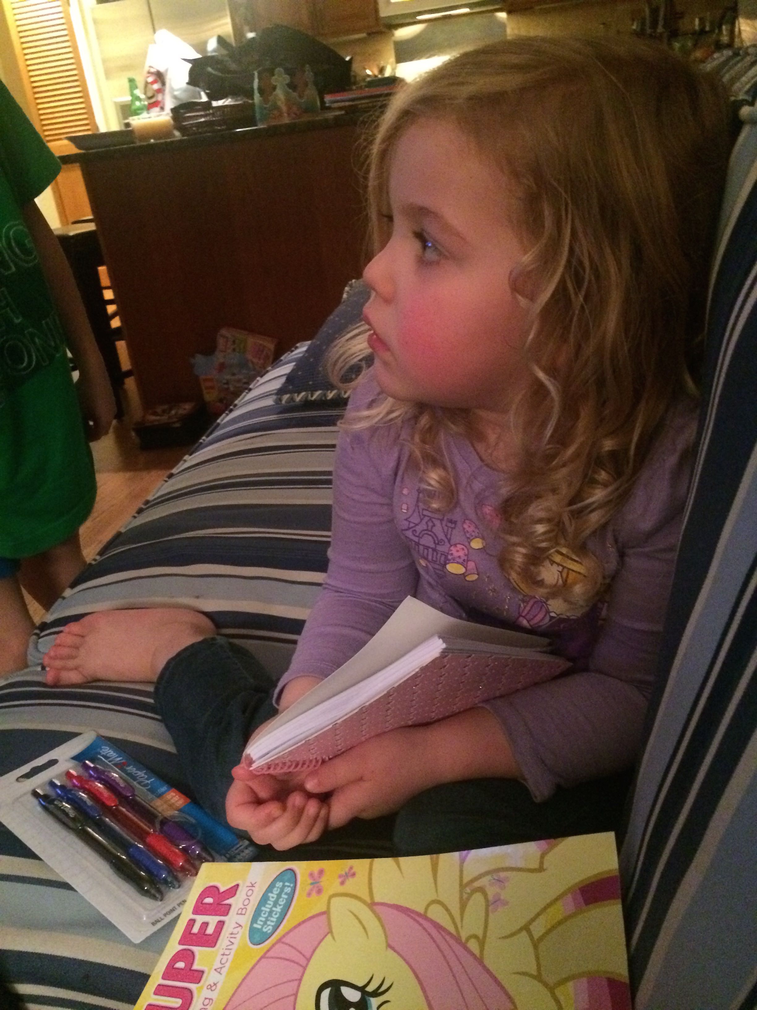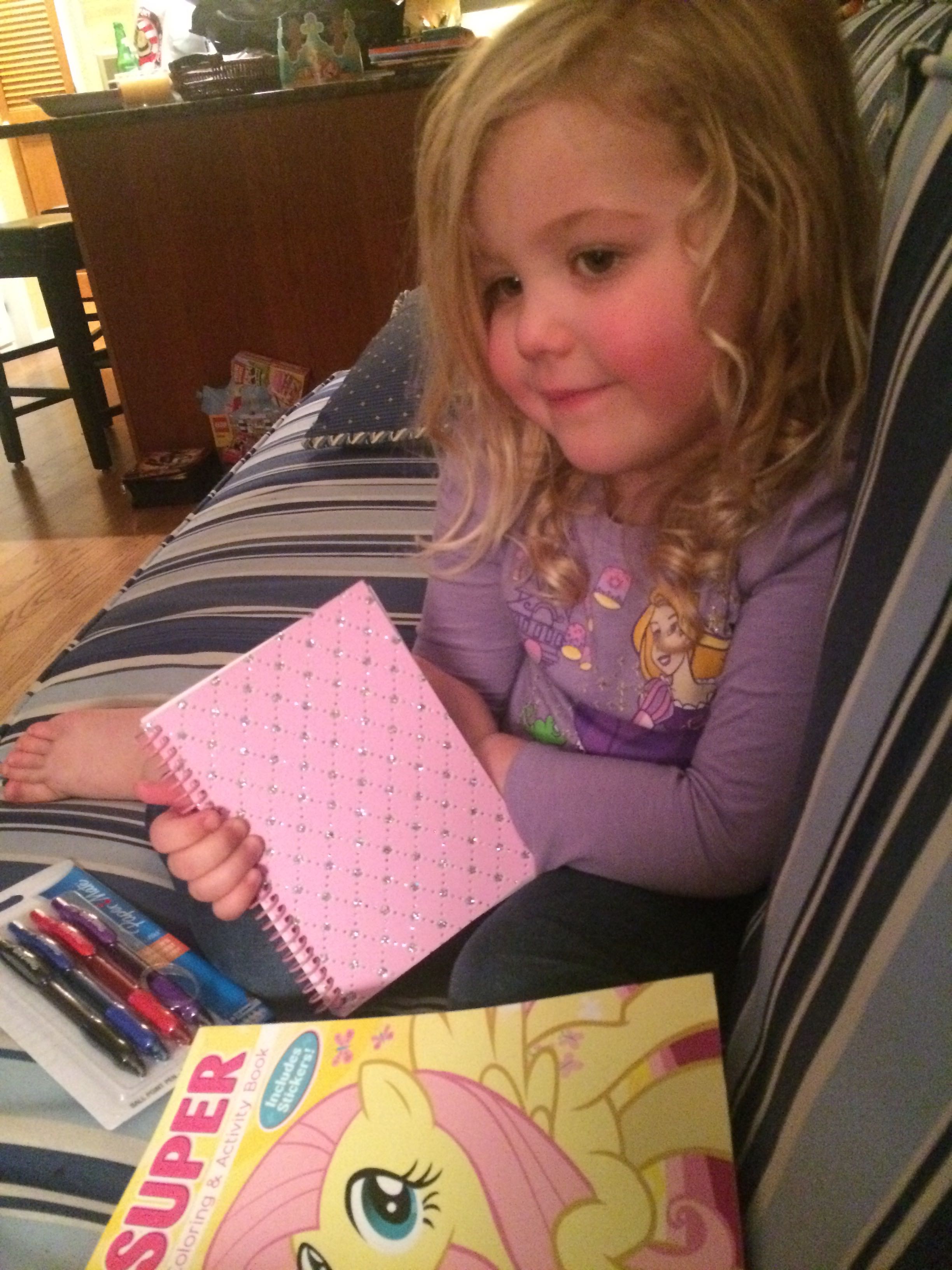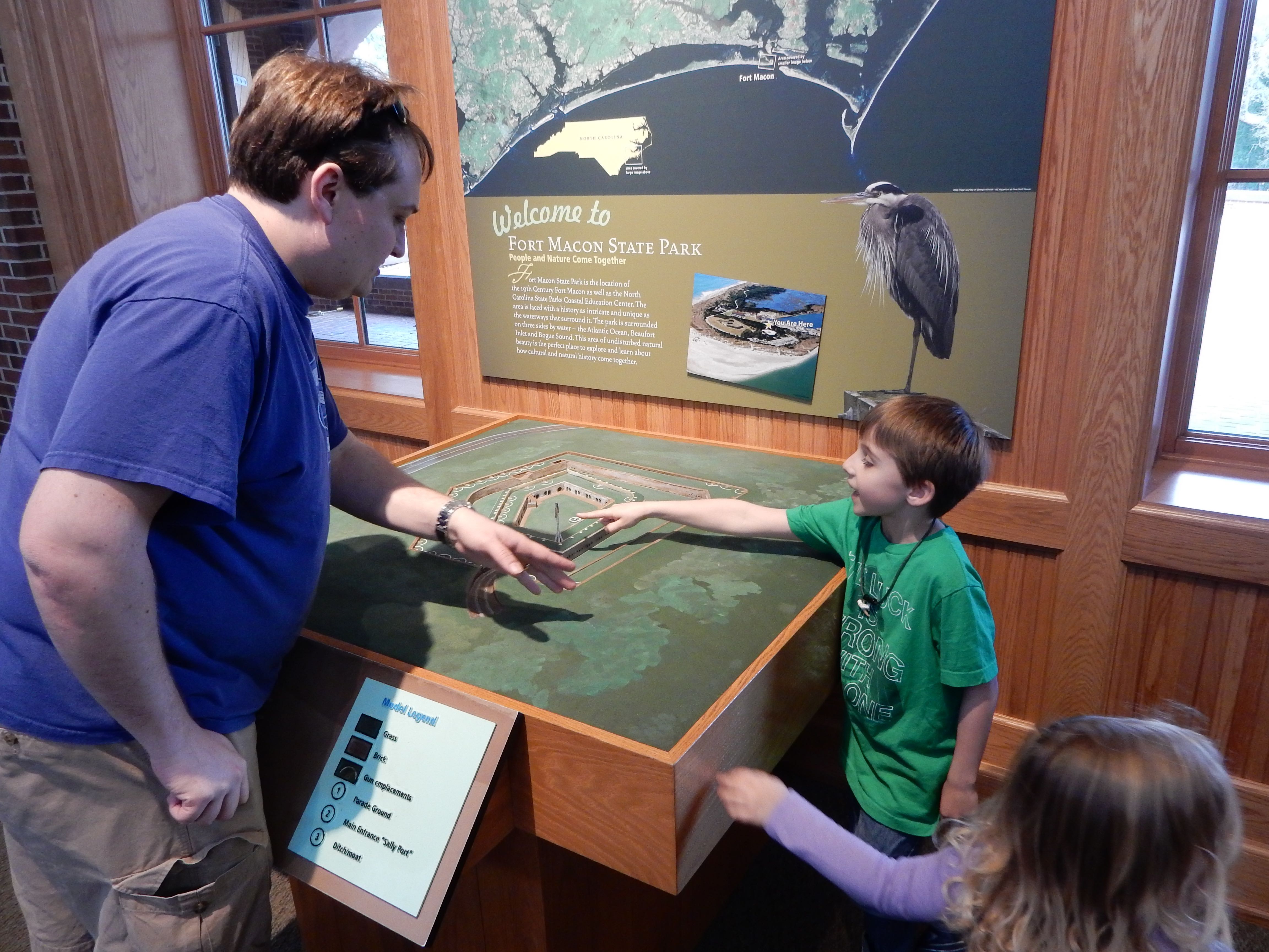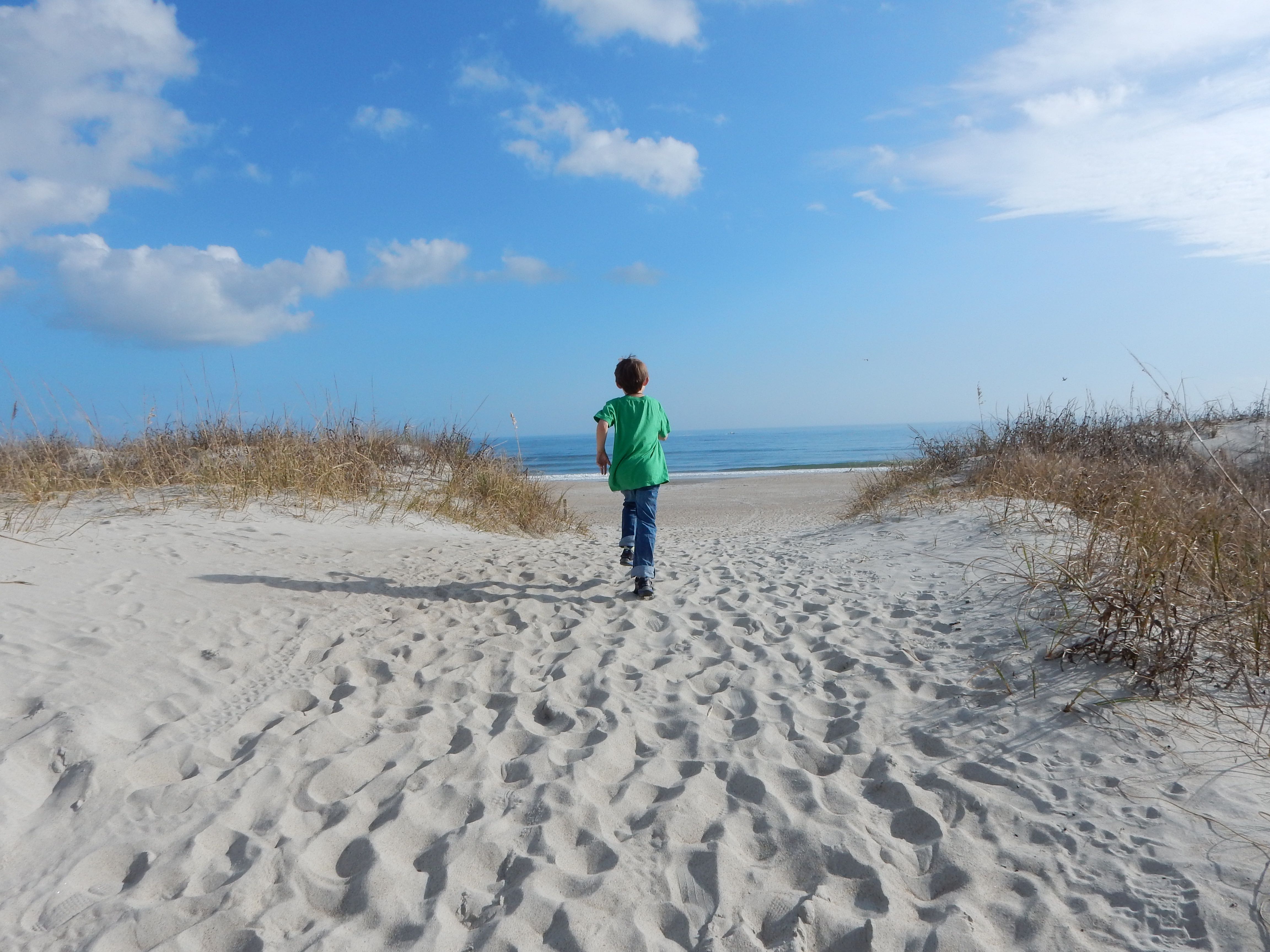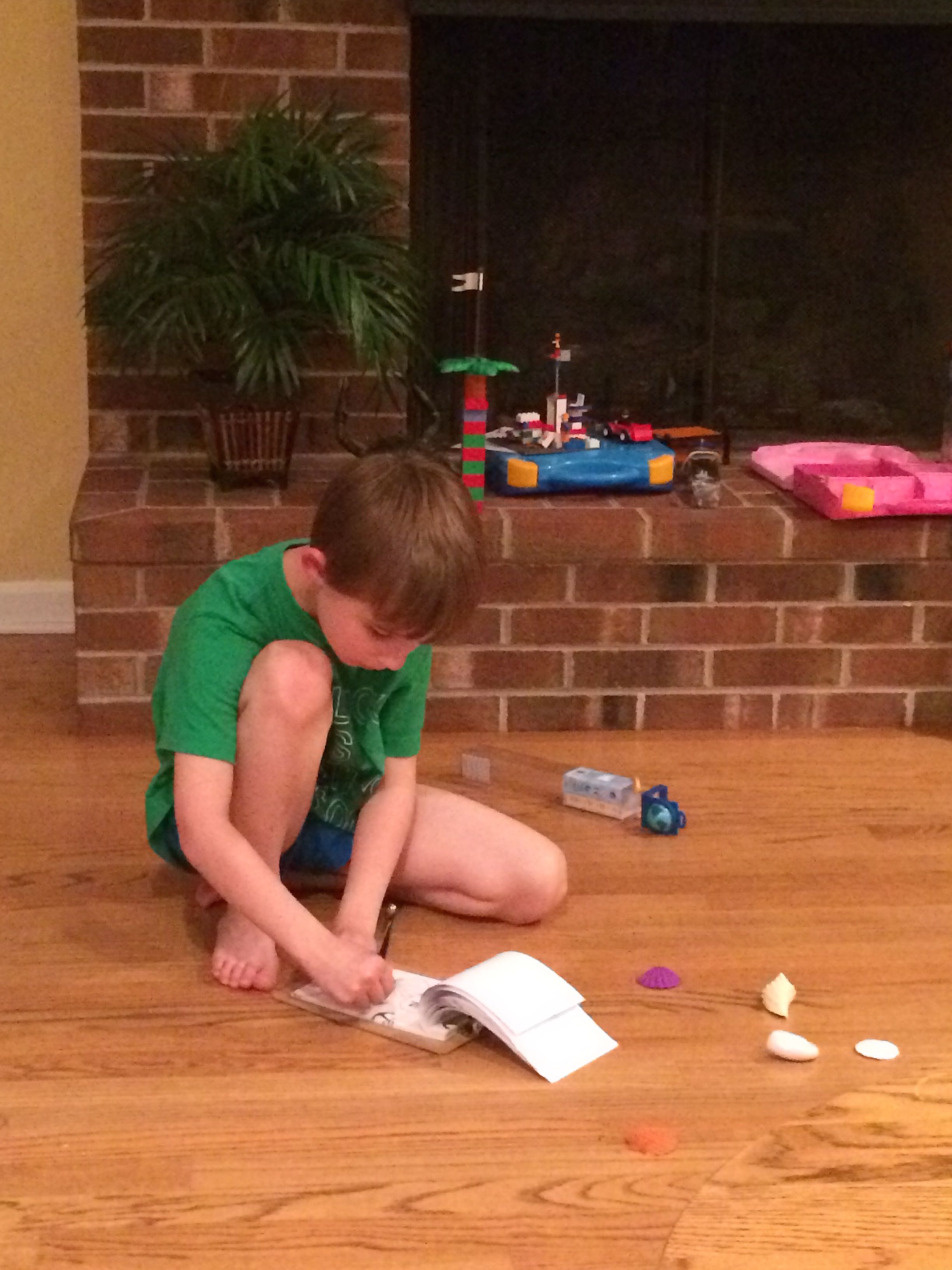 The spring break fun continued today (after a “healthy” breakfast, of course!) Today we were off to the aquarium, always a good time. 🙂 Brian really liked this gigantic plushie sting ray, but it’s nearly as big as him, pretty impractical. We convinced him that just taking pictures with it was okay. 😉 Brian did get a shark tooth necklace at the Wings store, something he wanted to do after seeing a coupon for a free one in the guidebook magazine we’d picked up. We had lunch at the Big Oak Drive-In, known for its yummy shrimp sandwiches and pretty amazing onion rings, too. We even got some apple fritters for dessert. 🙂 Then, we headed off to Fort Macon, or “Fort Fun” as the Visitor’s Guide called it. 😉 Brandon and I had some laughs about that, but the kids really did have fun there! They like running around and opening up all the doors to see what’s inside. In the gift shop, Kendall liked the display of Audubon plushie birds, especially the cardinals, but didn’t actually ask to get one. 🙂 Brandon got a deck of replica “spotter” playing cards, which were used during wartime to help the soldiers learn how to identify planes. Of course Brandon doesn’t need any help with that, he can already identify every plane we see. 🙂 Afterward, we spent a little time on the beach flying kites and playing in the sand some. It’s too cool for getting in the water, but it was fun to be nearby! Kendall had been really jealous of Brian’s note-taking, so at the grocery store we got her a cute pink notebook to have for her own. She was so sleepy, she ended up taking a nap on the couch while we made dinner!