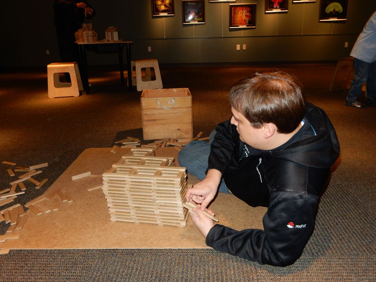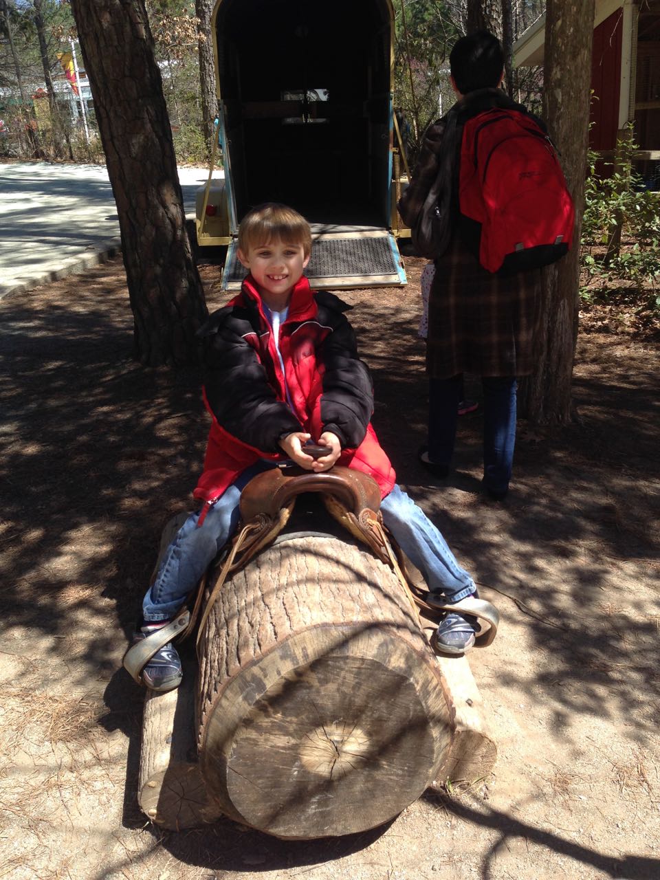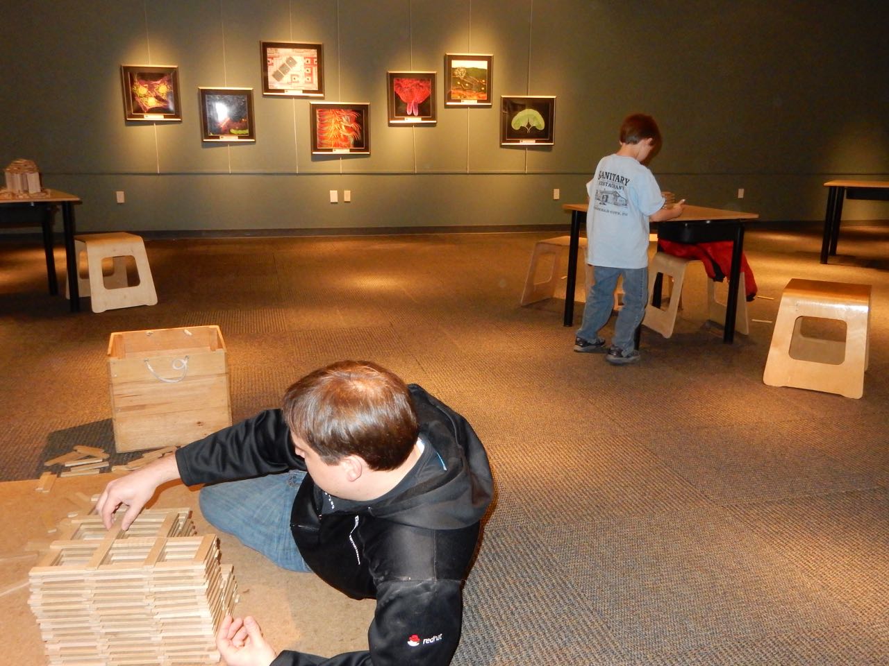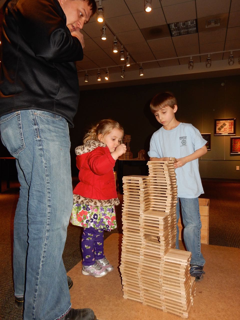 Today was the Dino Egg Hunt at the Museum of Life + Science in Durham! On the way in, we were happy to run into Brian’s pal from his Goddard days, Julian. What a nice surprise! The kids played outside for awhile before it was our turn to hunt. The fossil dig area was a hit! Julian is a bit of an expert about dinosaurs, so he told us about some of his favorites. There were some new activities outside, like the big dinosaur 3D puzzles, and some old favorites. The kids had fun with each, and when we got too cold, we retreated indoors for awhile. The kids played in SoundScapes for awhile, and then at the Keva blocks. Brandon made a great structure, highly precise. I took Kendall to look at some of her favorite weather displays for awhile so he could have a chance to finish building it. Predictably, Kendall crashed the block structure not soon after it was complete! Oh well. I guess she couldn’t resist. 🙂