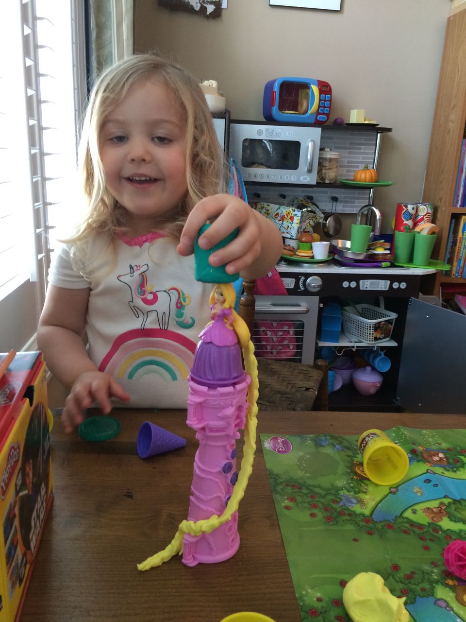 Kendall went to town, er, restaurant with her play food. She also took to working with a lot of Play-Doh food and princesses. For a little down-time, Kendall wanted to read one of Brian’s favorite books, “Millions of Cats” by Wanda Ga’g. It was a lazy day at home for the girls, but they certainly had a lot of fun playing and hanging out!