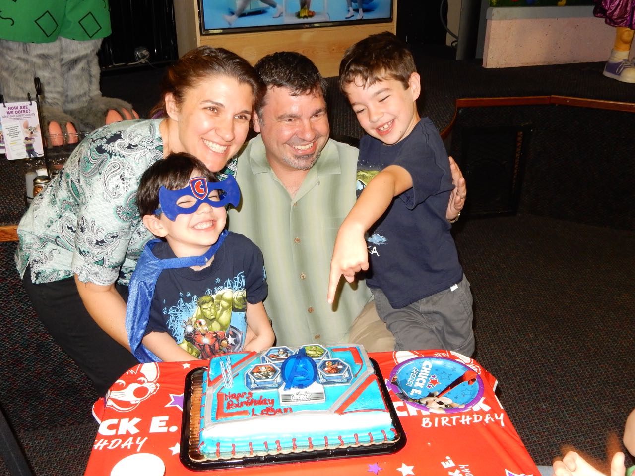 Today we got to celebrate Logan’s 6th Birthday with a party at Chuck E. Cheese’s. Certainly not a favorite of the parents, but you can’t help but acknowledge that the kids have a blast there! Logan had an “Avengers Assemble” theme. We also got to see Mike’s parents who traveled down for a visit and the party. I enjoyed talking with them while monitoring what Brian was up to. I am kind of proud about the fact that Brian digs the physical activity games more than the straight-up video games! Happy Birthday Logan!
