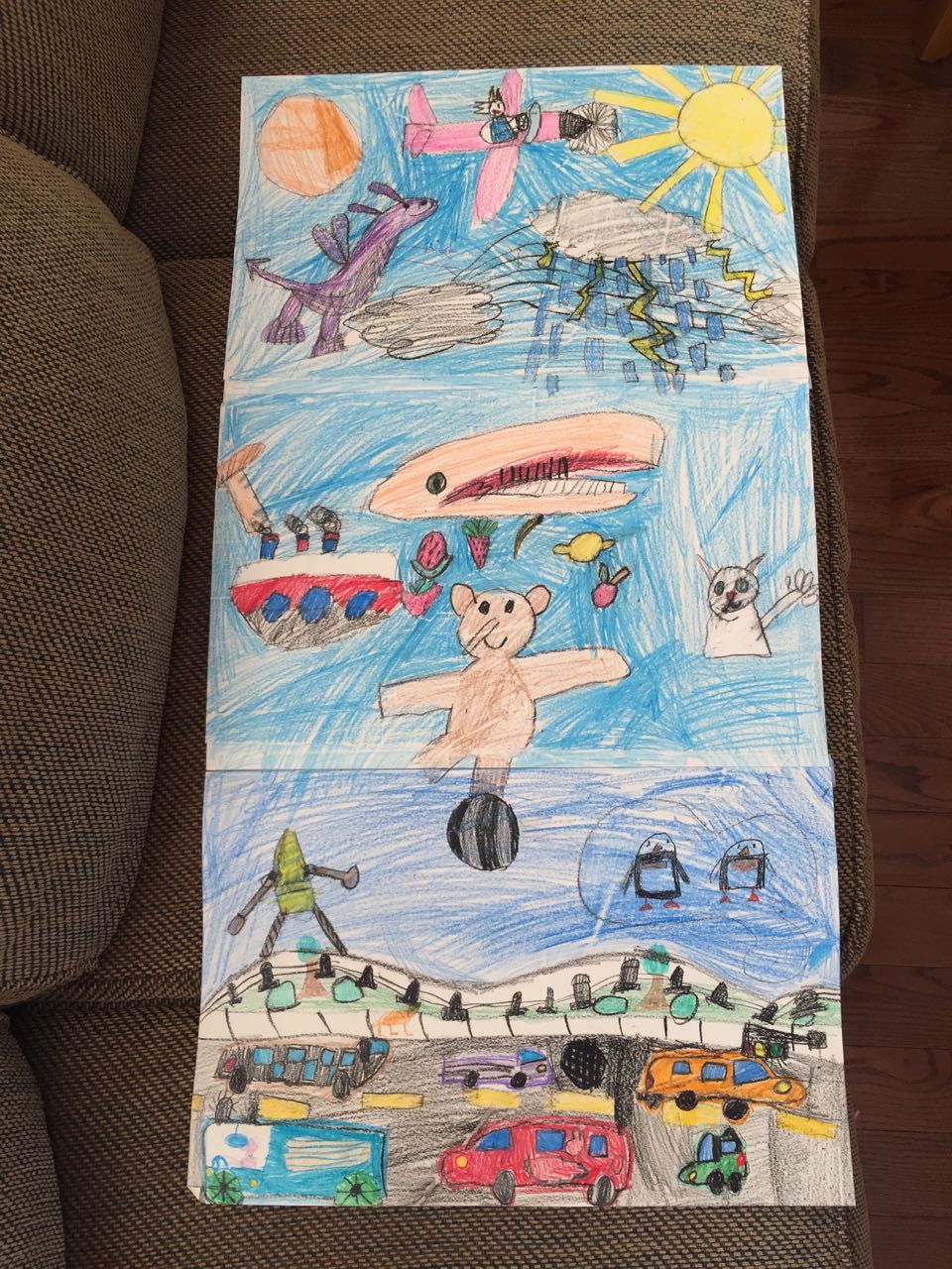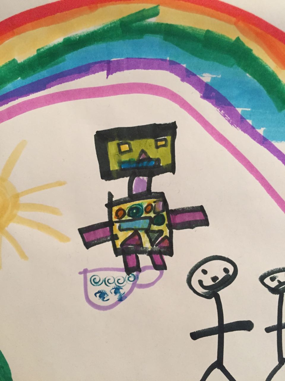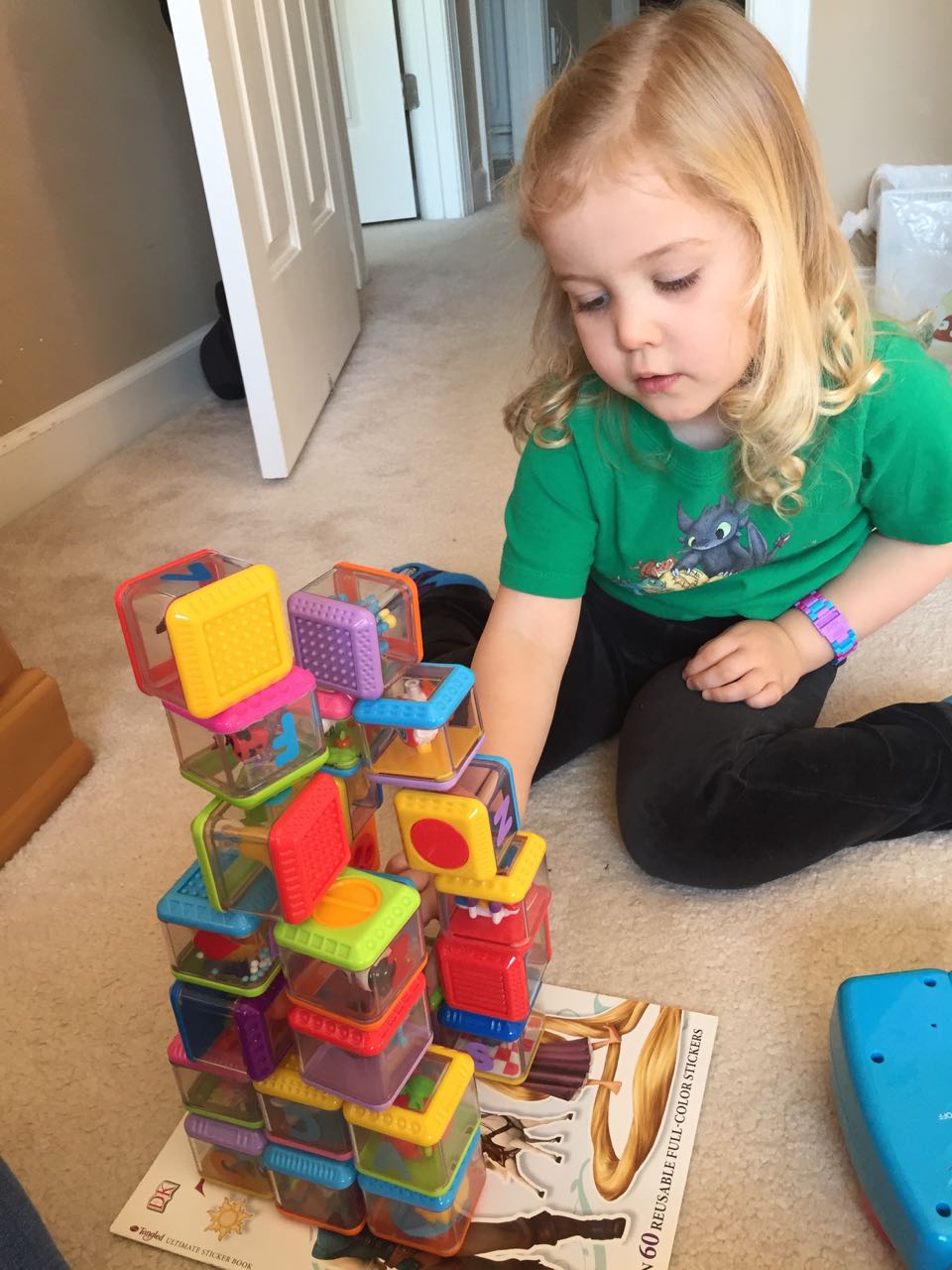 Kendall sure was a cutie this morning, playing with her blocks. Brian drew this cute little robot on the easel paper–so many colors for a little droid! Brandon went to check and see if Steve’s marker had been installed yet. It hadn’t, but, they have it onsite and it should be ready soon. He pretty much insisted that Brandon come take a look at it, since it was out sitting on some sawhorses. 🙂 I spied a pretty amazing piece of artwork on the couch today–but it seems I’m not supposed to know about it just yet, so… ssshh! I won’t tell if you won’t. 😉