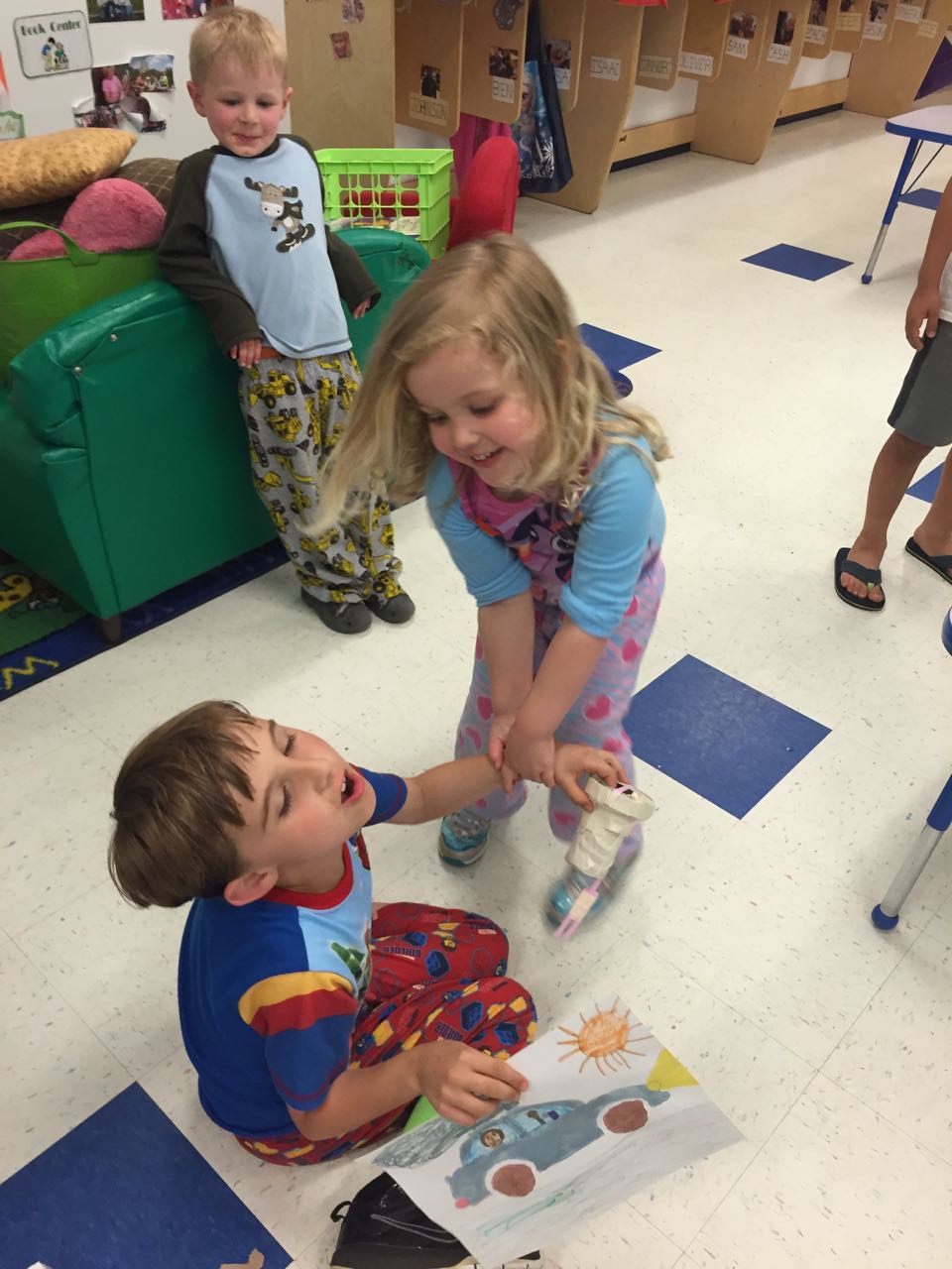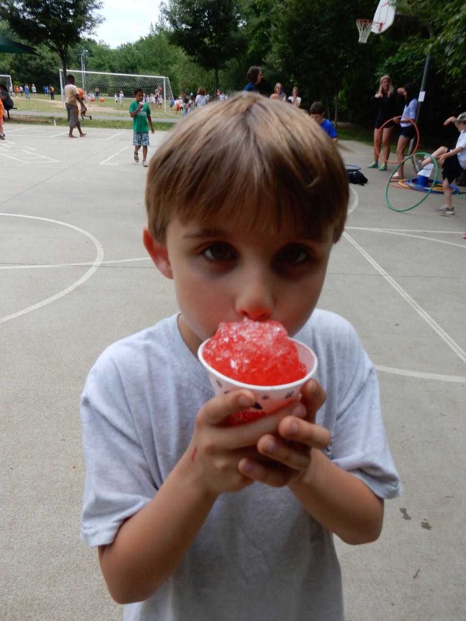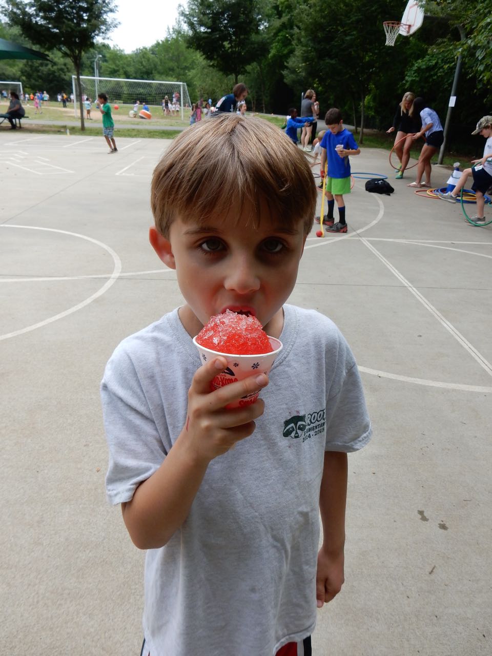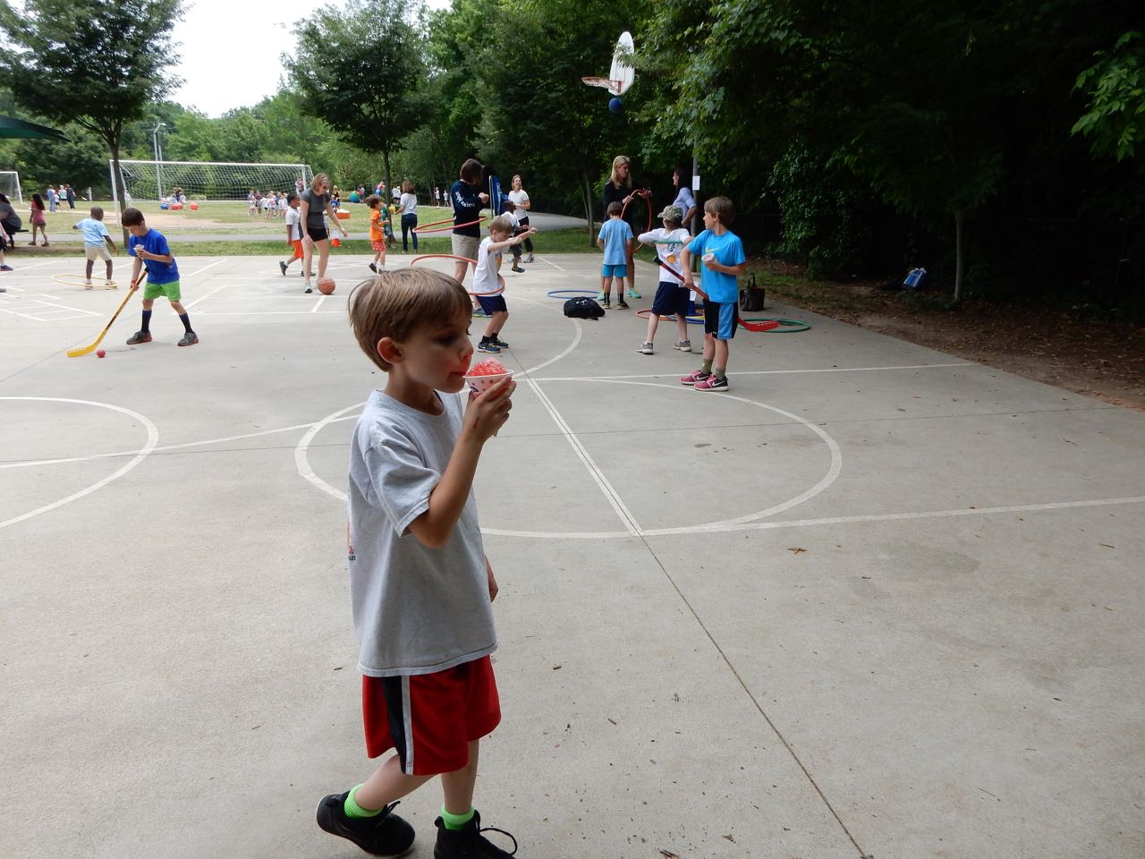Today was the annual Fun In The Sun event at Brian’s school. Brandon and I volunteered as before, and ran a little hockey game in one corner of the playground. Everyone kept wanting to be the goalie, especially Brian, but since there were no pads or helmets, Brandon insisted it was only shooting practice. Brian got a sno-cone and had a picnic lunch with us, and then it was back to work for us. Tonight there was a Parent Night Out event at Goddard, so Brian got to enjoy a pizza party with his best buddy Ty. They got creative and had lots of artwork to show us when we picked them up!