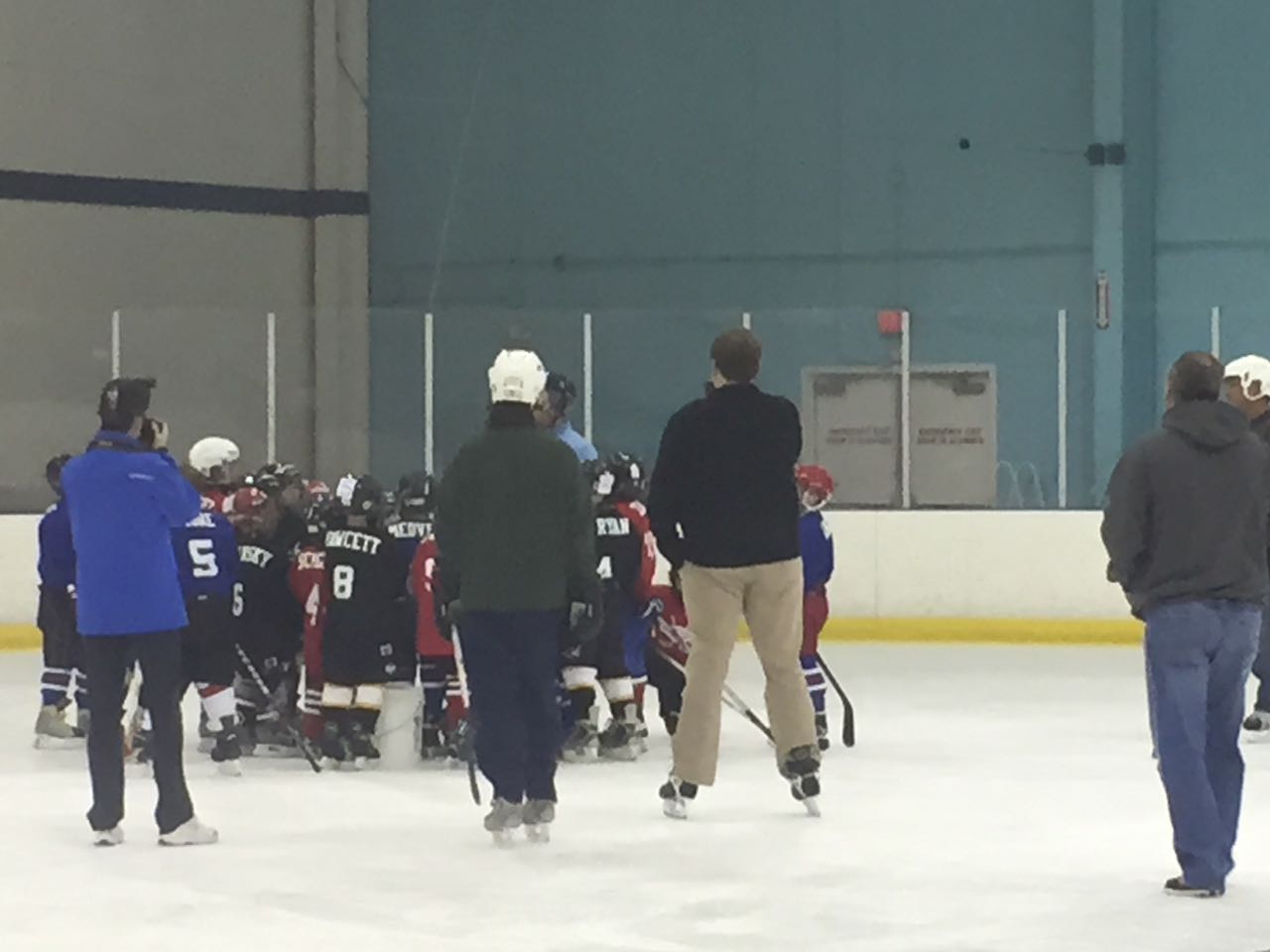 When the on-ice ceremonies and photos were done, we had an end-of-season party behind the IcePlex with burgers, dogs, chips, and all sorts of treats. Kids young and old had a great time hanging out and chatting hockey and other topics.