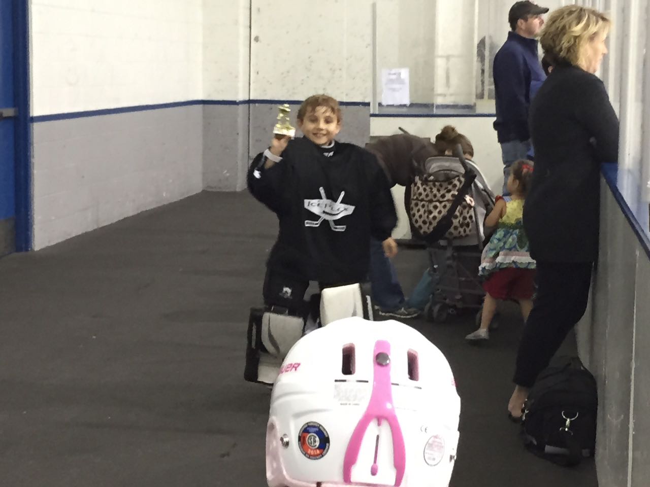 After a bit of downtime, the whole family was off to the IcePlex for Brian’s final game of his first season of House League Mite Hockey. We are so proud of everything he accomplished to learn to skate, learn to play, and to be out the gate as a high-quality goaltender! All the kids got a trophy, but they were all so happy to get one. We got team group photos and individual photos of Brian on and off the ice. Another special item to report is that Brian’s 1st grade teacher, Mrs. Hounwanou, came with her husband to watch Brian play. That was awesome, especially because Brian didn’t get too distracted. Nana Rosemary and Pake Sytse were also able to attend so that Brian had a big cheering section. At the end of the game, we let Kendall put on her skates and try to get her ice-legs under her. She will definitely need some proper lessons once she has swimming under her belt!