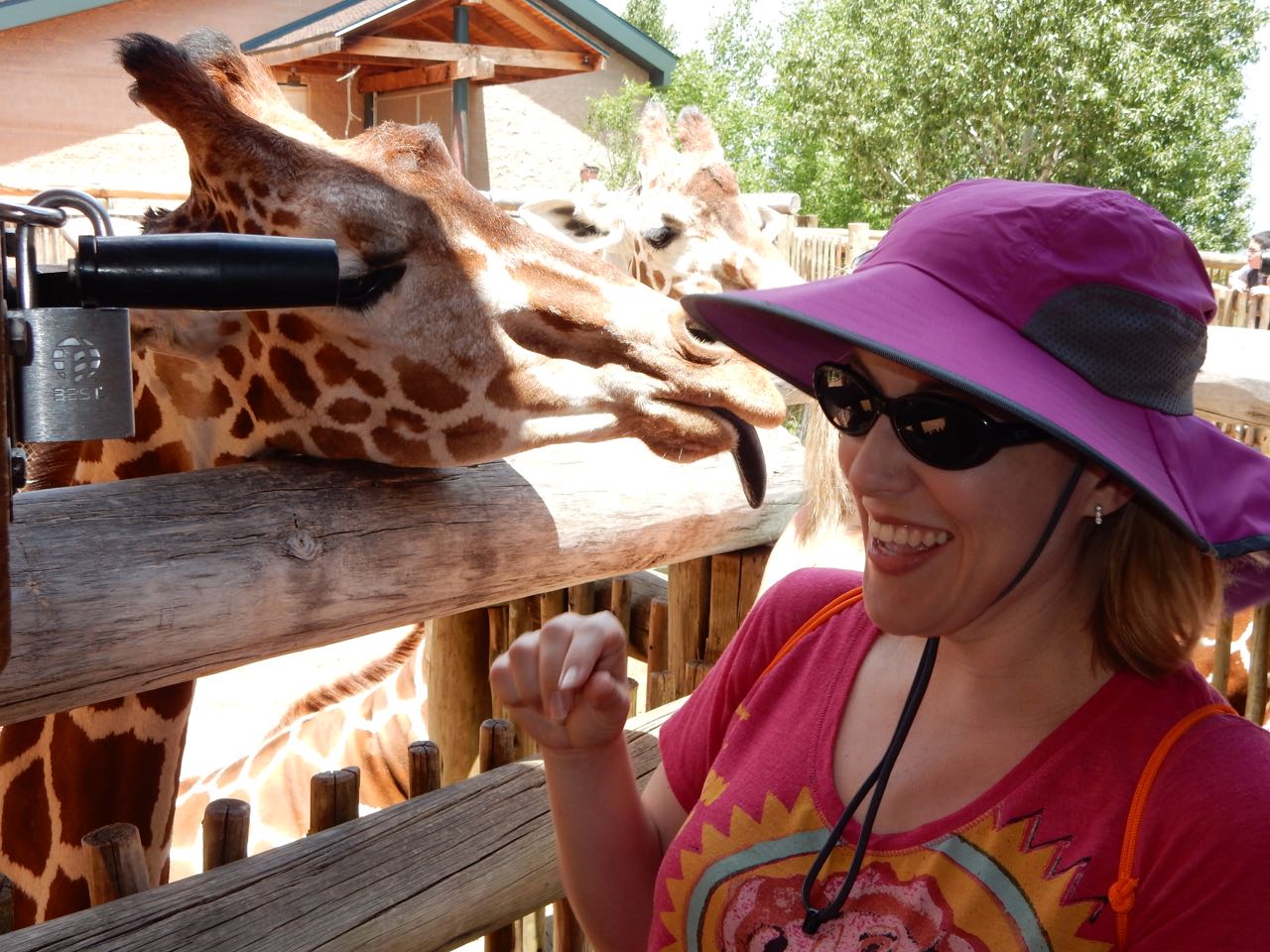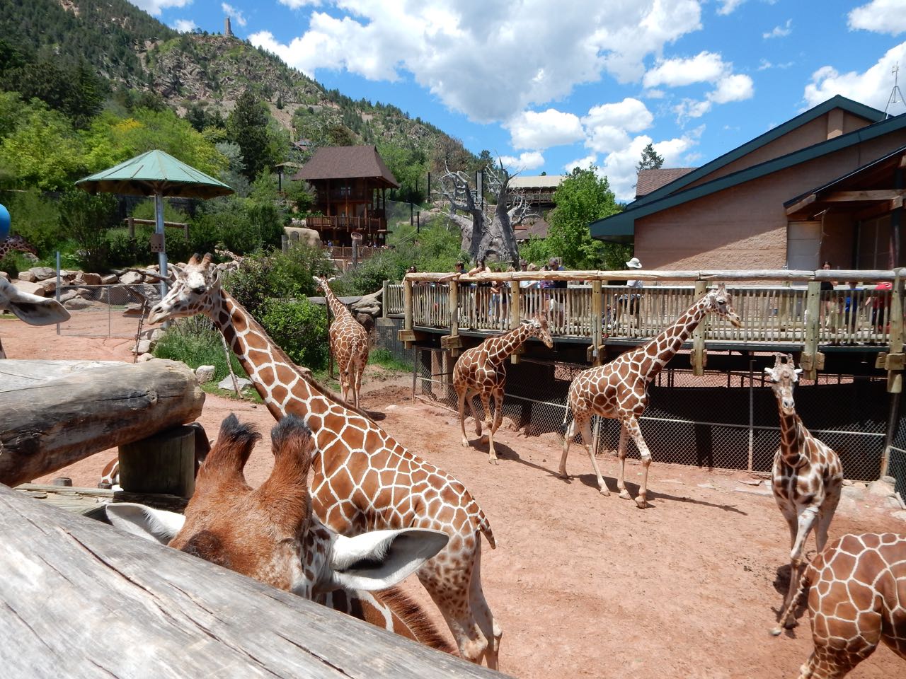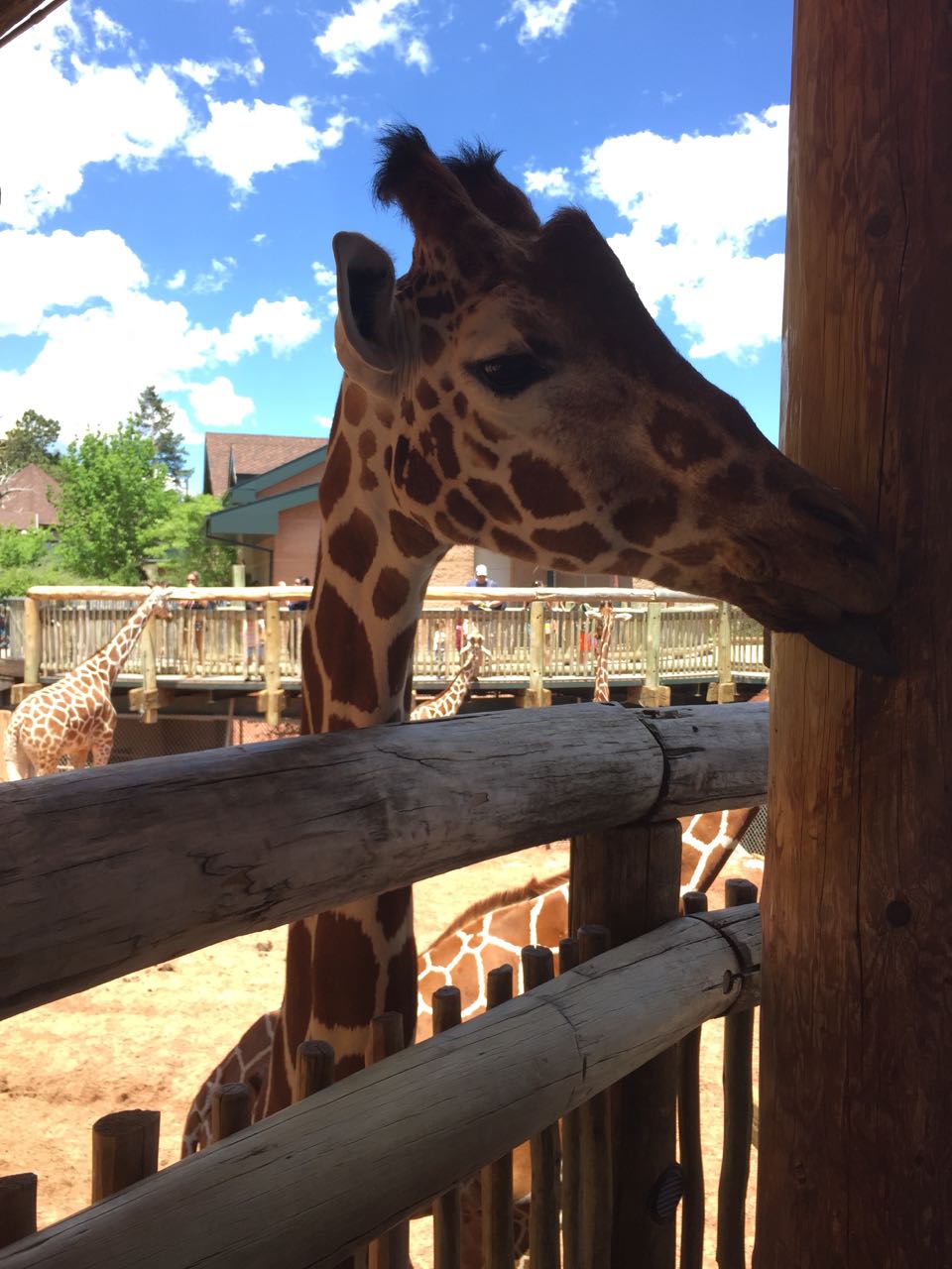 It has been nearly four years since we visited the Cheyenne Mountain Zoo. Today, we made our return with Kendall on the outside! Each time I return, I’m amazed how much it has improved since I was a kid in Colorado. They have reduced the quantity of animals, but have really increased the quality of the enclosures. The elephant exhibit is really amazing, and this from someone who lives near the NC Zoo in Asheboro that has a spectacular elephant exhibit. One addition here is they have the elephants artwork on display that they sell to help sustain the exhibit. A favorite back in the day and now is feeding the giraffes. In the eighties, we fed them something that was like a triscuit. These days, we feed them large lettuce leaves. Nothing like seeing that huge purple tongue coming at you! Another new thing they added was giving visitors tokens to put into this large machine. You put your token in the slot for the conservation project you’d like to see funded. Hard choice to make, but we all made our choices and feel good about helping, in some small way. The kids spent a huge amount of time just watching the meerkats play!