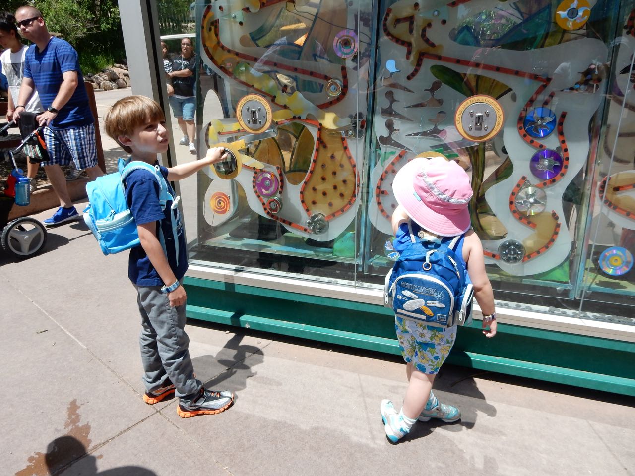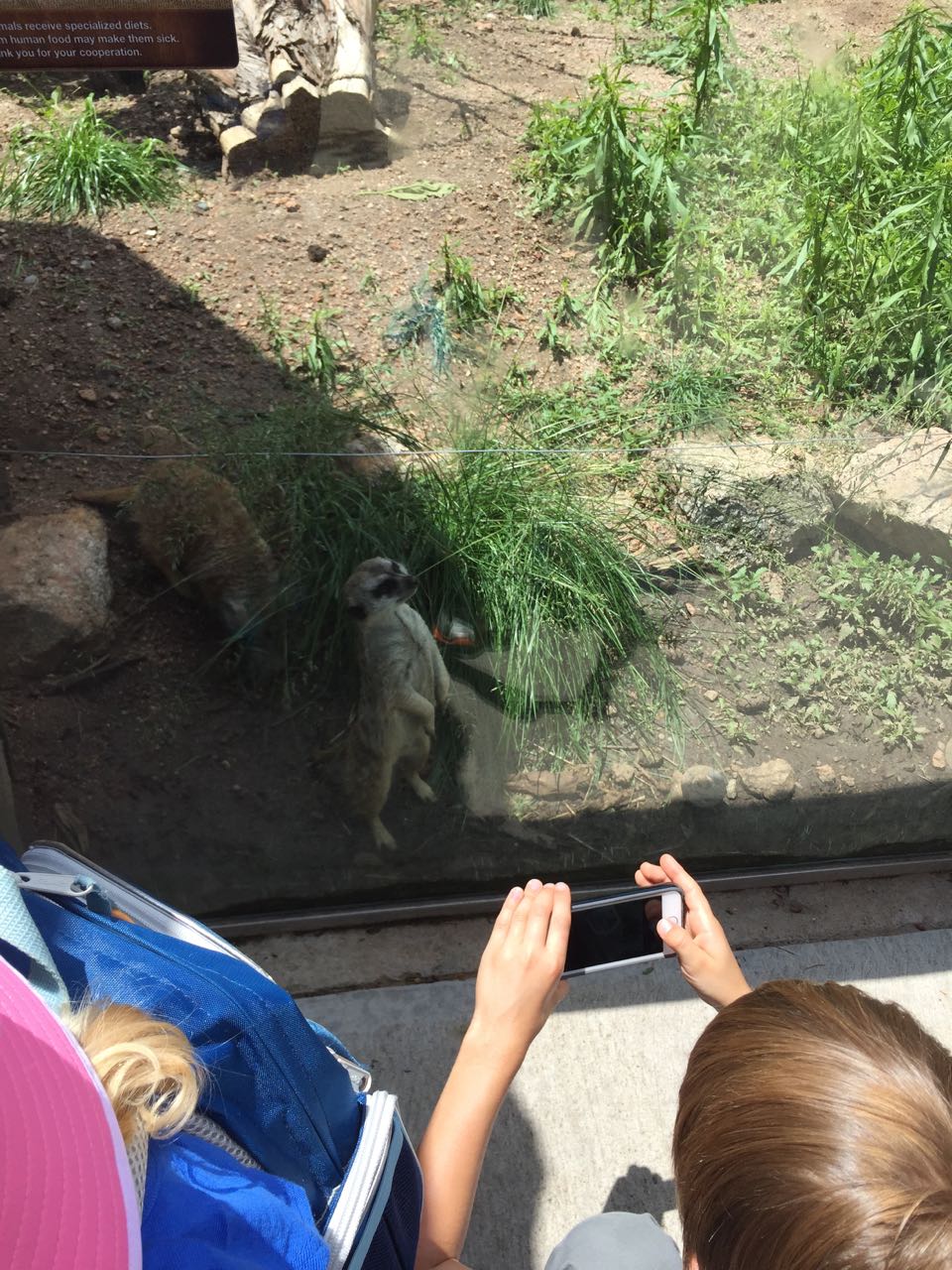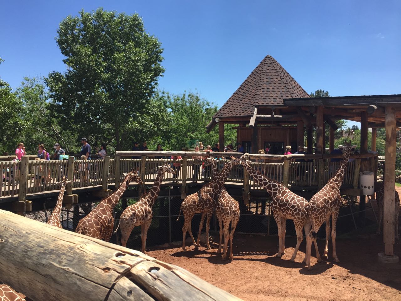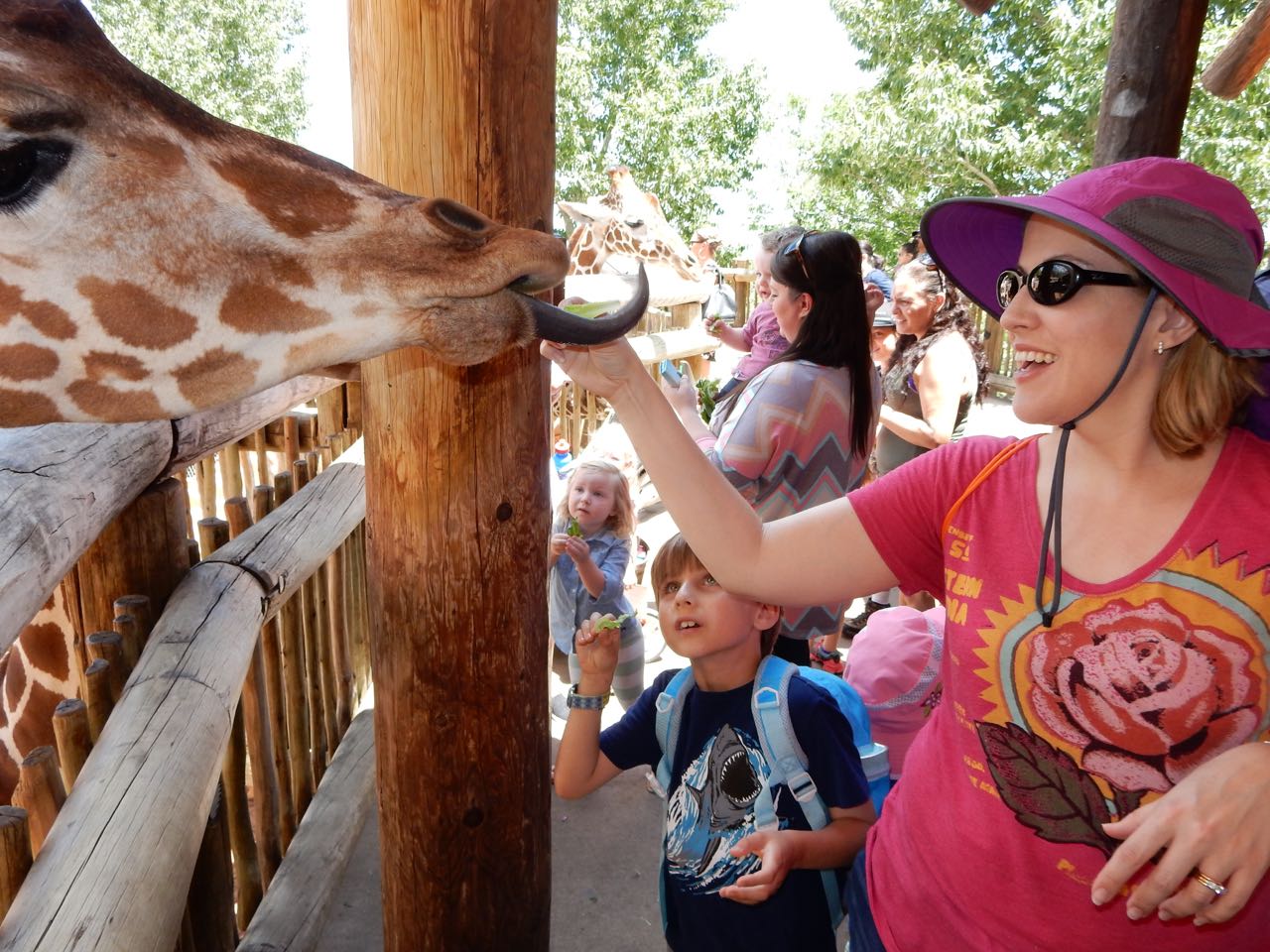 It has been nearly four years since we visited the Cheyenne Mountain Zoo. Today, we made our return with Kendall on the outside! Each time I return, I’m amazed how much it has improved since I was a kid in Colorado. They have reduced the quantity of animals, but have really increased the quality of the enclosures. The elephant exhibit is really amazing, and this from someone who lives near the NC Zoo in Asheboro that has a spectacular elephant exhibit. One addition here is they have the elephants artwork on display that they sell to help sustain the exhibit. A favorite back in the day and now is feeding the giraffes. In the eighties, we fed them something that was like a triscuit. These days, we feed them large lettuce leaves. Nothing like seeing that huge purple tongue coming at you! Another new thing they added was giving visitors tokens to put into this large machine. You put your token in the slot for the conservation project you’d like to see funded. Hard choice to make, but we all made our choices and feel good about helping, in some small way. The kids spent a huge amount of time just watching the meerkats play!