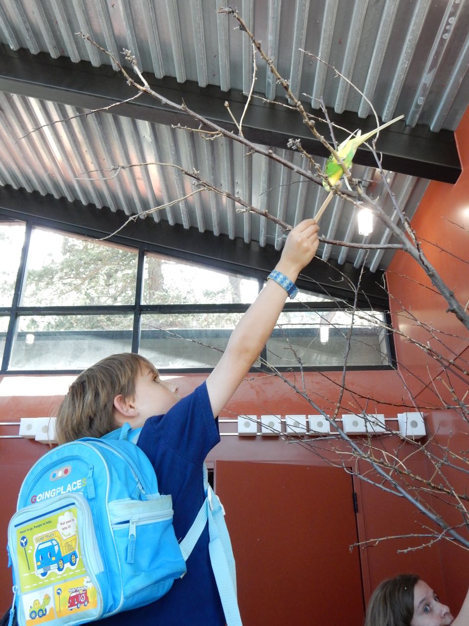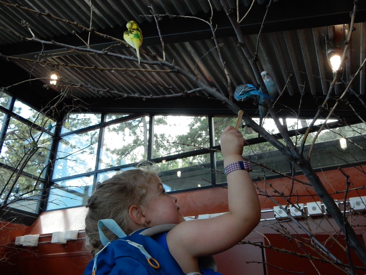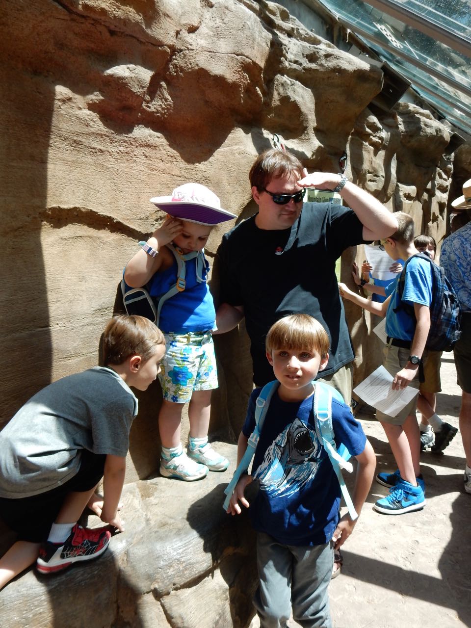 A couple new (to me) exhibits that the kids really liked were the “crash-landed plane” that you sit in and “fly”. The other was the “Australia Walkabout”, which was actually a bunch of exhibits under one umbrella. One really fun part was that there were seeds stuck on Popsicle sticks that you could feed the colorful birds, up close and personal. Of course there were the mandatory kangaroos jumping around that were quite cute. Of course, they also have Peacocks all over the place, and I still have a 16-year hate on for peacocks since my trip to India. Brian tries to mimic the sound occasionally to mess with me! And no Australia exhibit would be complete without crocodiles!