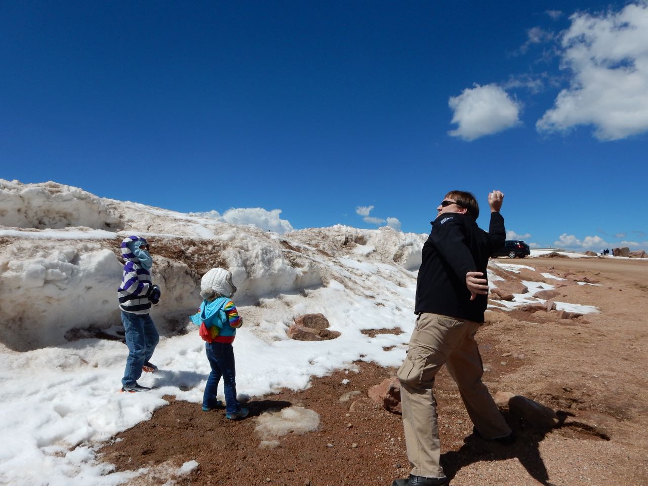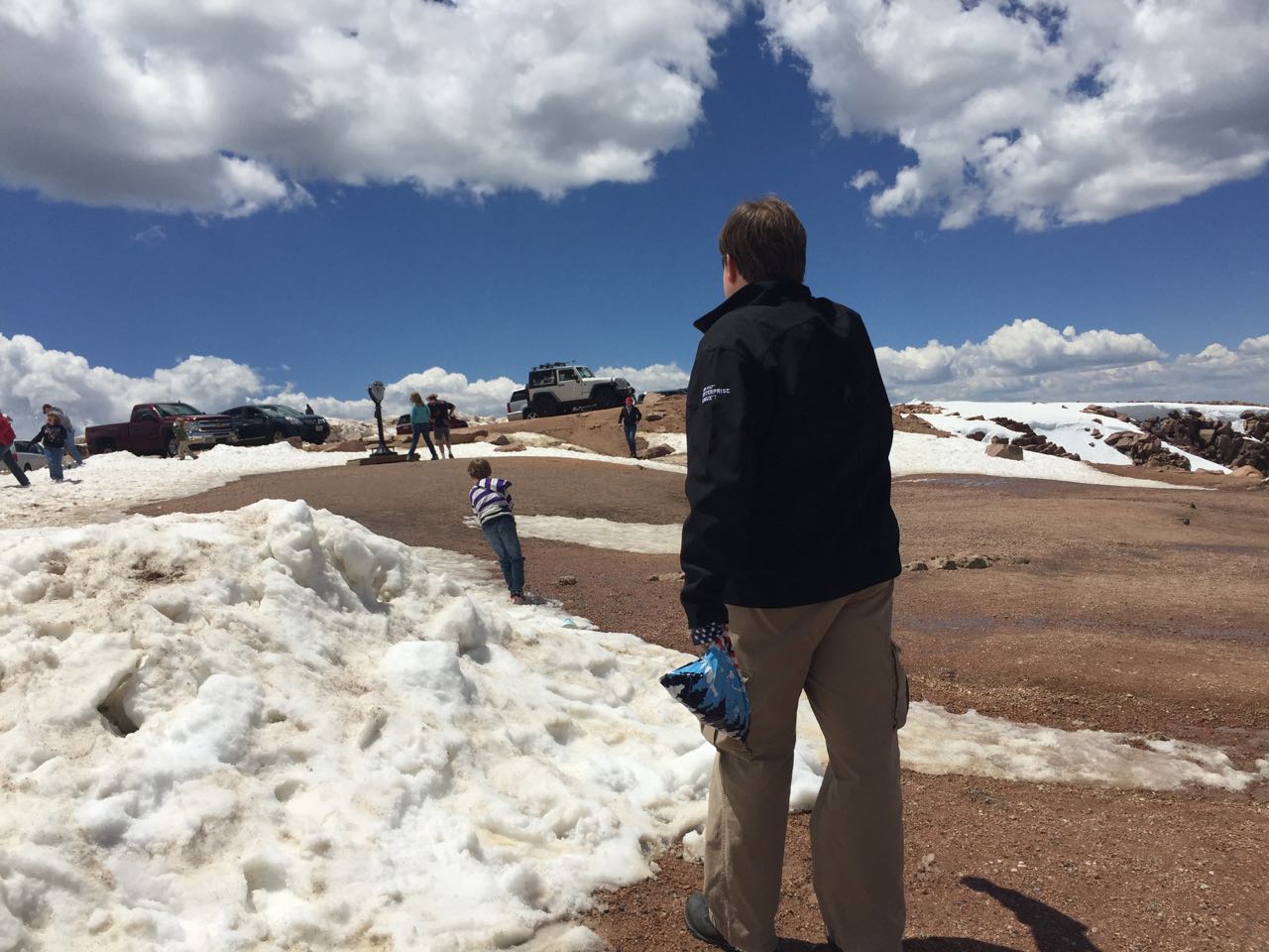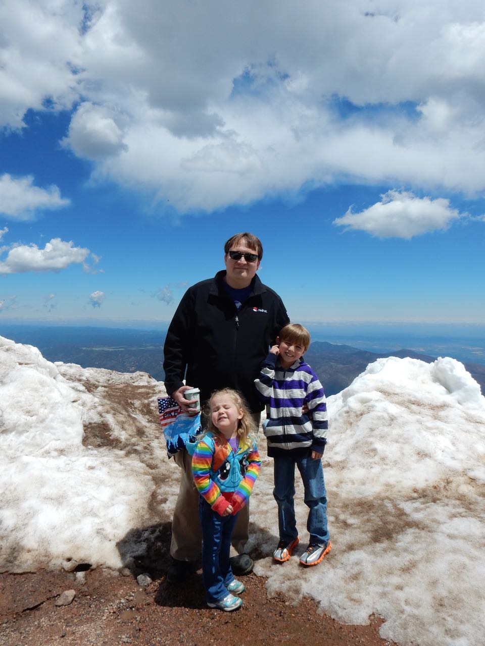 You go to Colorado Springs, you go up Pikes Peak, that’s how this works. And, as someone that grew-up at altitude, I feel it my duty to acclimatize the low-land family to being less than three miles up ๐ We headed out fairly early in the morning to avoid any potential late-day thunderstorms and/or clouds. That plan was good as when we came down later in the day, the peak was covered in thunderstorms. Brian really enjoyed tracking our progress by mile-marker on his map. We are up there a week before the Pikes Peak Hill Climb, so a lot of extra items were along the road as they prepared for the big event, but it did not distract too badly from the beauty of the mountain. Above tree line, there certainly was a lot of snow still. The large equipment was working hard to clear a lot of it away for the following week. We actually witnessed a few brave souls snowboarding down the mountain!