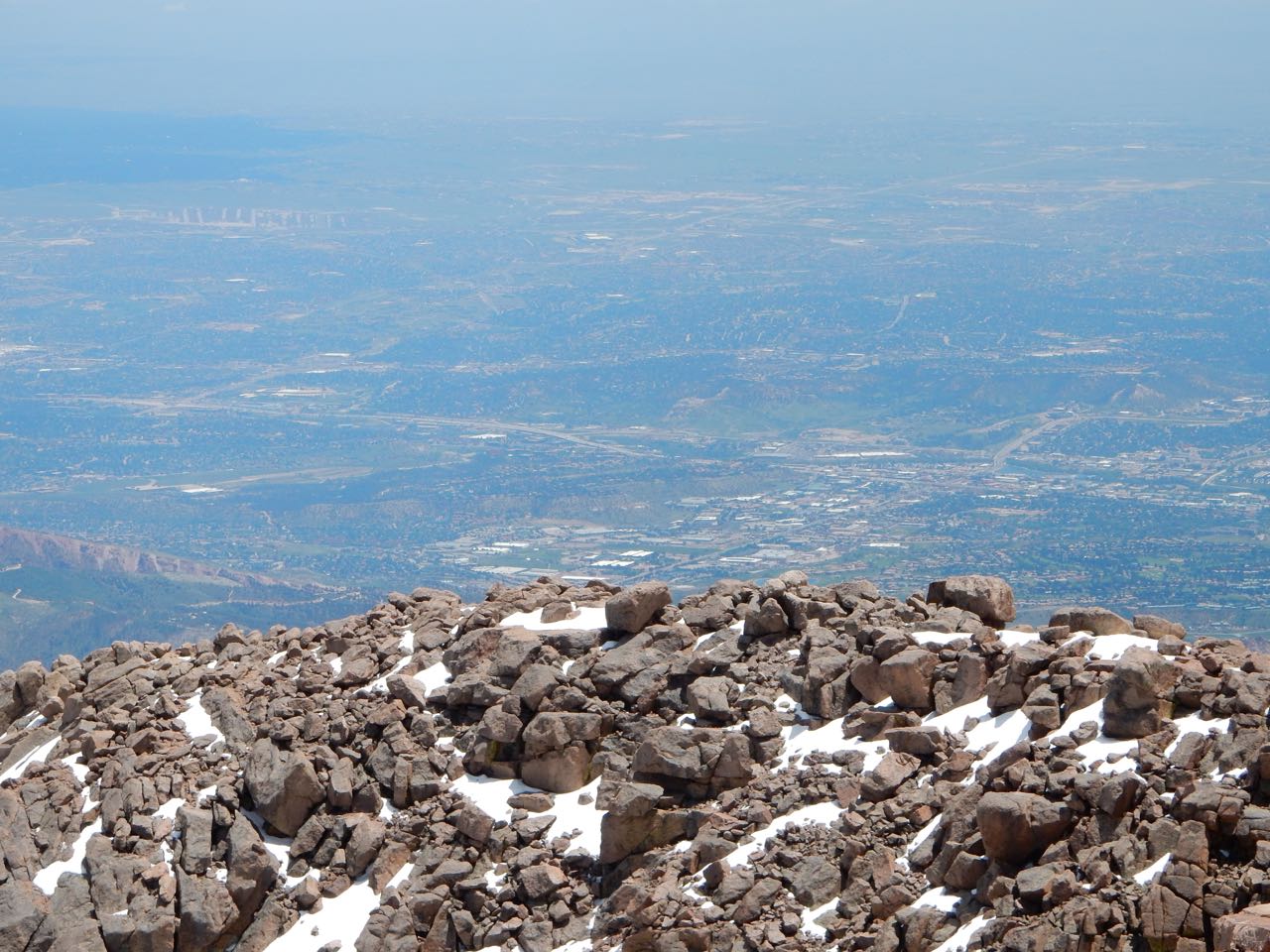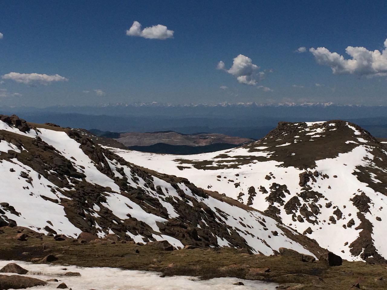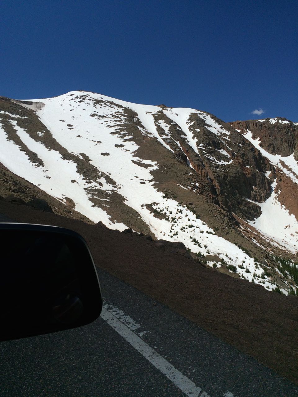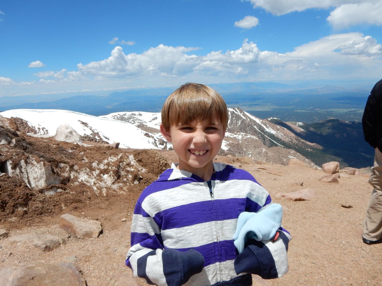 You go to Colorado Springs, you go up Pikes Peak, that’s how this works. And, as someone that grew-up at altitude, I feel it my duty to acclimatize the low-land family to being less than three miles up ๐ We headed out fairly early in the morning to avoid any potential late-day thunderstorms and/or clouds. That plan was good as when we came down later in the day, the peak was covered in thunderstorms. Brian really enjoyed tracking our progress by mile-marker on his map. We are up there a week before the Pikes Peak Hill Climb, so a lot of extra items were along the road as they prepared for the big event, but it did not distract too badly from the beauty of the mountain. Above tree line, there certainly was a lot of snow still. The large equipment was working hard to clear a lot of it away for the following week. We actually witnessed a few brave souls snowboarding down the mountain!