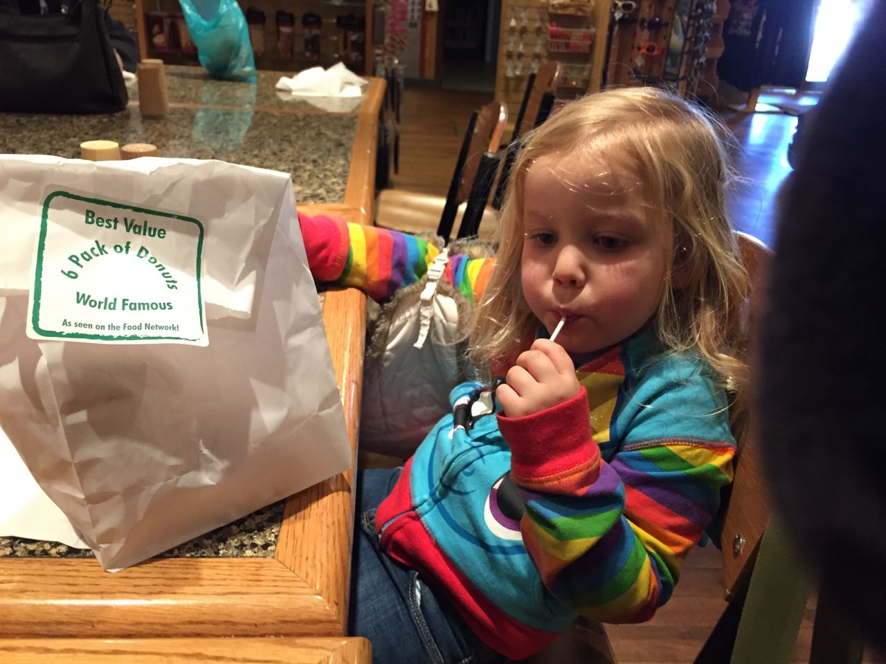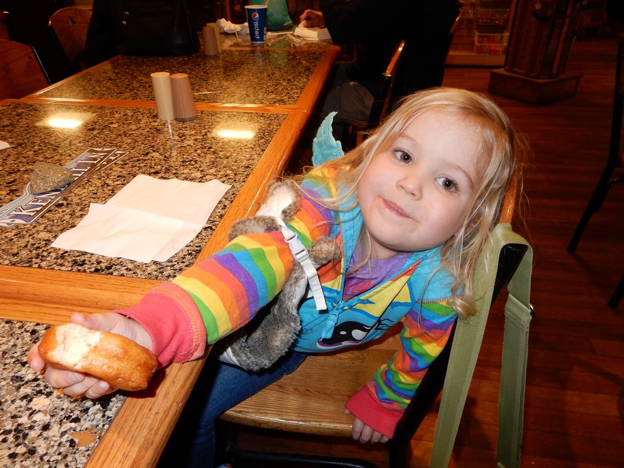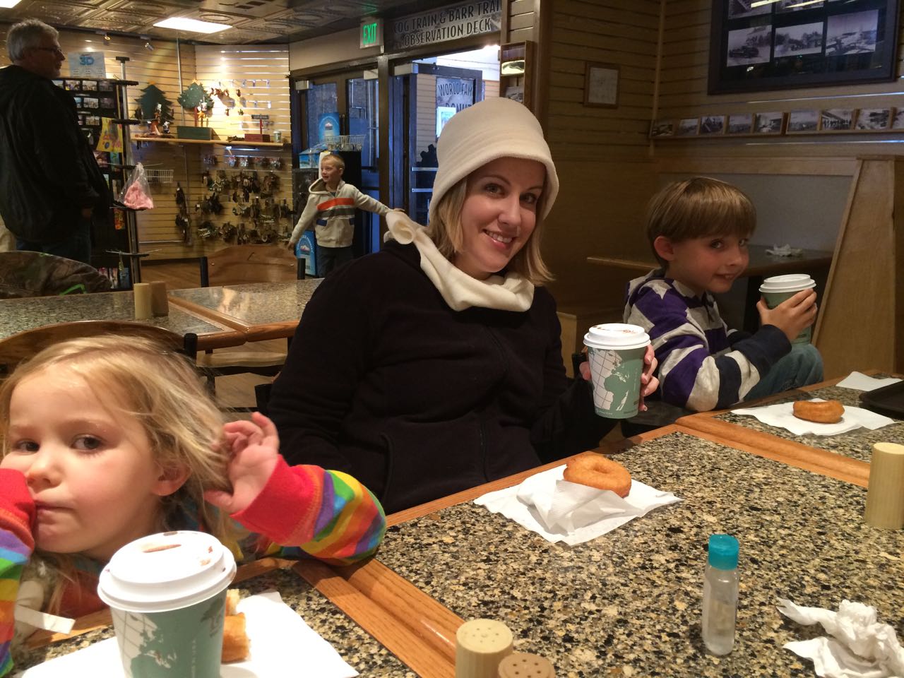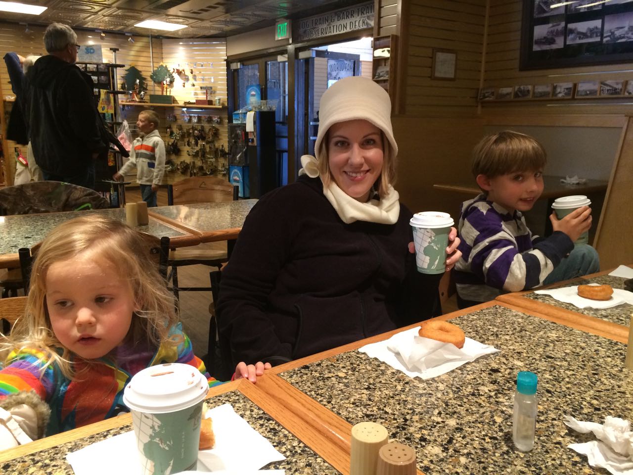 At the summit, we had to get our donuts and hot chocolate. Kendall definitely needed the energy boost, as the oxygen deprivation was definitely making her a bit woozy. Now, we go to many gift shops with all the places we go, but we usually never end up getting any of the personalized name-type items as it almost never happens where there is an item where we can find both kids names (spelled correctly). But, wouldn’t you know it, Pikes Peak delivered with “Kendall Ln” and “Brian Ave”, so, we had no choice but to get that for their rooms at home!