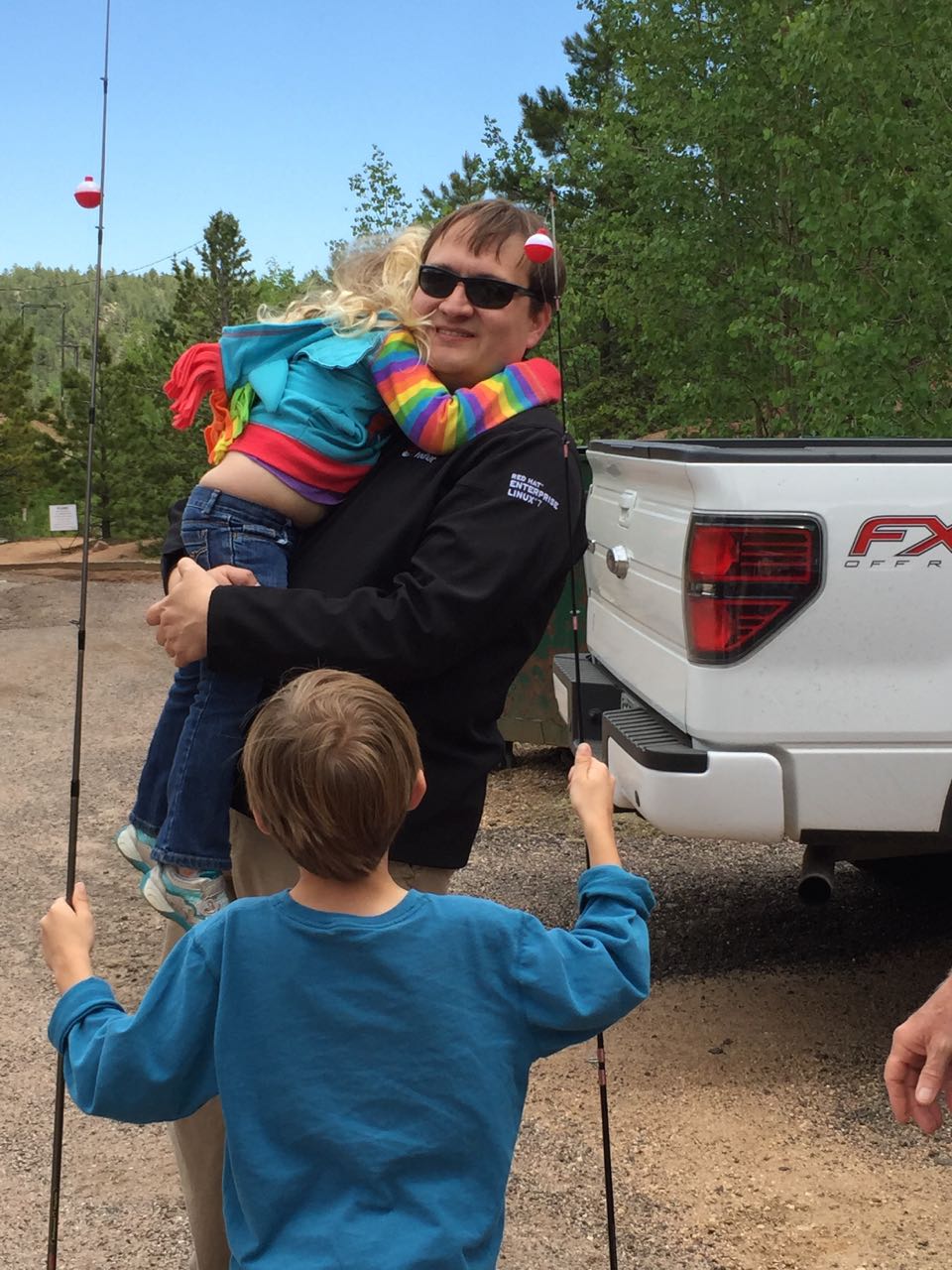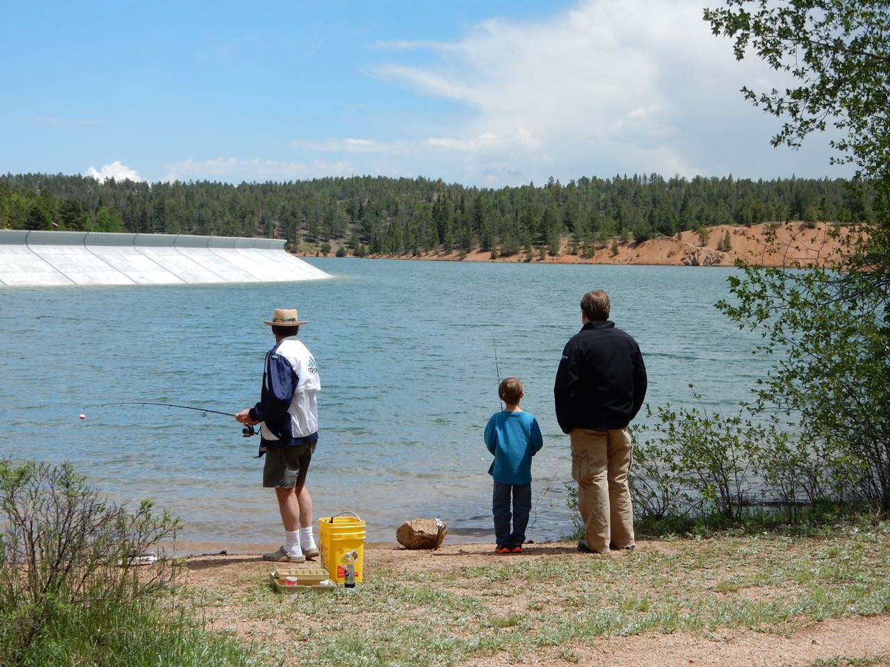 On the way back down the mountain, we beat getting caught in the clouds. I was on driving duty from the summit down. Now, I DO know what I’m doing, however, this was a vehicle that I was not used to, who’s low gear was not nearly as low as I’d like, and who’s gross vehicle weight is high. To that end, I was quite nervous heading into the mandatory brake check (I used brakes way more than I like to, but still much less than average flatlanders do). But, to my surprise, my brake temperature was well below the cut-off and was even well below the average. I guess I can still claim decent mountain driving skills! Grandpa Roger and Grandma Cheryl packed the fishing gear, so we made a stop at the South Catamount Reservoir to toss the hook and line into the water. Needless to say, nothing was caught, but a good time was had by all, until the thunderstorms did catch up to us!