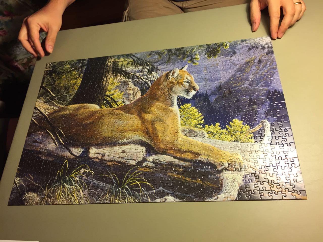 As we head into the last night of our trip, it was imperative that we finish the mountain lion puzzle we had worked on all week. And, although we got punchy at the end, dad, Alison, and I did get it finished late tonight.