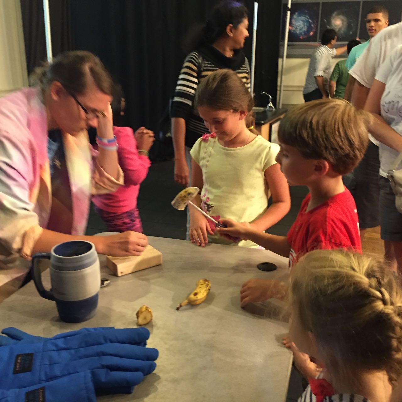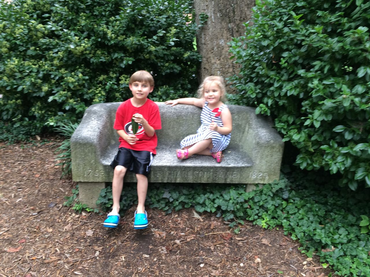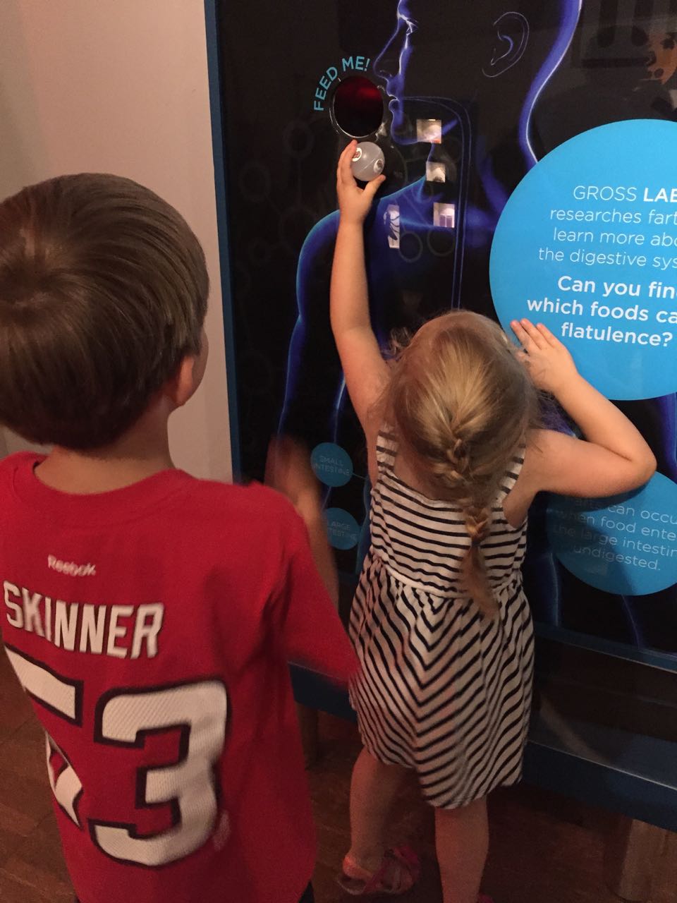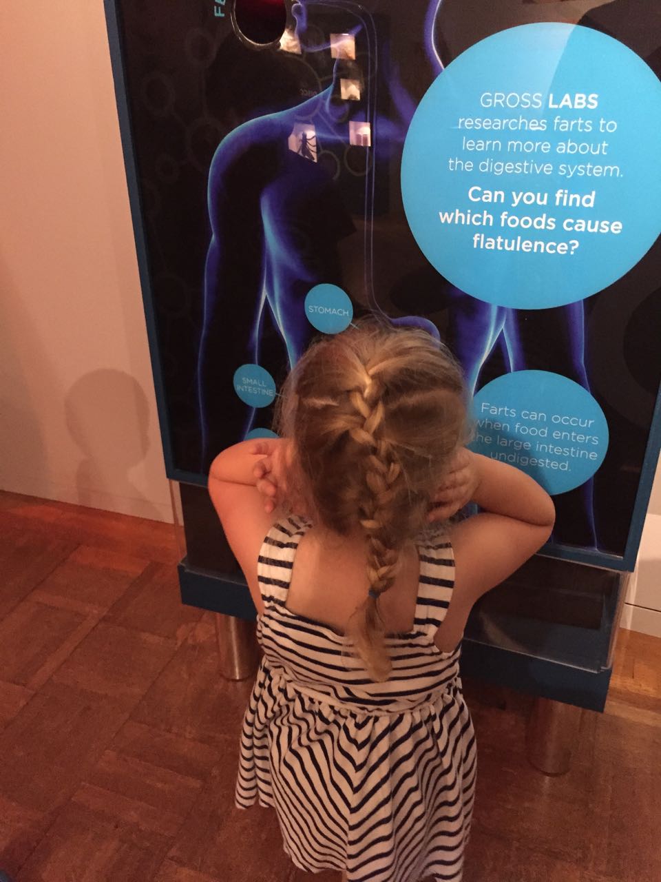 Today we were invited to go to Chapel Hill so that Kendall could participate in a study being done by the UNC Psychology department. This was a follow-up to last year’s visit, which Kendall enjoyed–and who wouldn’t enjoy getting piles of stickers for playing games with the researchers? 🙂 So we made the trek out this morning, and Kendall played her games while I filled out huge surveys, and she earned an entire baggie full of stickers, and even a special purple fairy rubber duckie. Awesome! After having to check off words that I’ve heard Kendall say from a huge list, I’m even more impressed with her vocabulary. Of course the researchers can’t tell us exactly what they’re looking for, or anything about her performance–but she had fun, and seemed to be able to do everything they asked of her. 🙂 Afterward, we had lunch at Elmo’s diner, and took the kids into the Ali Cat toy store, that Brandon and I used to always peer into as we waited for our brunch table (on those lazy child-free Sunday mornings, way back when!) Kendall chose a cool book about Wonder Woman, and Brian chose to get some rocks (they have real rock specimens here, not the artificially-colored polished stones which are so common at museums these days). We also got a travel edition of Spot It, which is a fun card game the kids like. Kendall also saw this Mermaid Excavation kit she wanted, but it was after I’d already checked out–I think I’ll order it for her online, it’s cheaper at Amazon, anyway. 😉 Following that, we walked around the campus some, showing the kids some landmarks like the Davie Poplar. We went to Morehead Planetarium for a science demonstration, a tour through the Gross Labs exhibit, and a planetarium show–and of course running-around-the-sundial time. We made a really fun science-filled day of it, and did our part to help out some real scientists, too!