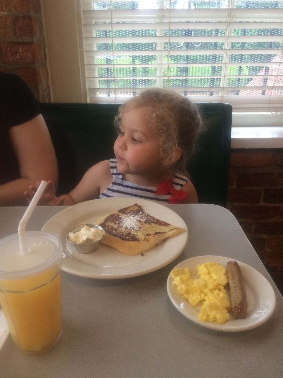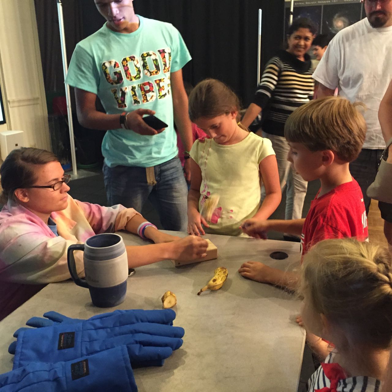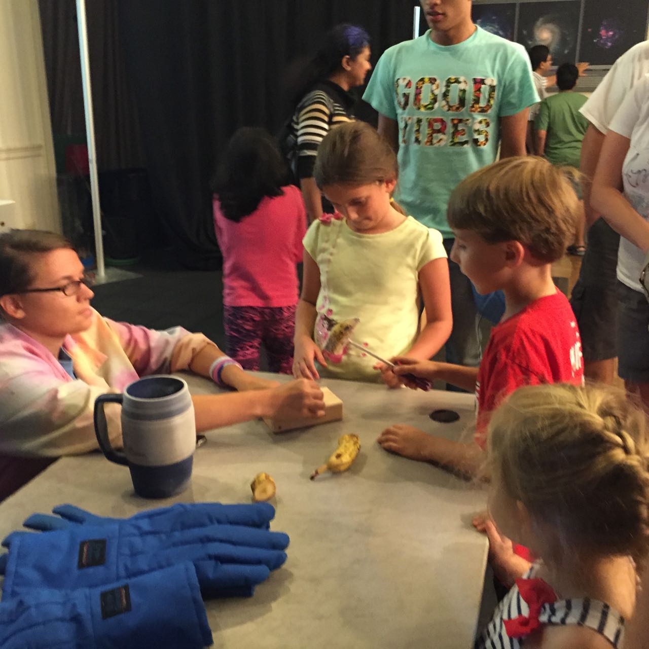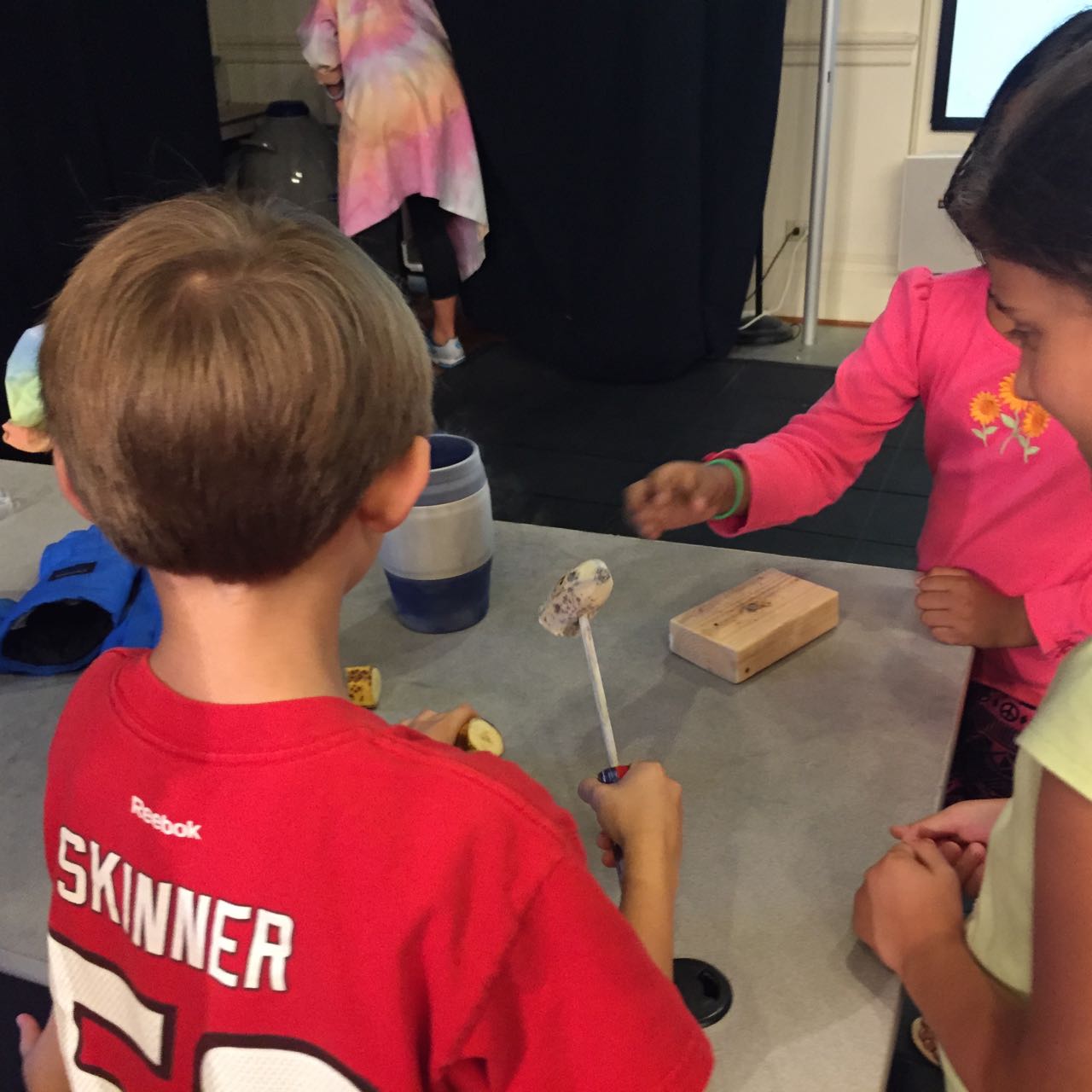 Today we were invited to go to Chapel Hill so that Kendall could participate in a study being done by the UNC Psychology department. This was a follow-up to last year’s visit, which Kendall enjoyed–and who wouldn’t enjoy getting piles of stickers for playing games with the researchers? 🙂 So we made the trek out this morning, and Kendall played her games while I filled out huge surveys, and she earned an entire baggie full of stickers, and even a special purple fairy rubber duckie. Awesome! After having to check off words that I’ve heard Kendall say from a huge list, I’m even more impressed with her vocabulary. Of course the researchers can’t tell us exactly what they’re looking for, or anything about her performance–but she had fun, and seemed to be able to do everything they asked of her. 🙂 Afterward, we had lunch at Elmo’s diner, and took the kids into the Ali Cat toy store, that Brandon and I used to always peer into as we waited for our brunch table (on those lazy child-free Sunday mornings, way back when!) Kendall chose a cool book about Wonder Woman, and Brian chose to get some rocks (they have real rock specimens here, not the artificially-colored polished stones which are so common at museums these days). We also got a travel edition of Spot It, which is a fun card game the kids like. Kendall also saw this Mermaid Excavation kit she wanted, but it was after I’d already checked out–I think I’ll order it for her online, it’s cheaper at Amazon, anyway. 😉 Following that, we walked around the campus some, showing the kids some landmarks like the Davie Poplar. We went to Morehead Planetarium for a science demonstration, a tour through the Gross Labs exhibit, and a planetarium show–and of course running-around-the-sundial time. We made a really fun science-filled day of it, and did our part to help out some real scientists, too!
